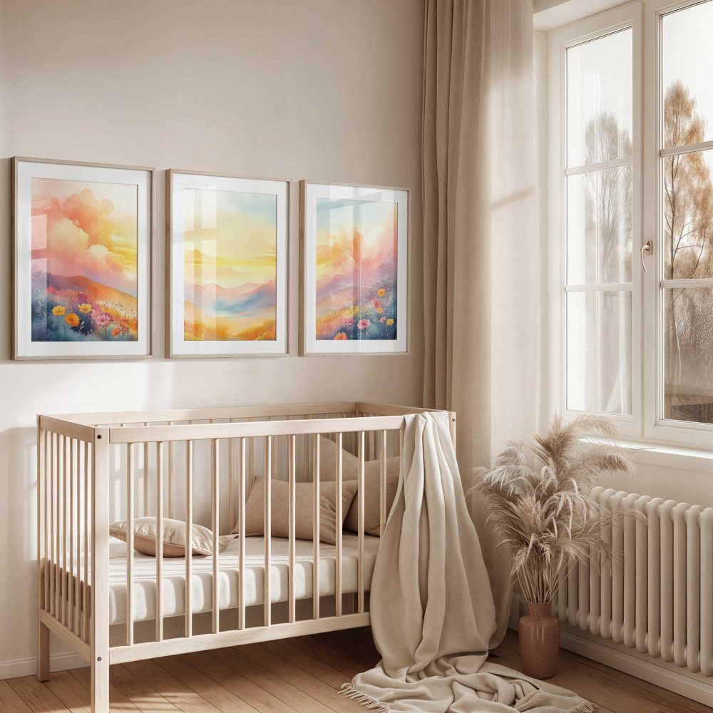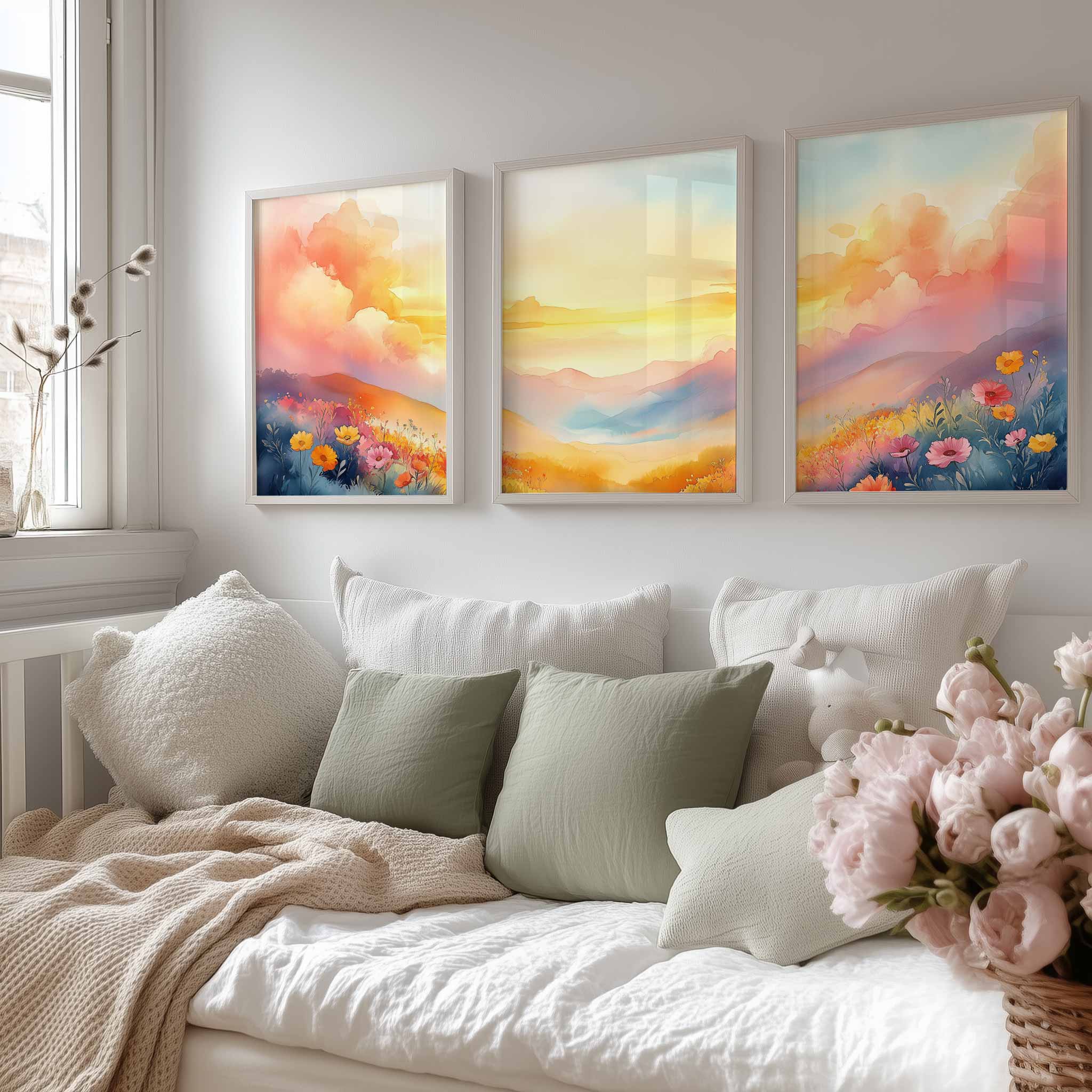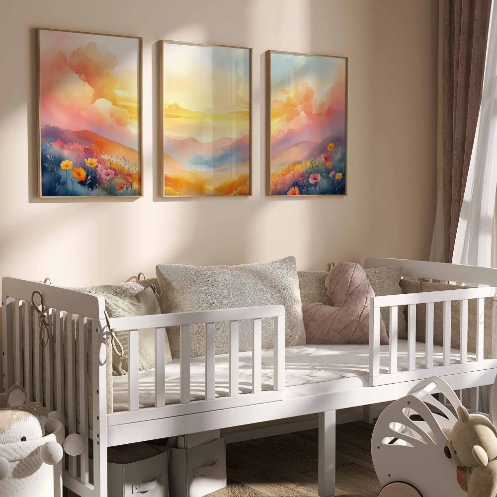 Terug naar collectie / Kinderkamer posters / Bloemen posters / Pastel Droomlandschap: Fleurig Bergenavontuur