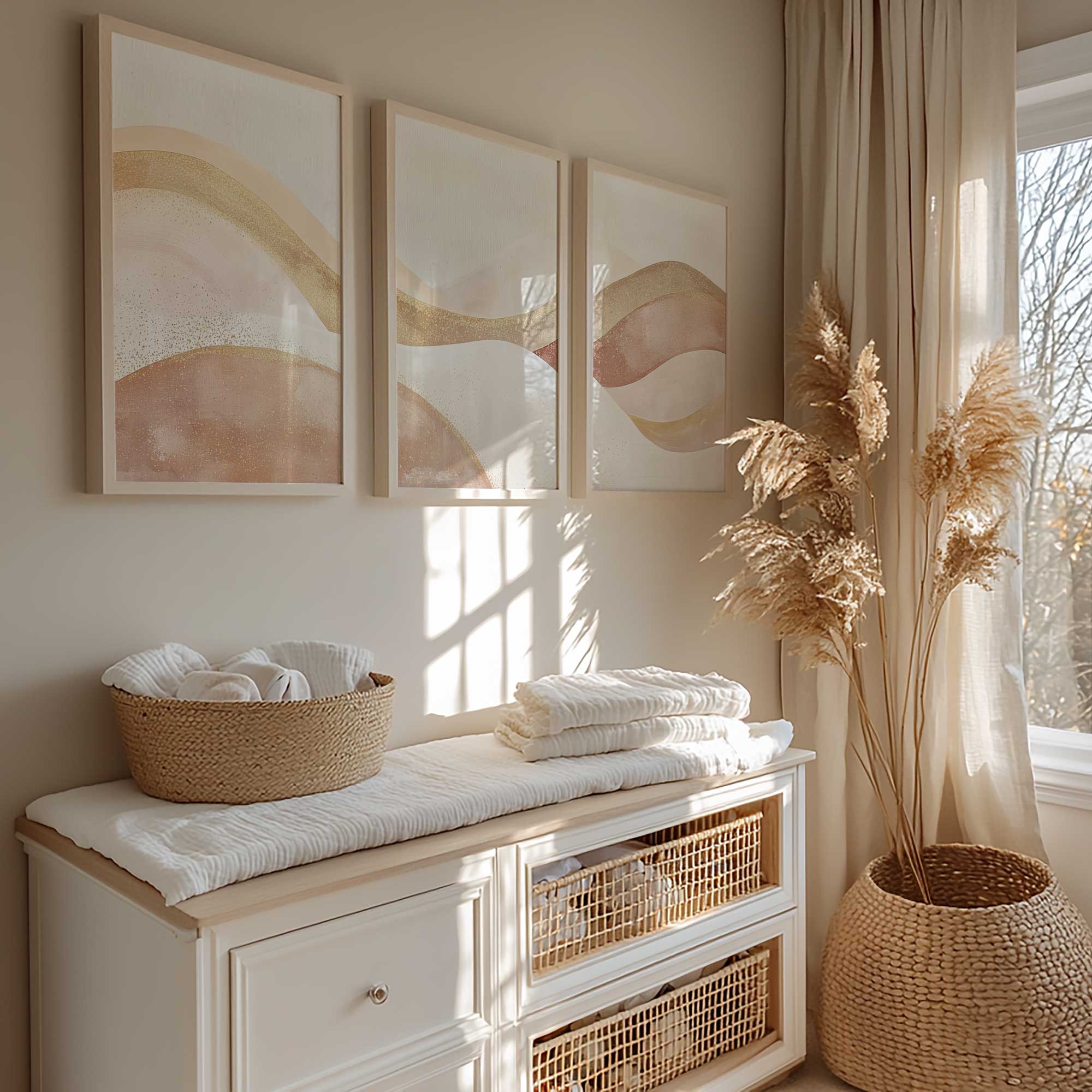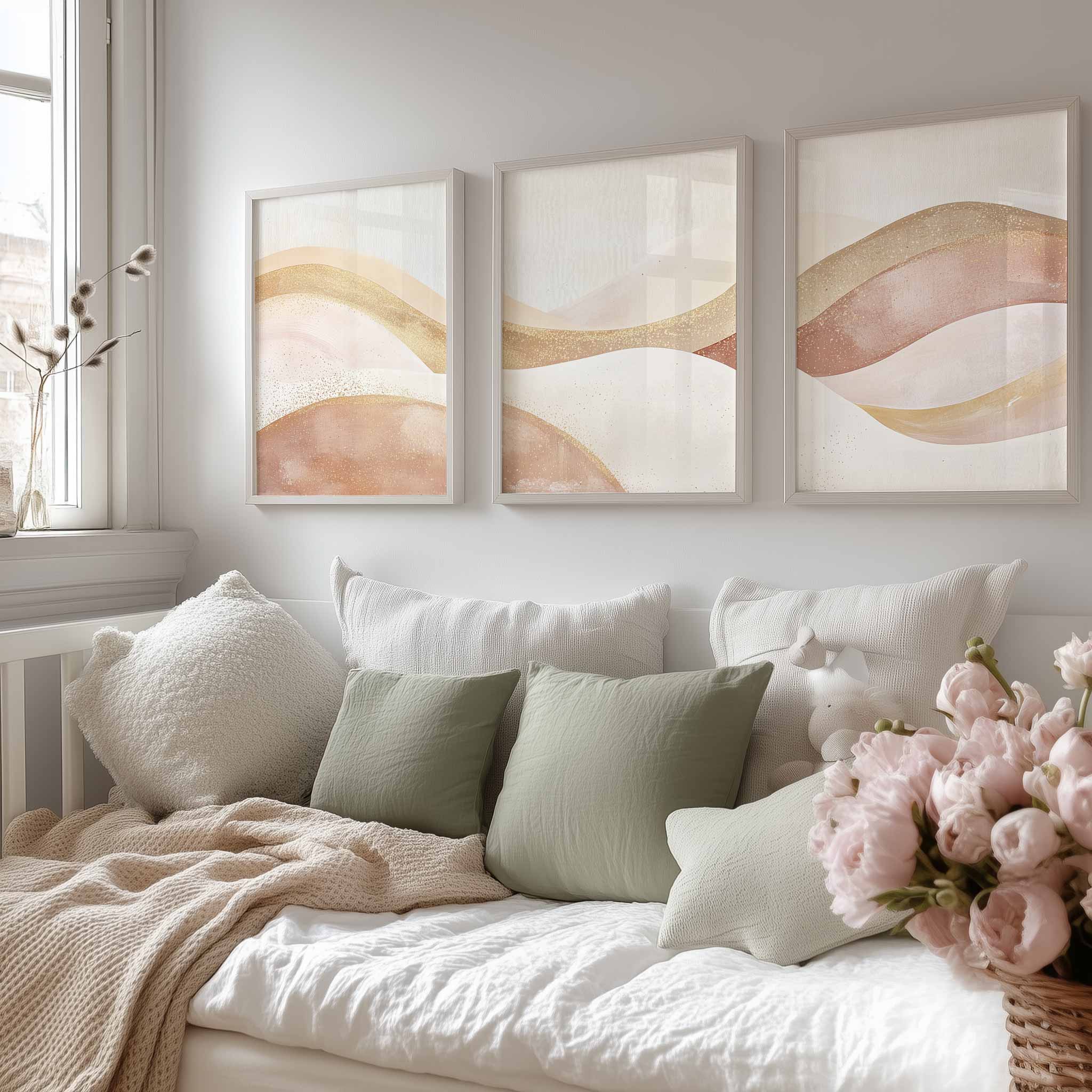 Terug naar collectie / Kinderkamer posters / Pastel Droomlandschap – Zachte Lijnen en Vloeiende Vormen