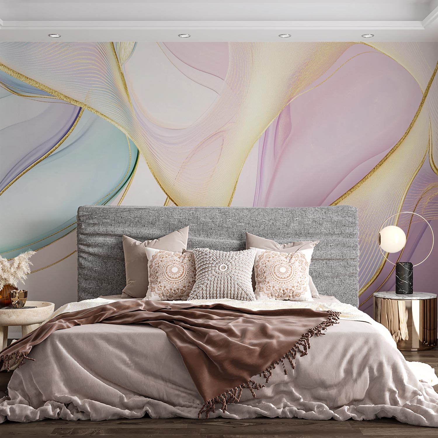 Pastel Gouden Abstracte behang