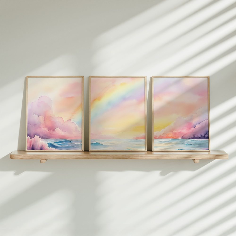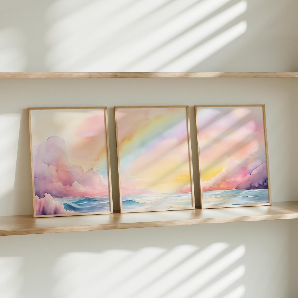 Terug naar collectie / Kinderkamer posters / Pastel Regenboog Droom boven Rustig Water