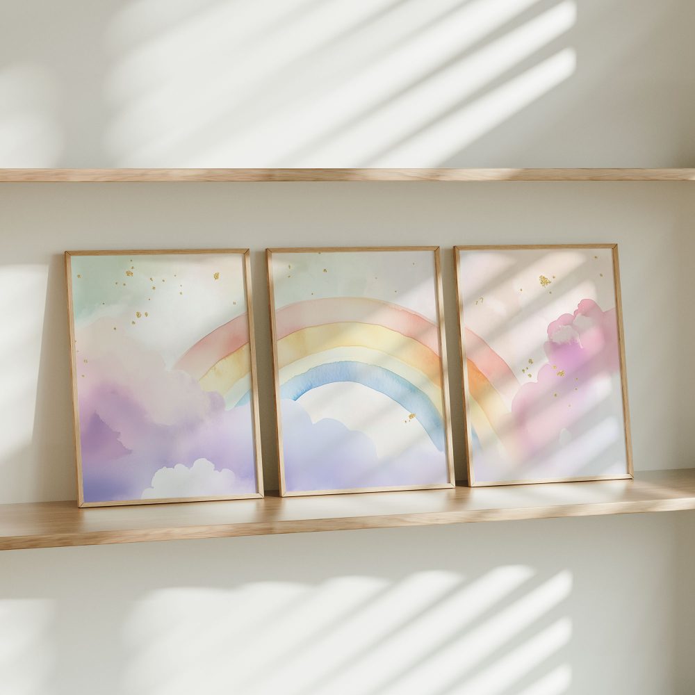 Terug naar collectie / Kinderkamer posters / Pastel Regenboog Droom – Speels en Betoverend
