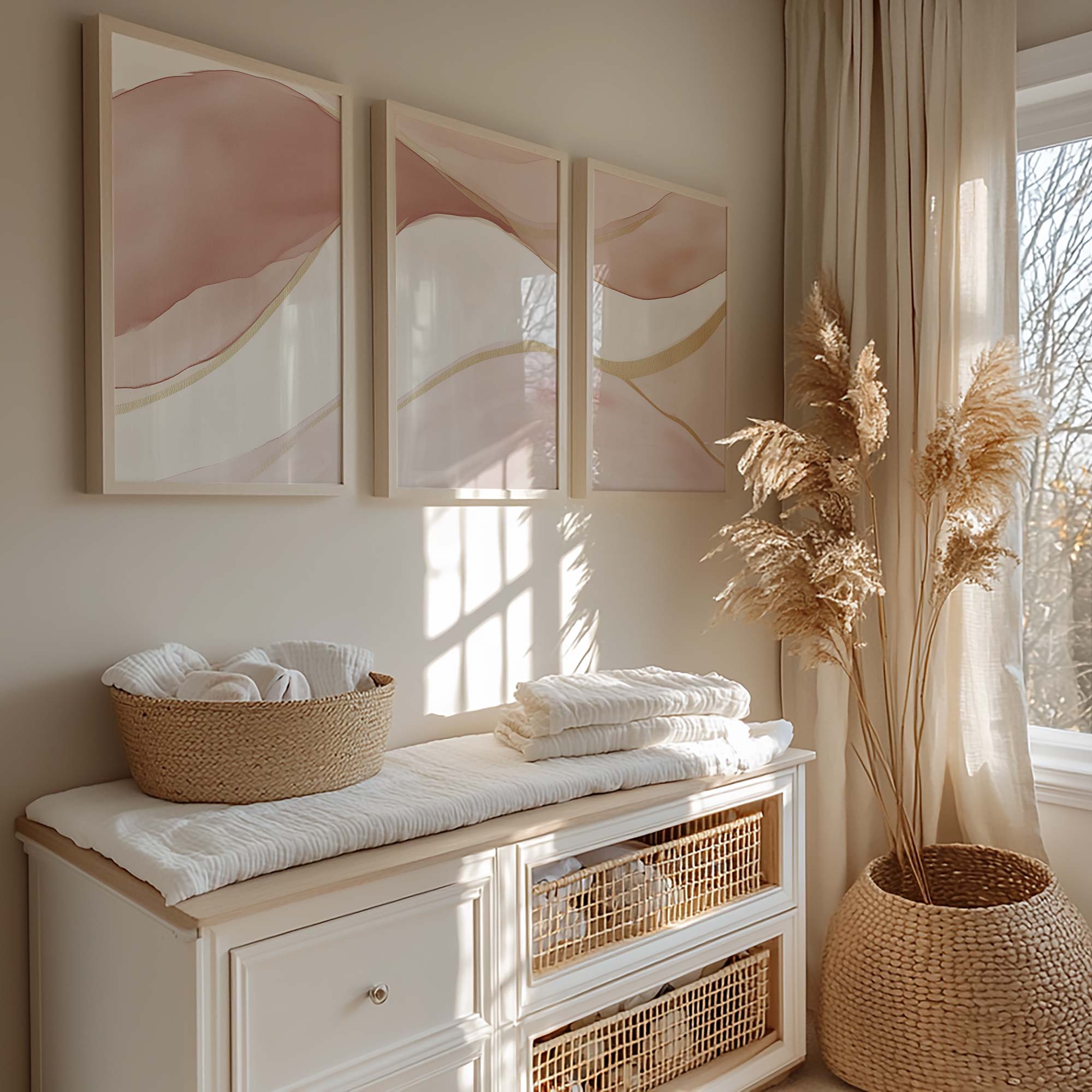 Pastel Roze Abstracte Lijnen – Stijlvolle & Speelse Wanddecoratie