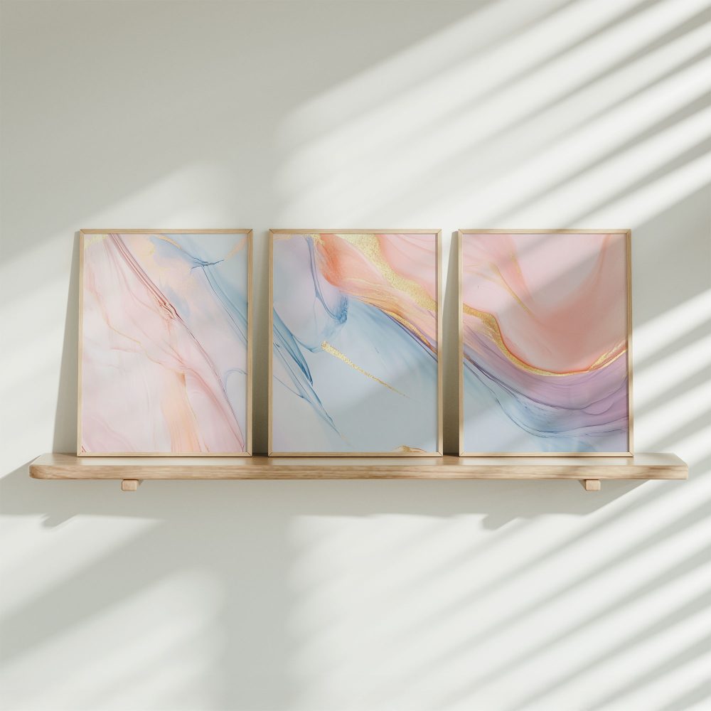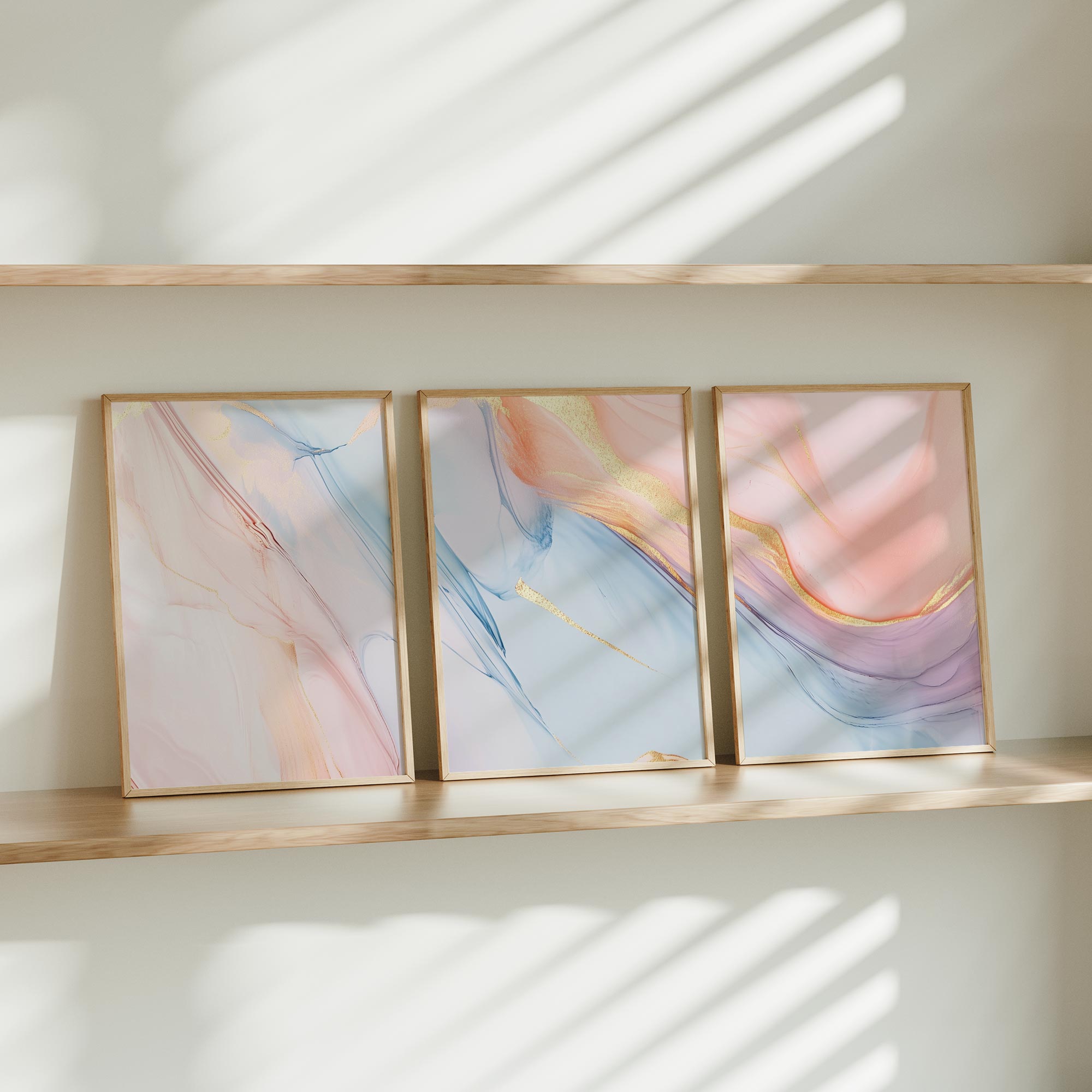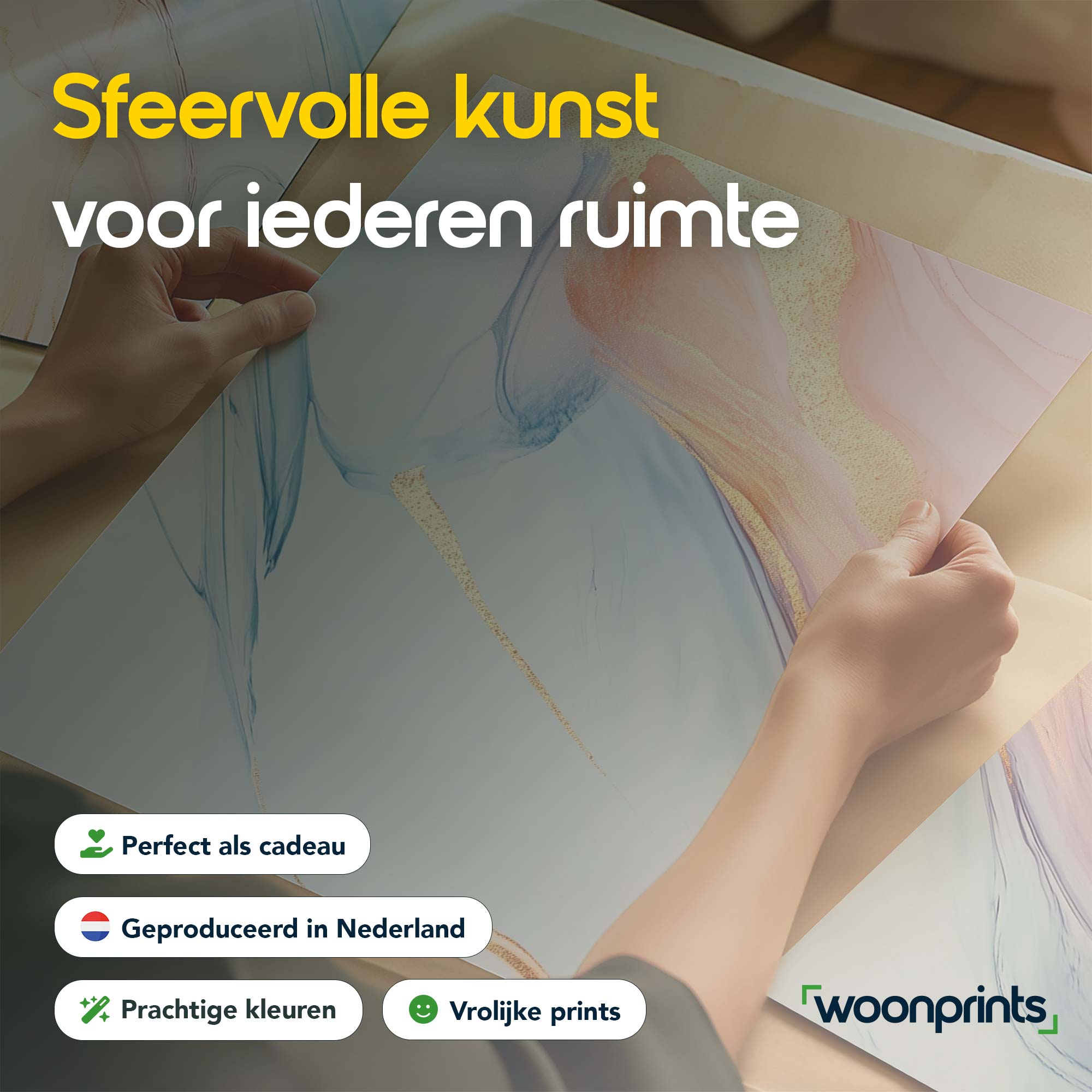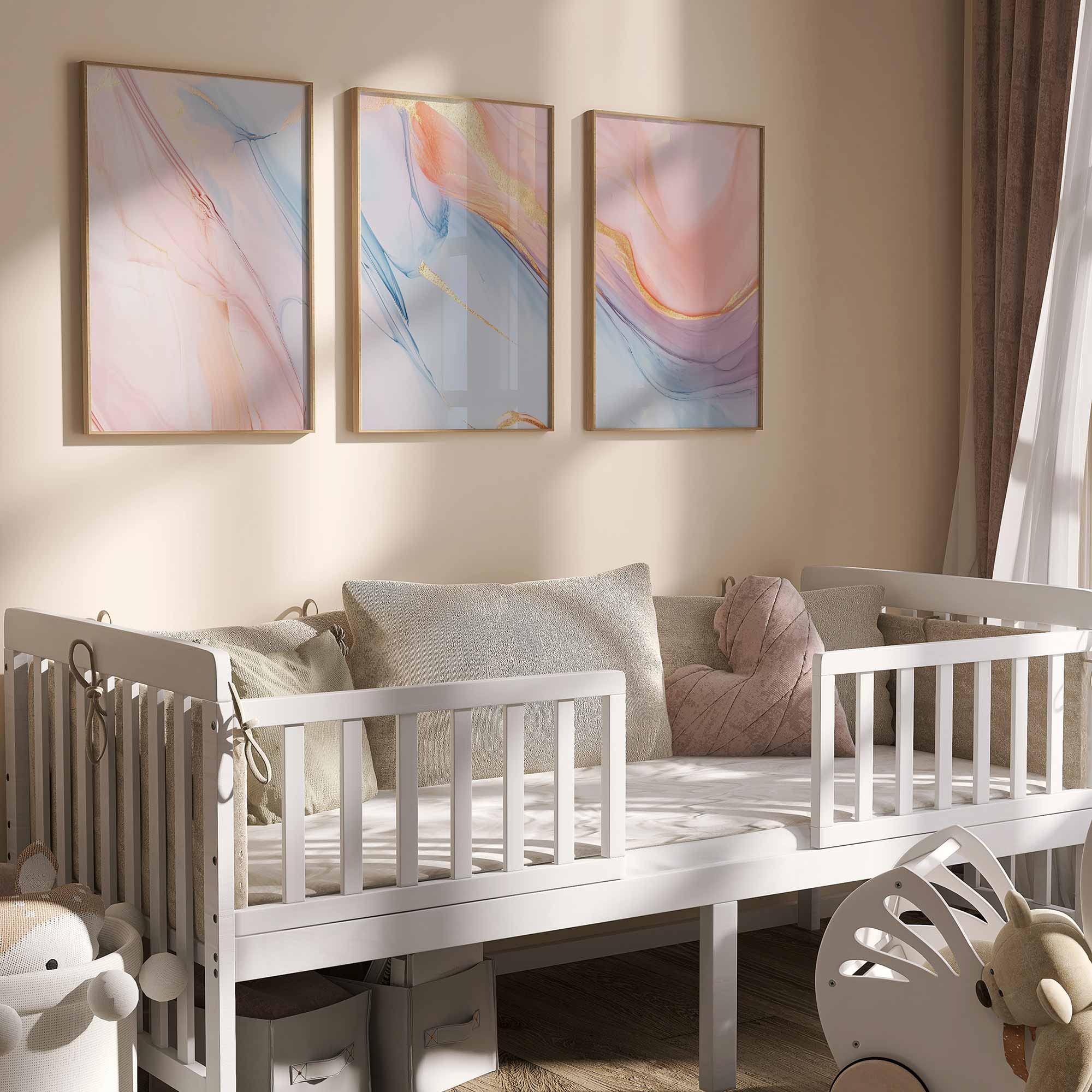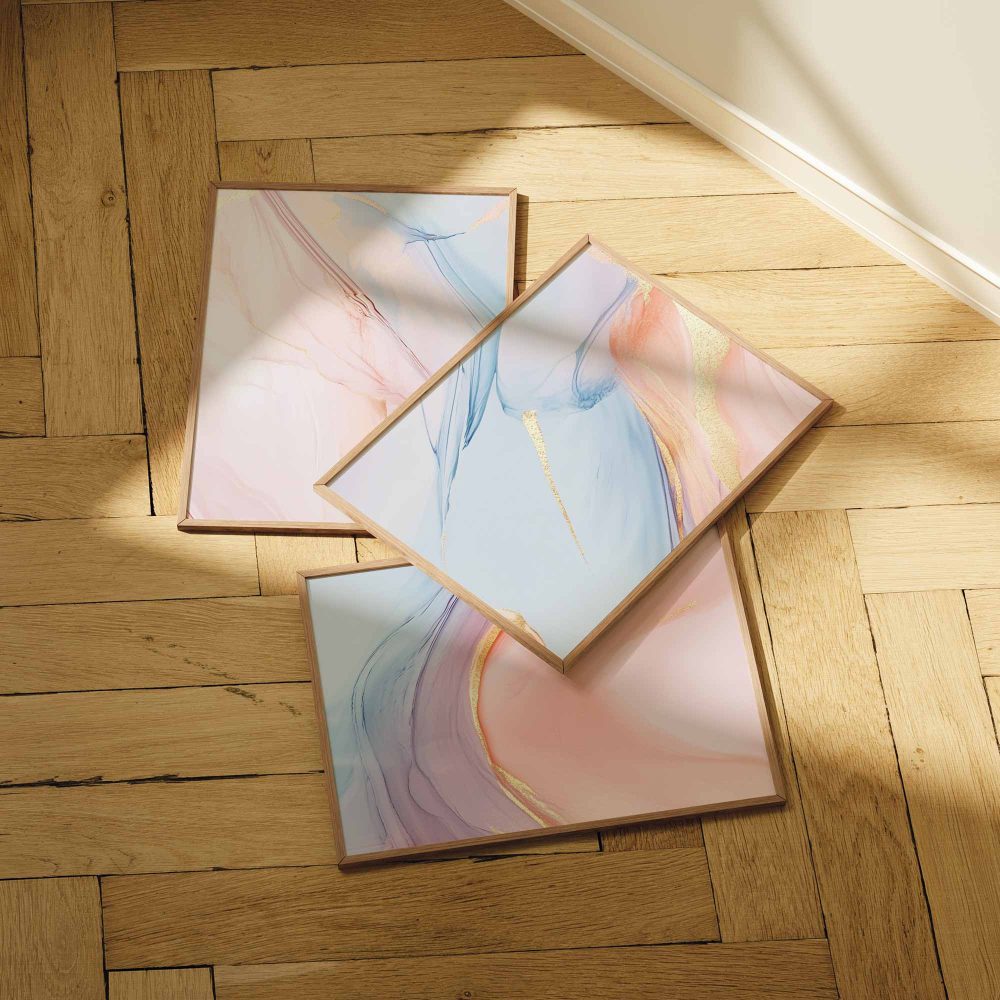 Terug naar collectie / Kinderkamer posters / Pastel Roze & Blauwe Abstracte Werveling met Gouden Accenten