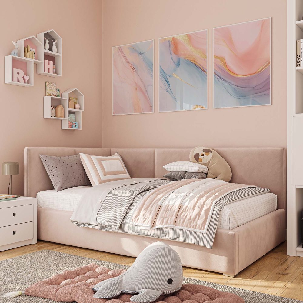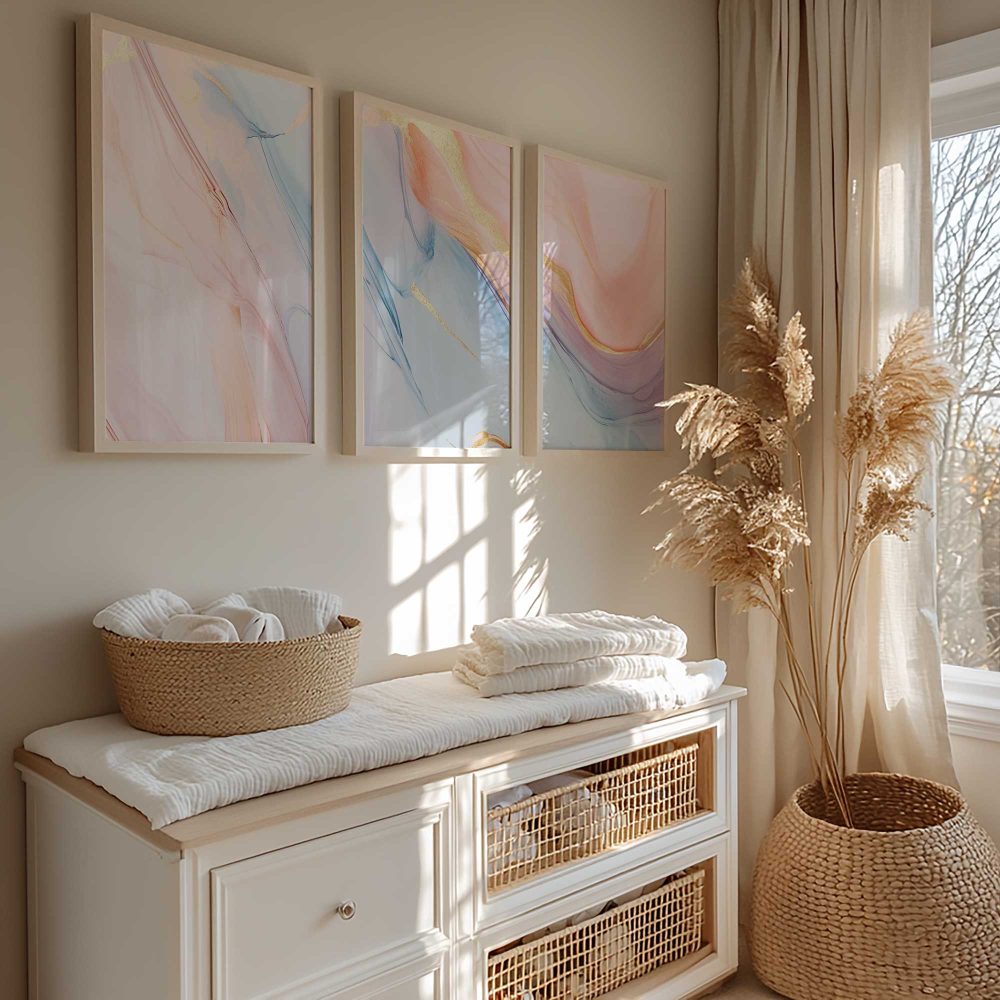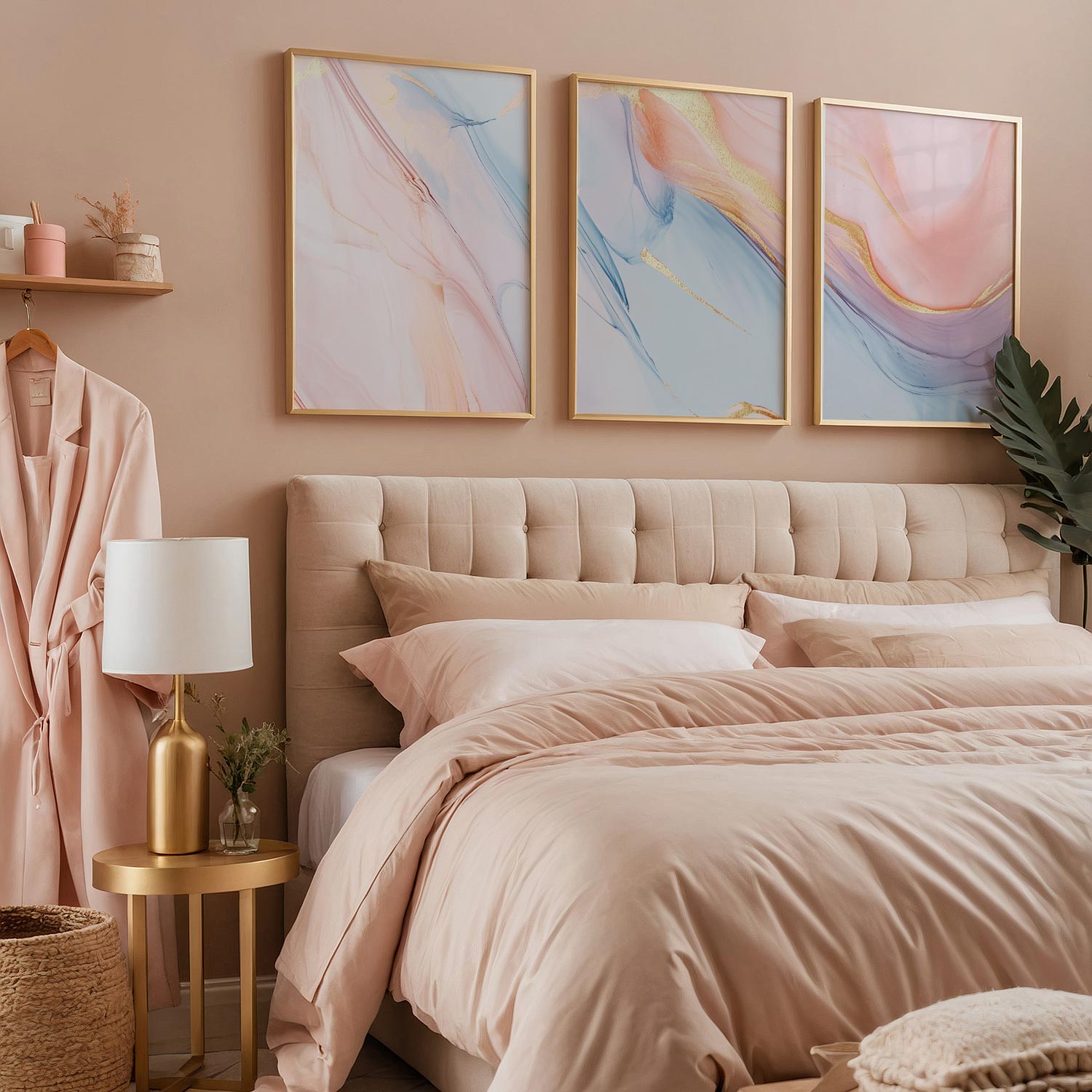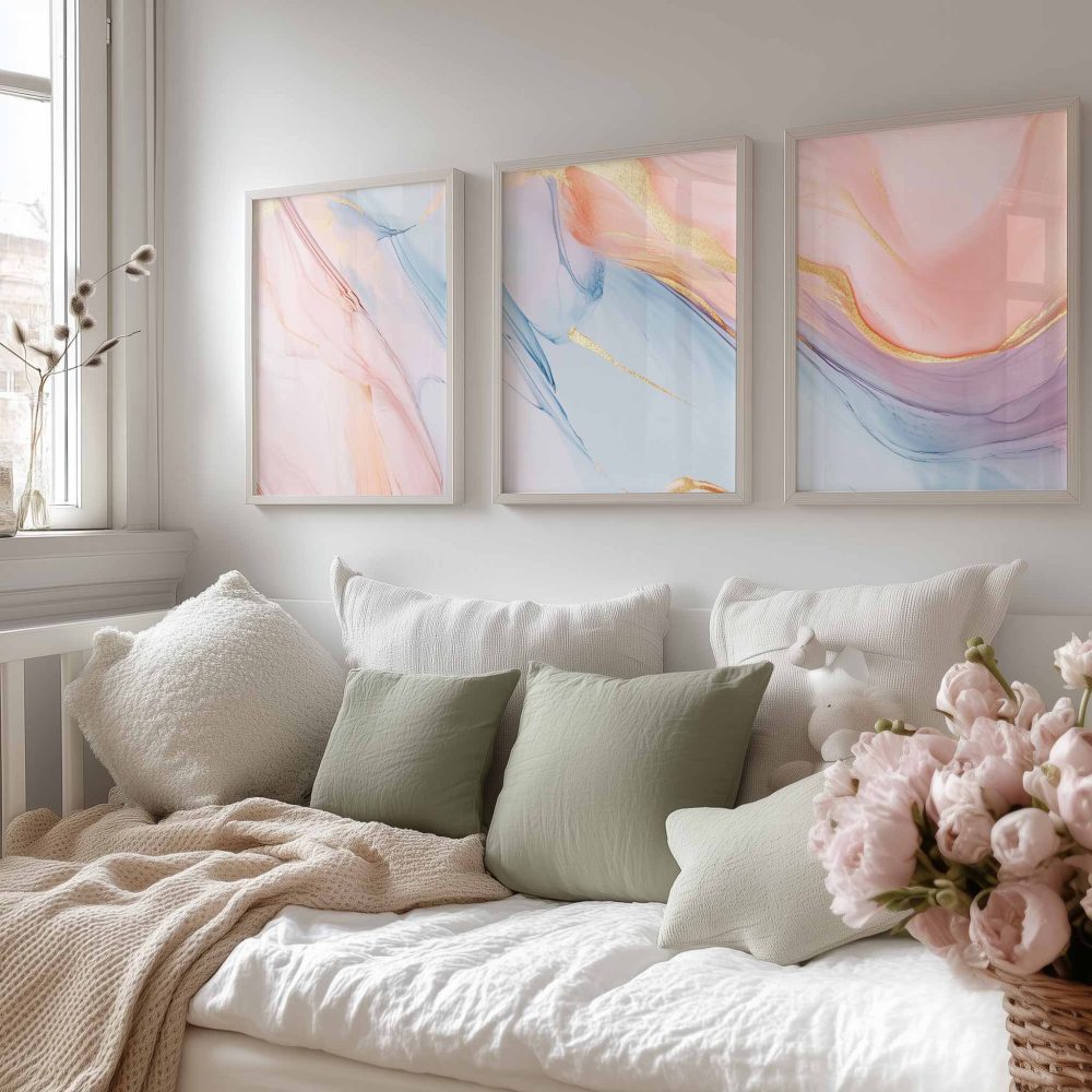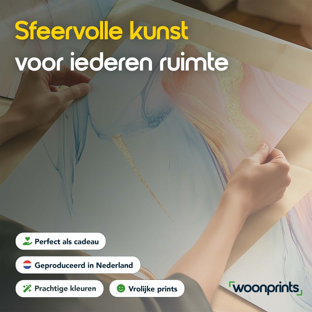 Terug naar collectie / Kinderkamer posters / Pastel Roze & Blauwe Abstracte Werveling met Gouden Accenten