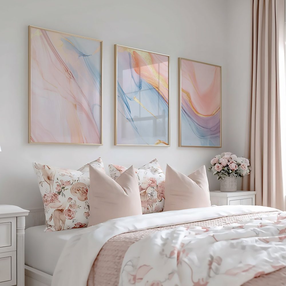 Pastel Roze & Blauwe Abstracte Werveling met Gouden Accenten
