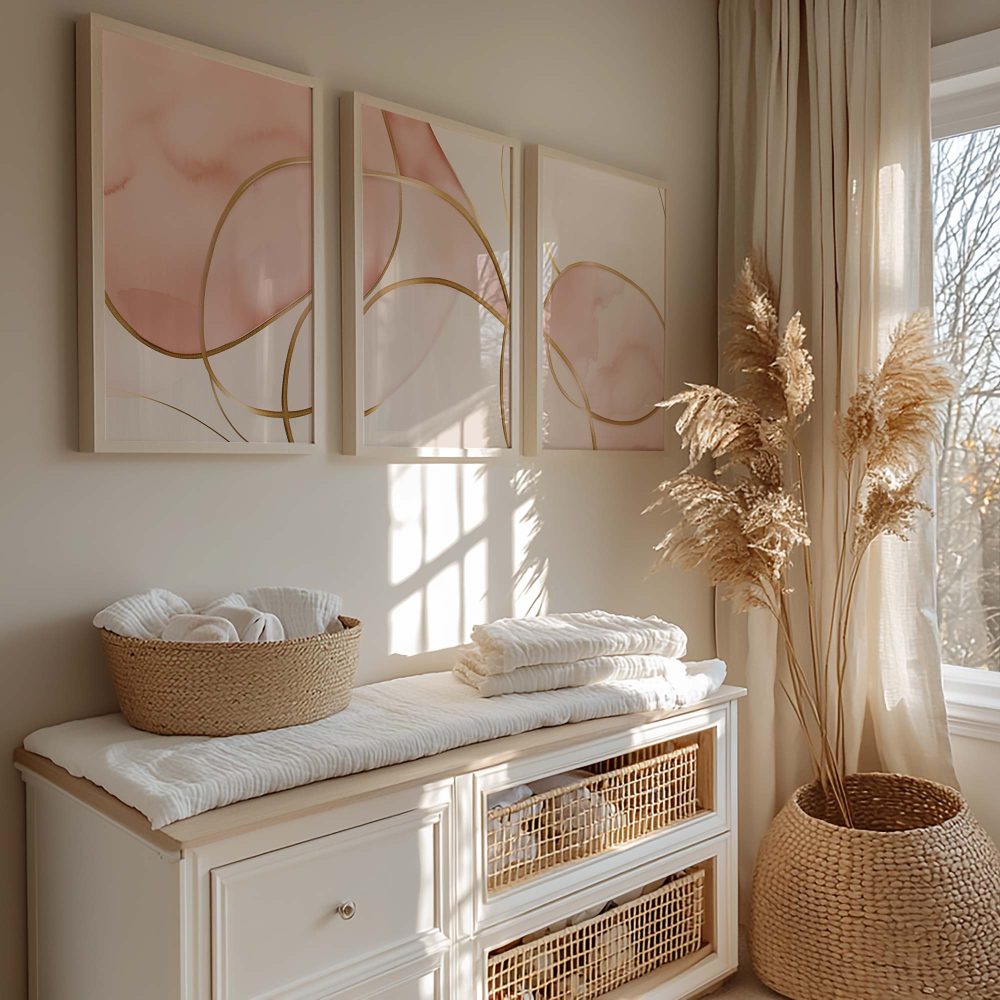 Terug naar collectie / Kinderkamer posters / Pastel Roze Droom: Elegante Abstracte Wanddecoratie