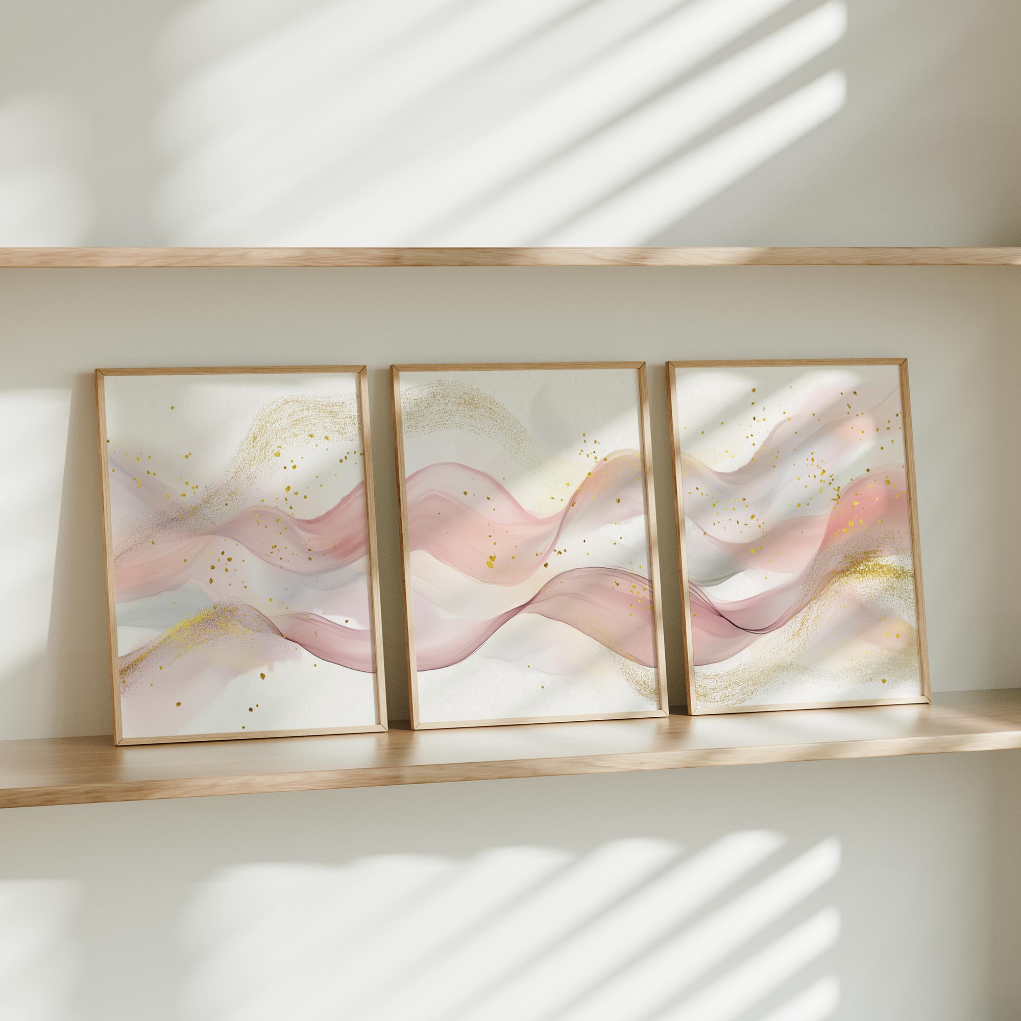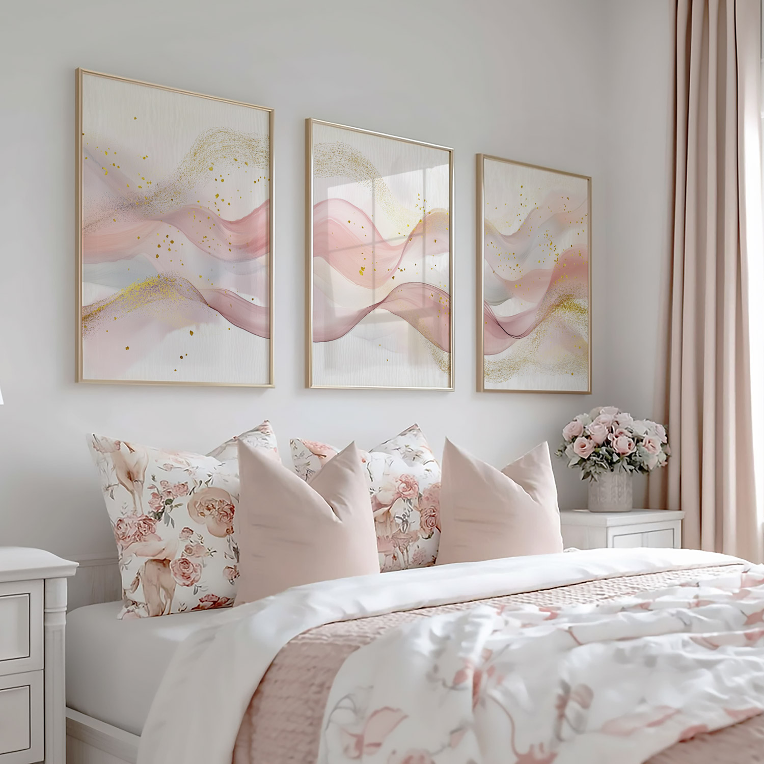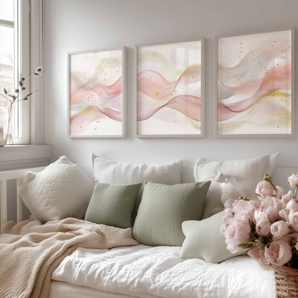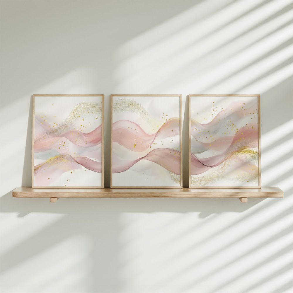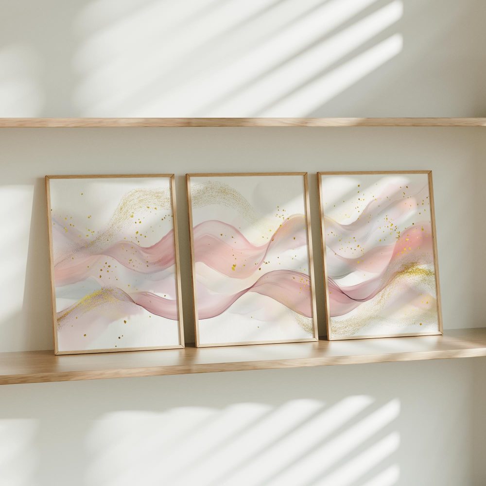 Pastel Roze & Goud Glitter Golven – Elegante Wanddecoratie