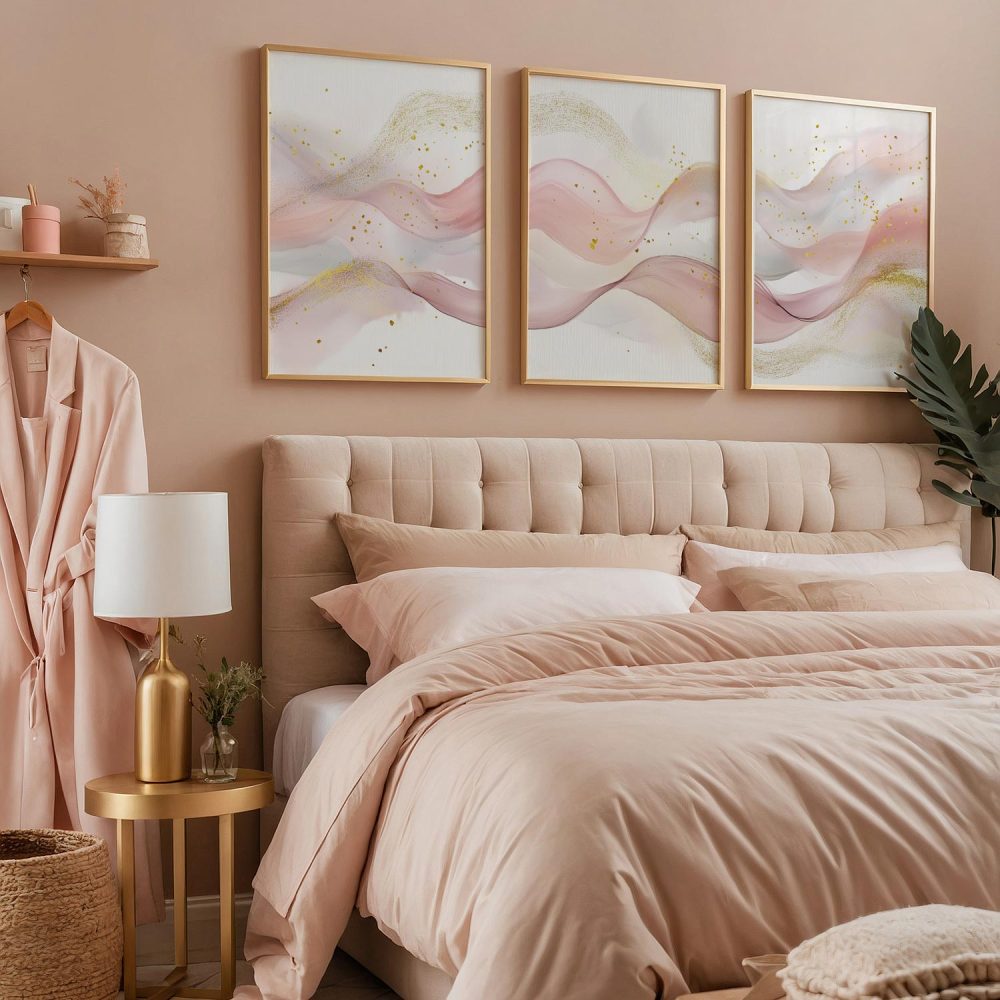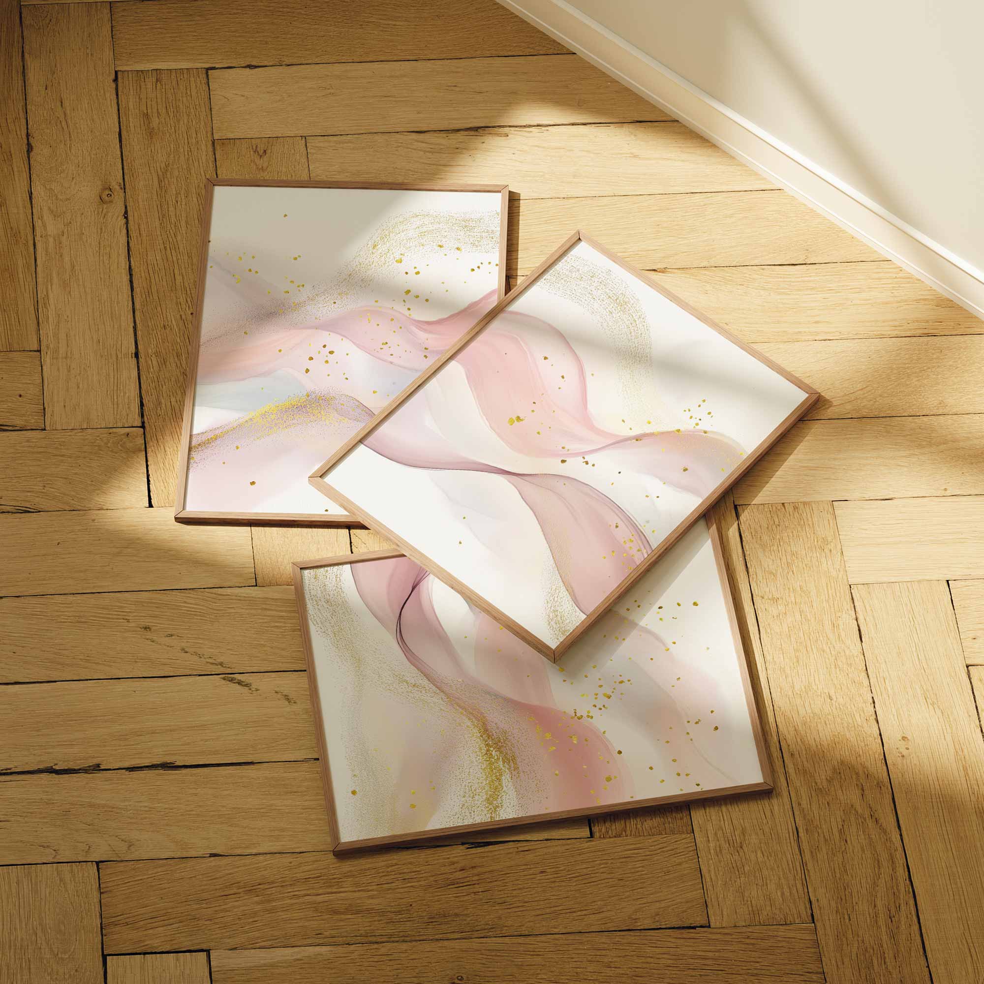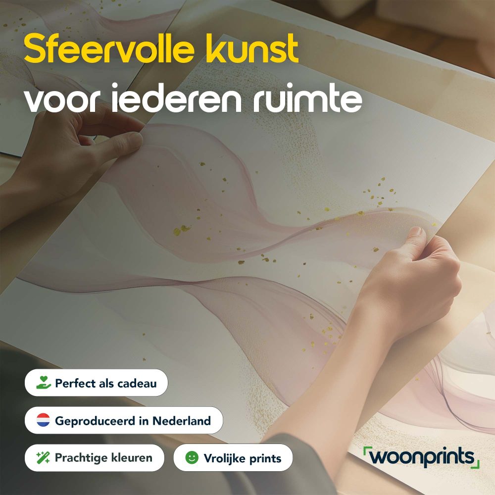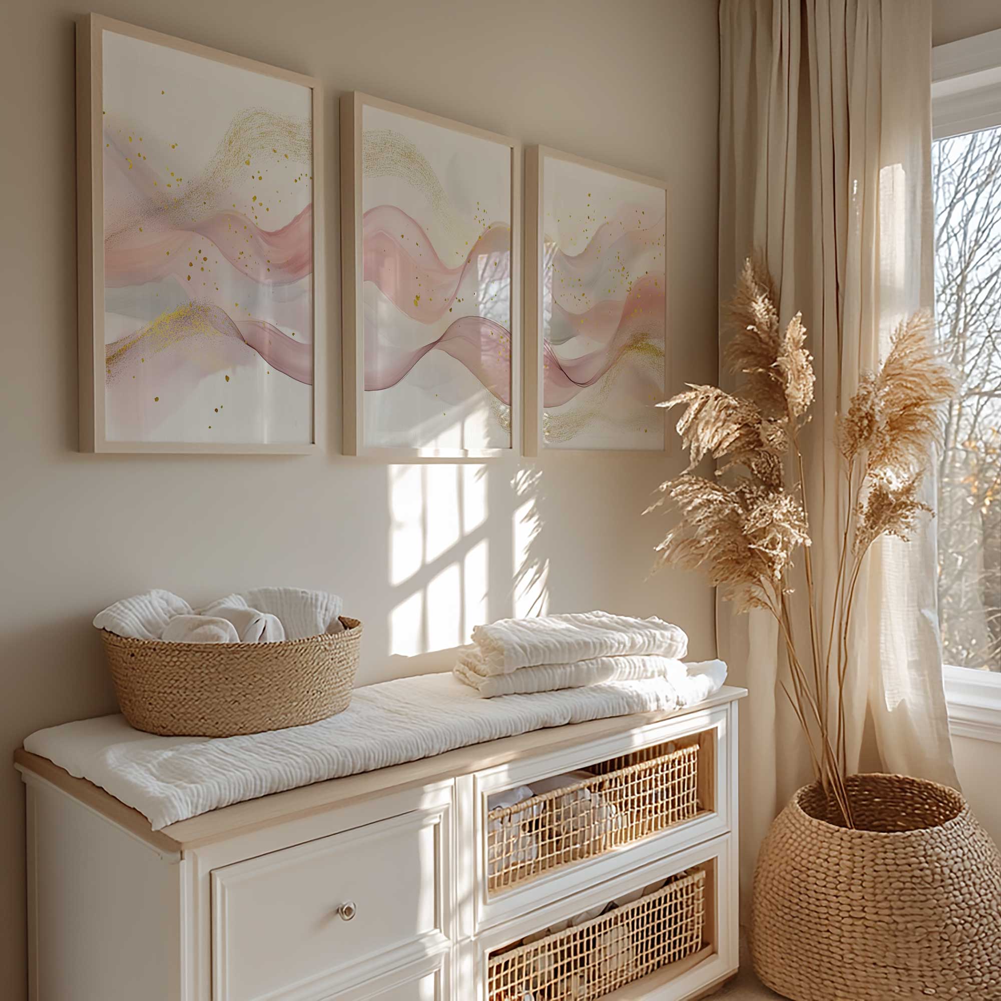 Pastel Roze & Goud Glitter Golven – Elegante Wanddecoratie