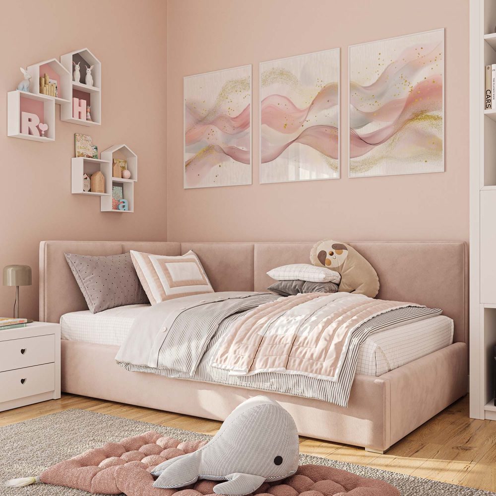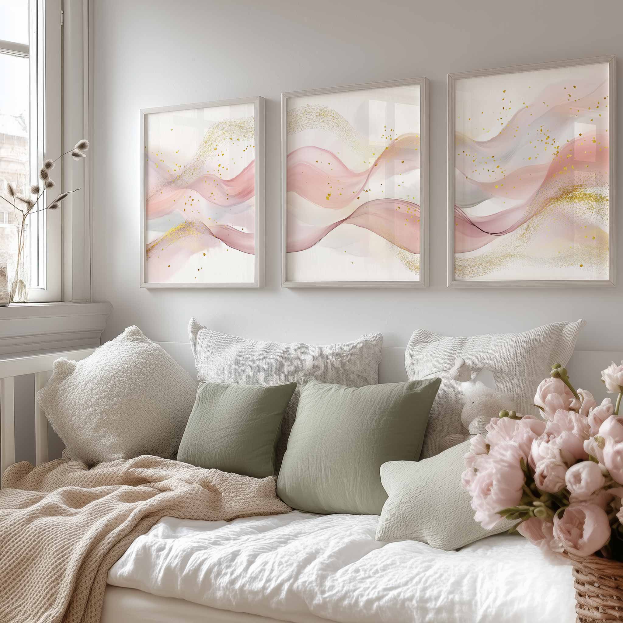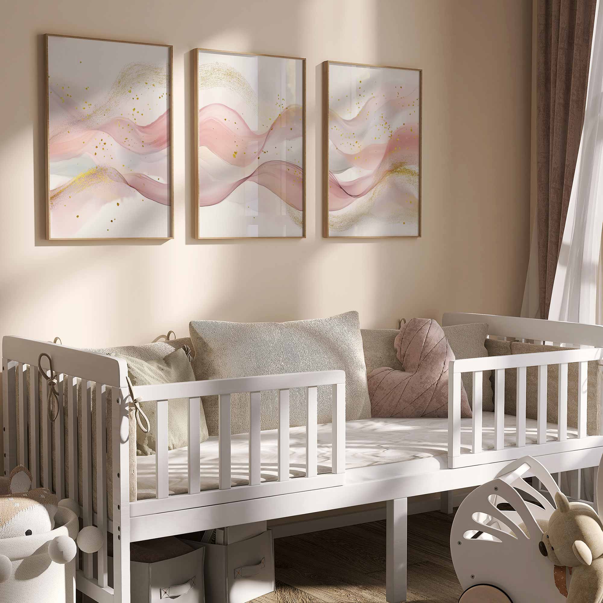 Terug naar collectie / Kinderkamer posters / Pastel Roze & Goud Glitter Golven – Elegante Wanddecoratie