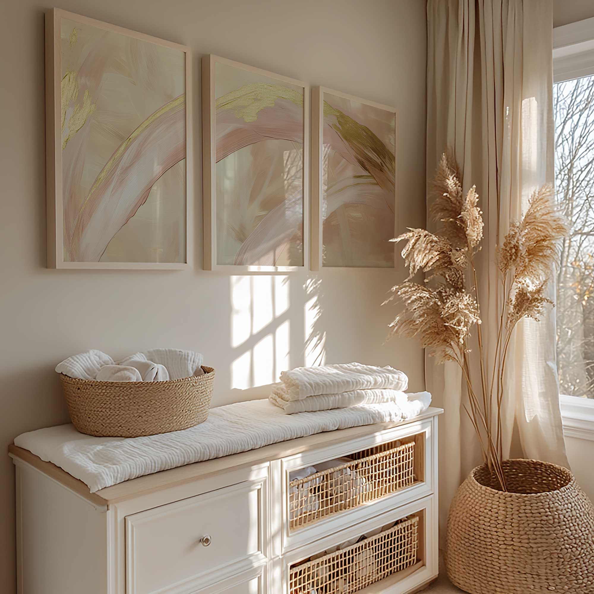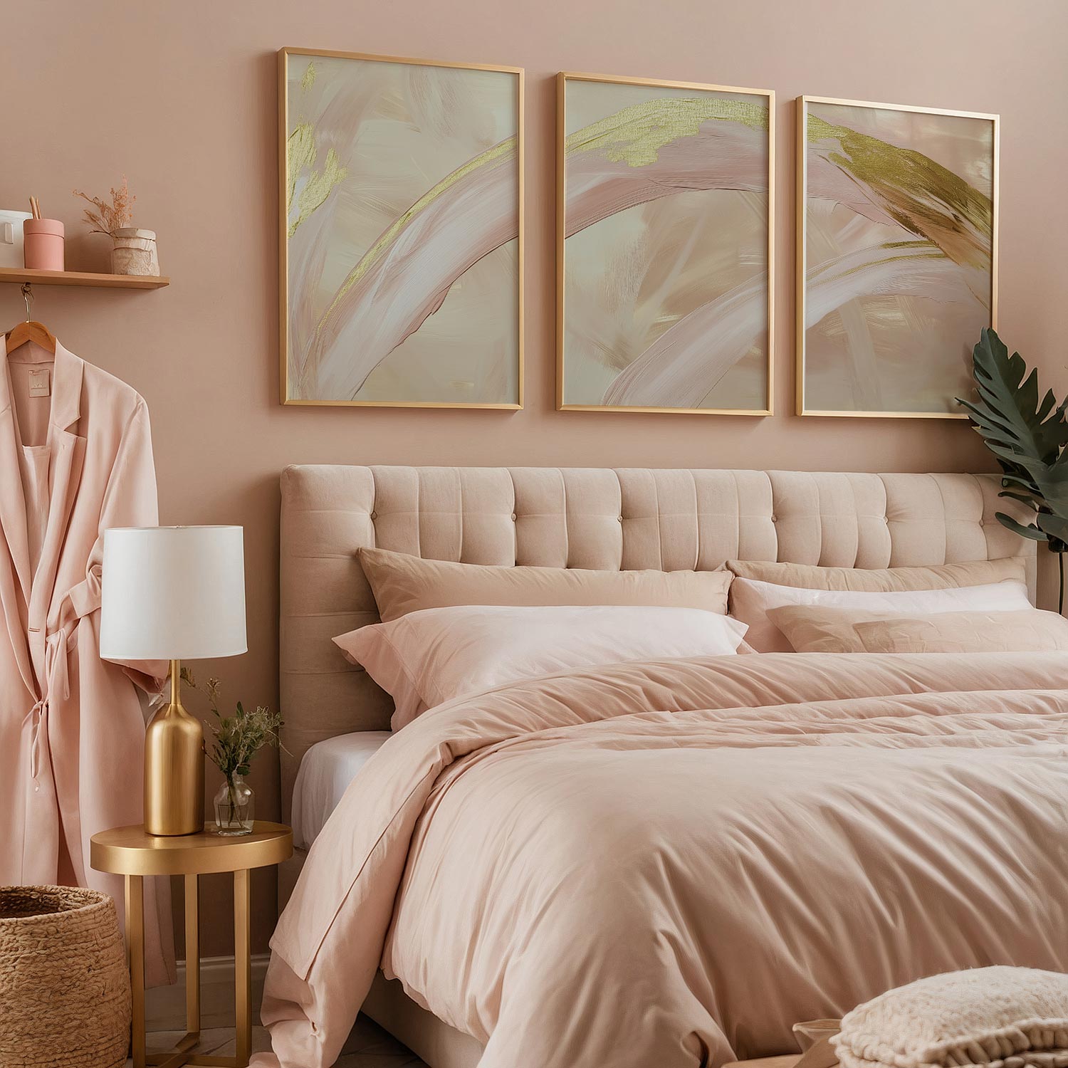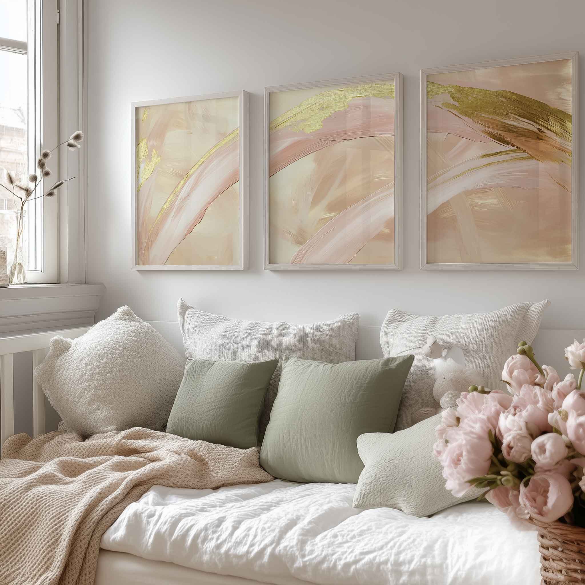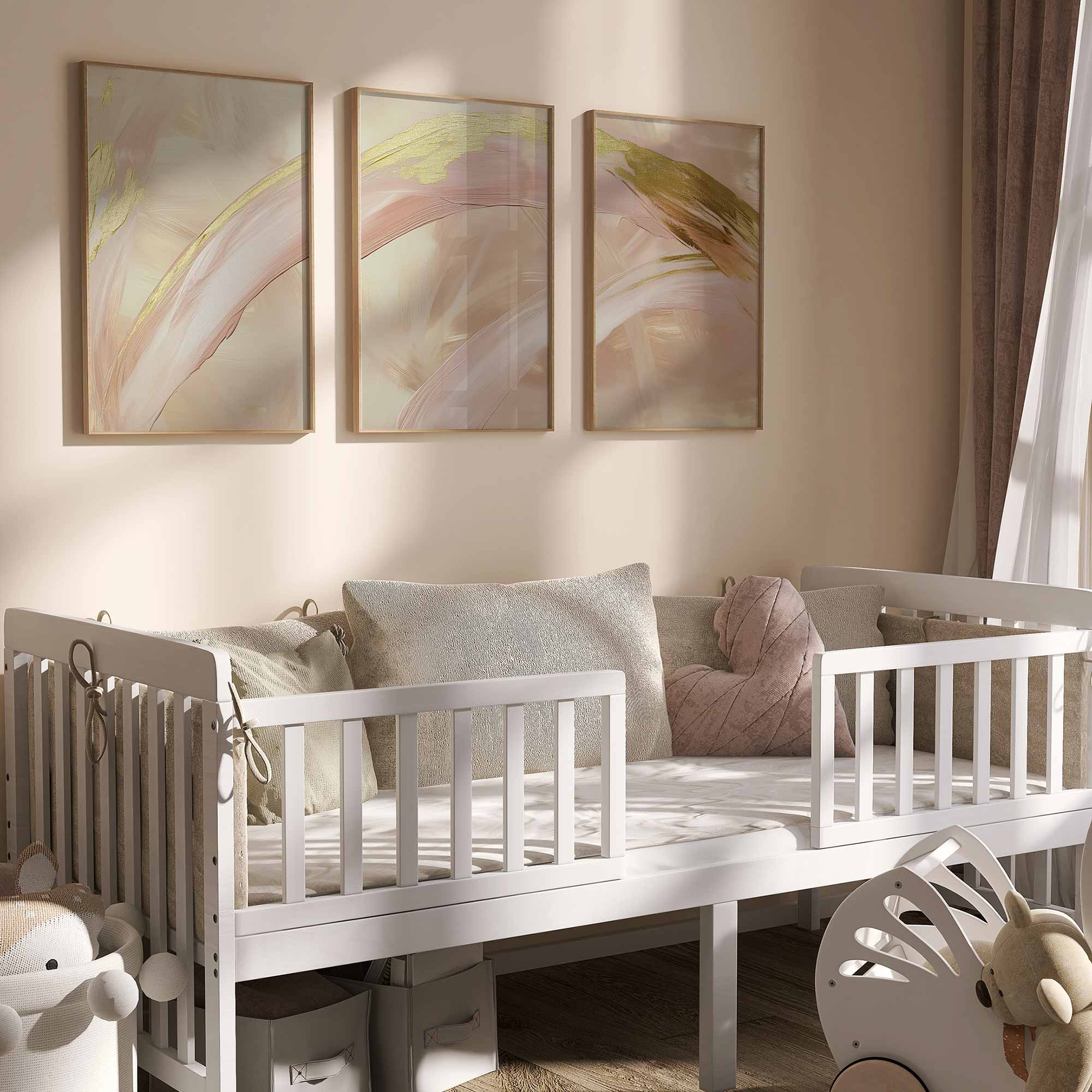 Terug naar collectie / Kinderkamer posters / Pastel Roze & Goud – Speelse Beweging en Elegantie
