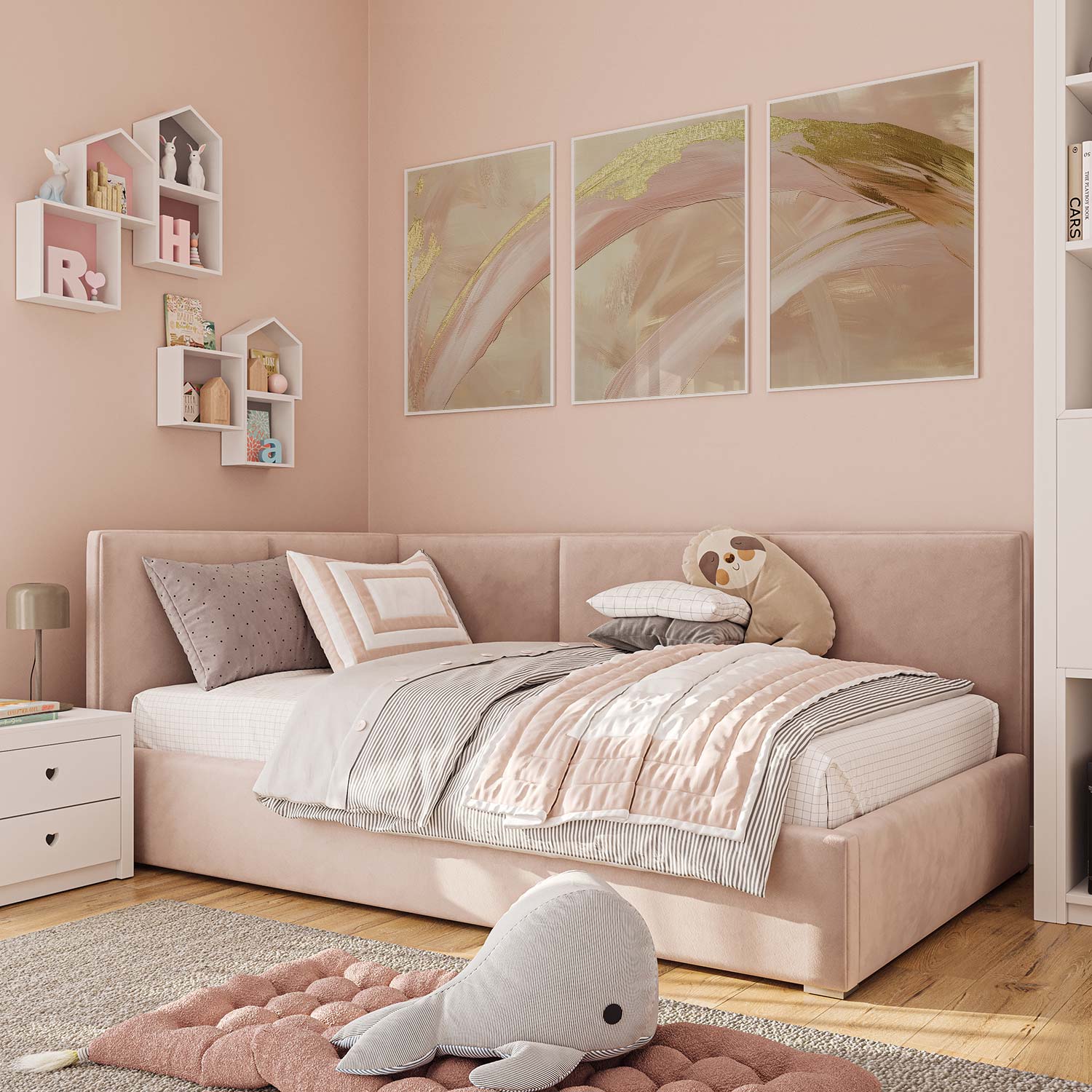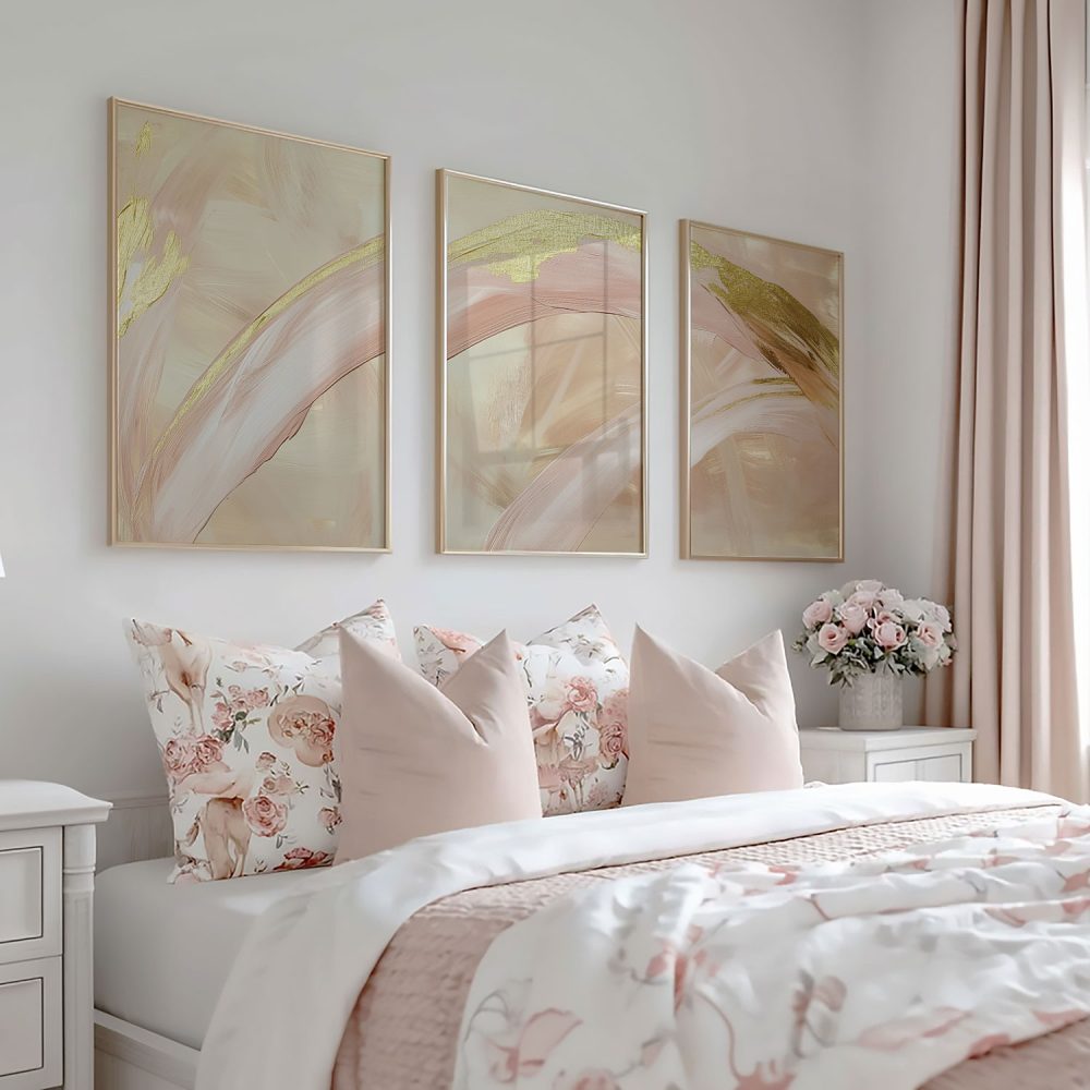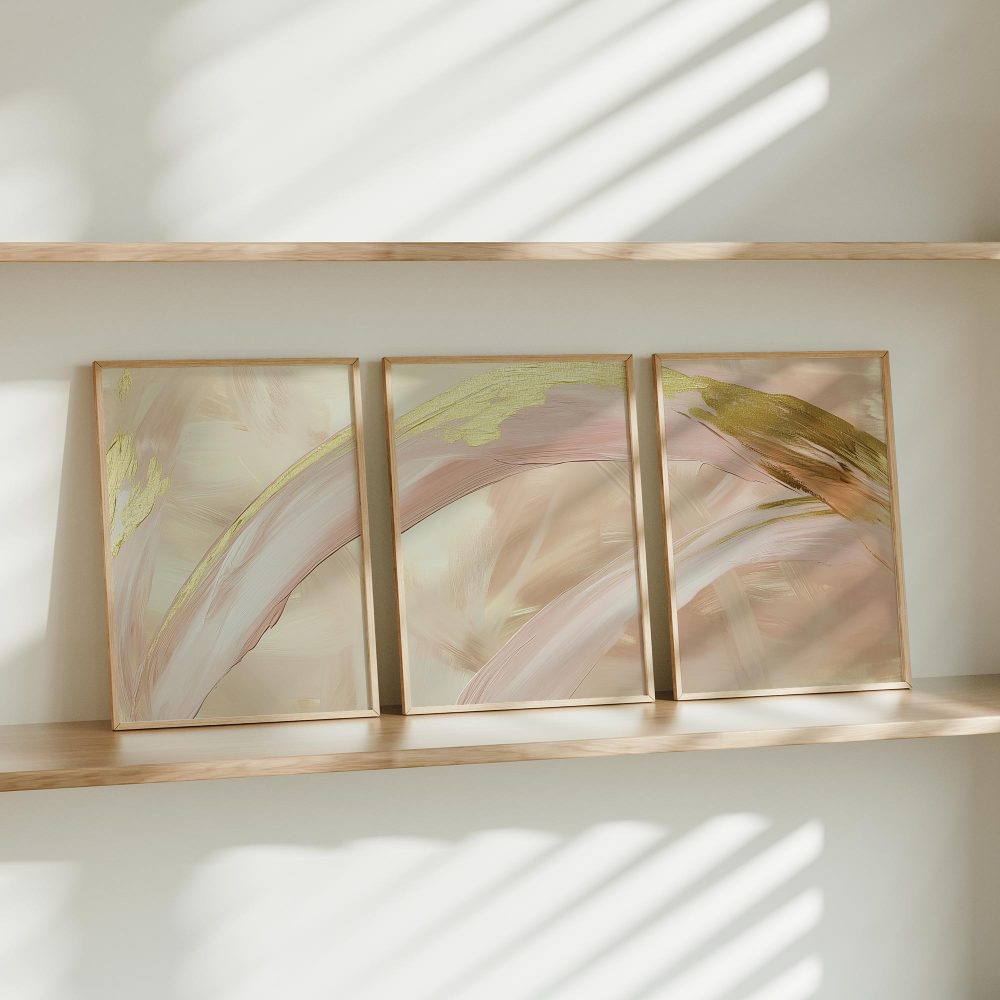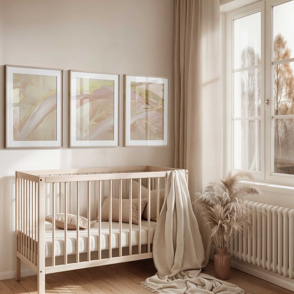 Terug naar collectie / Kinderkamer posters / Pastel Roze & Goud – Speelse Beweging en Elegantie
