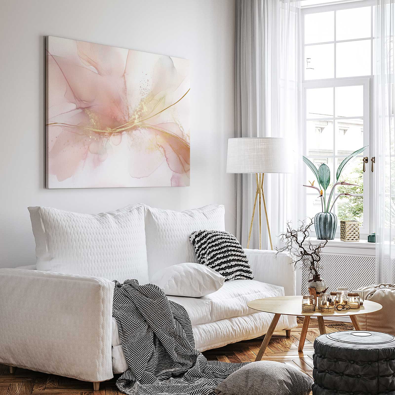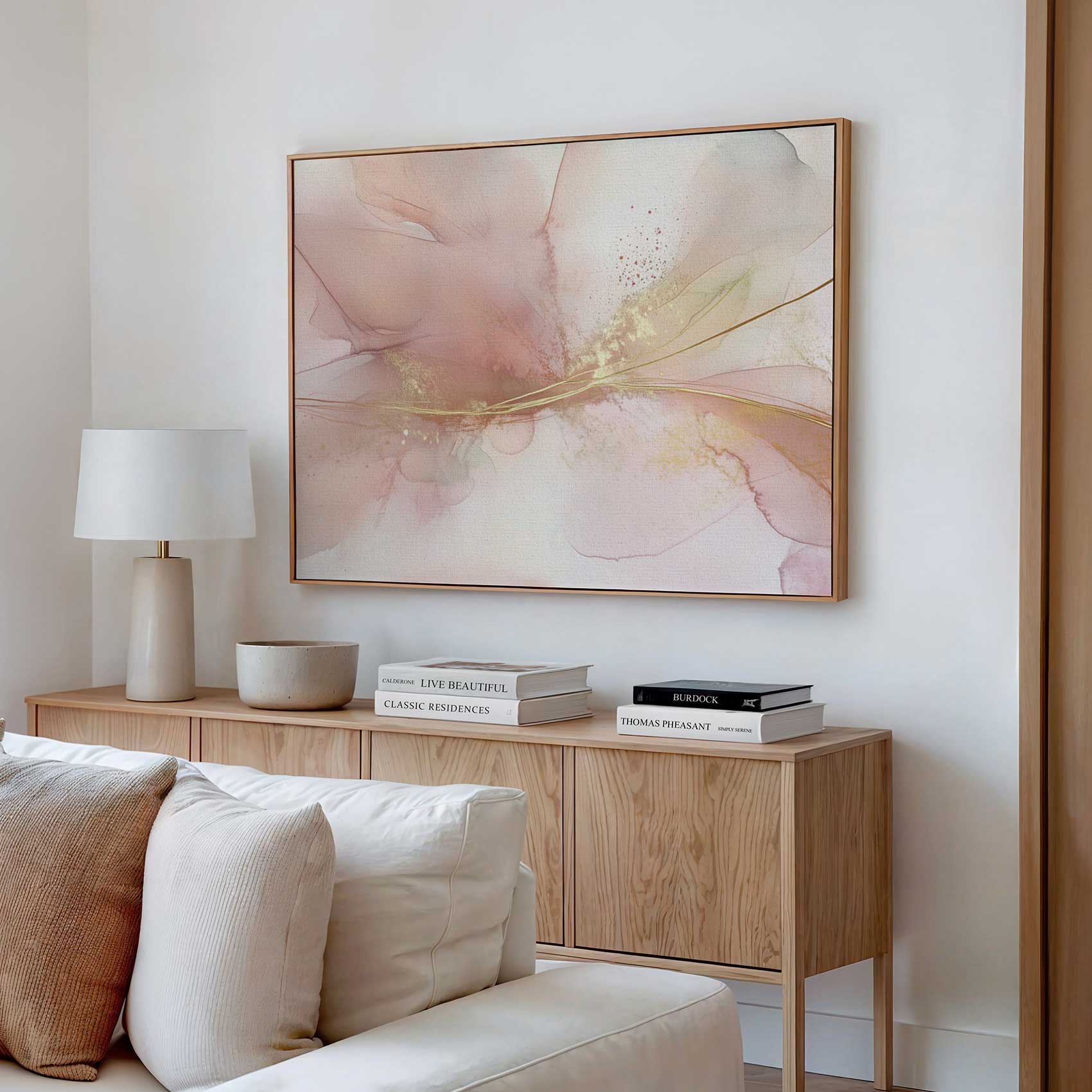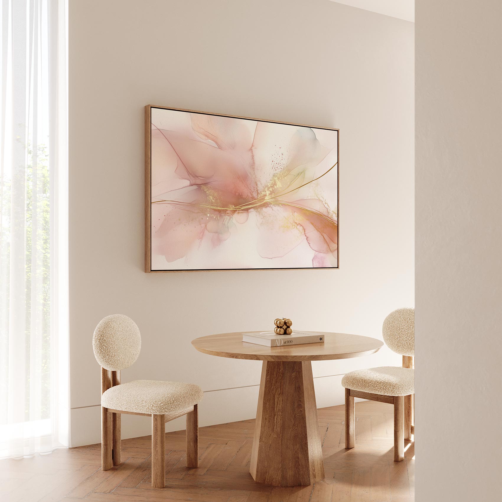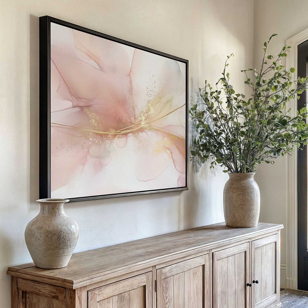 Terug naar collectie / Schilderijen / Abstract Schilderij / Pastel Roze Gouden Abstract
