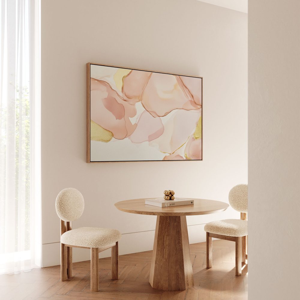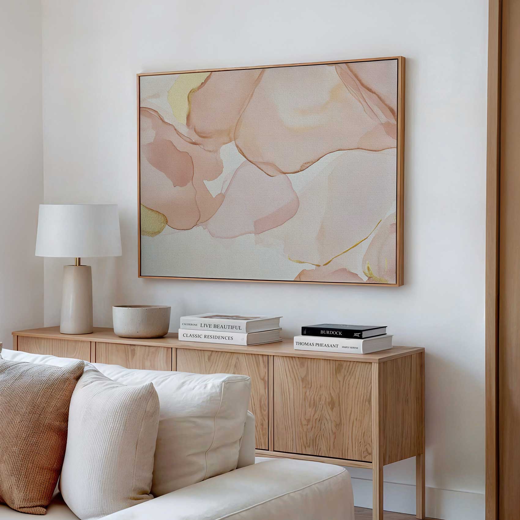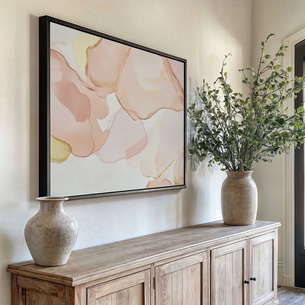 Terug naar collectie / Schilderijen / Abstract Schilderij / Pastel Roze Gouden Waterverf