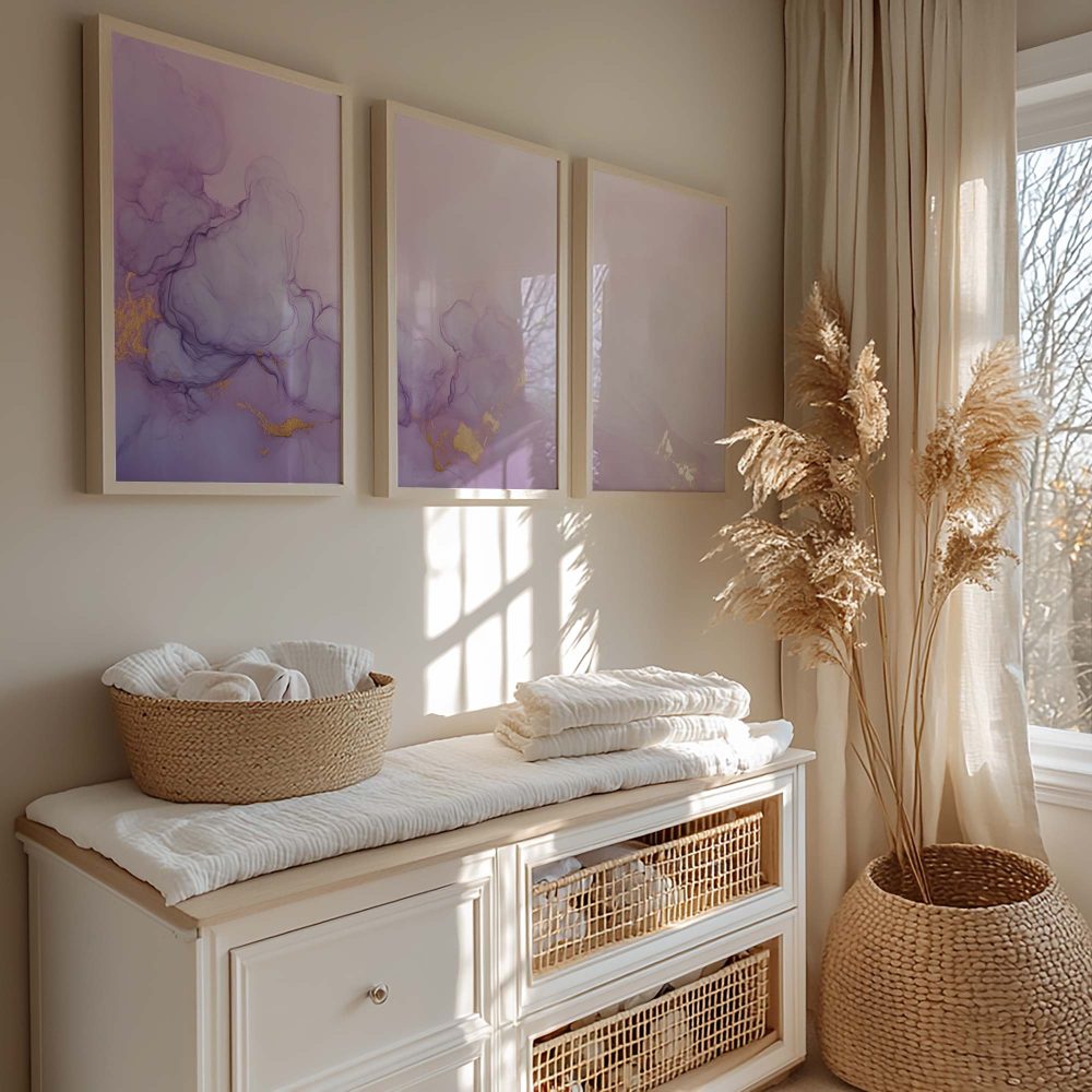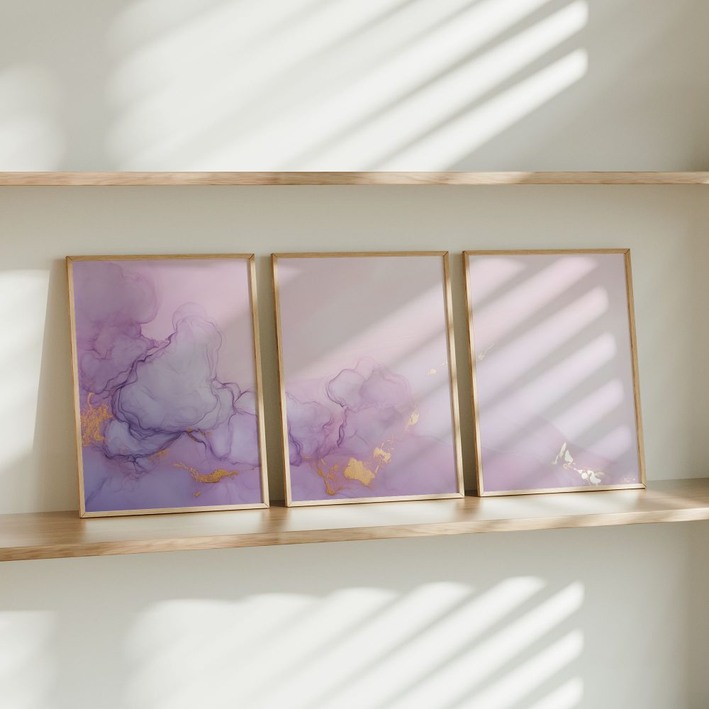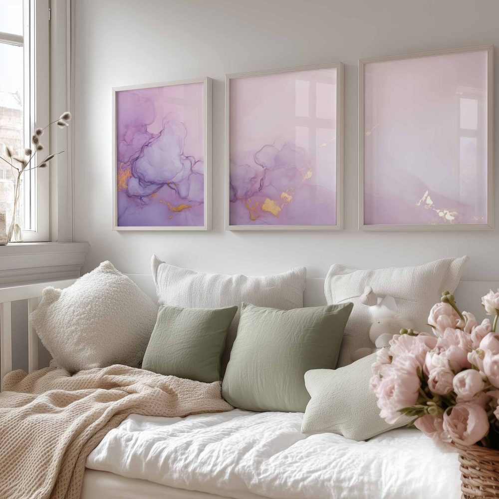 Terug naar collectie / Kinderkamer posters / Pastel Roze & Paarse Abstracte Wanddecoratie – Dromerig & Stijlvol
