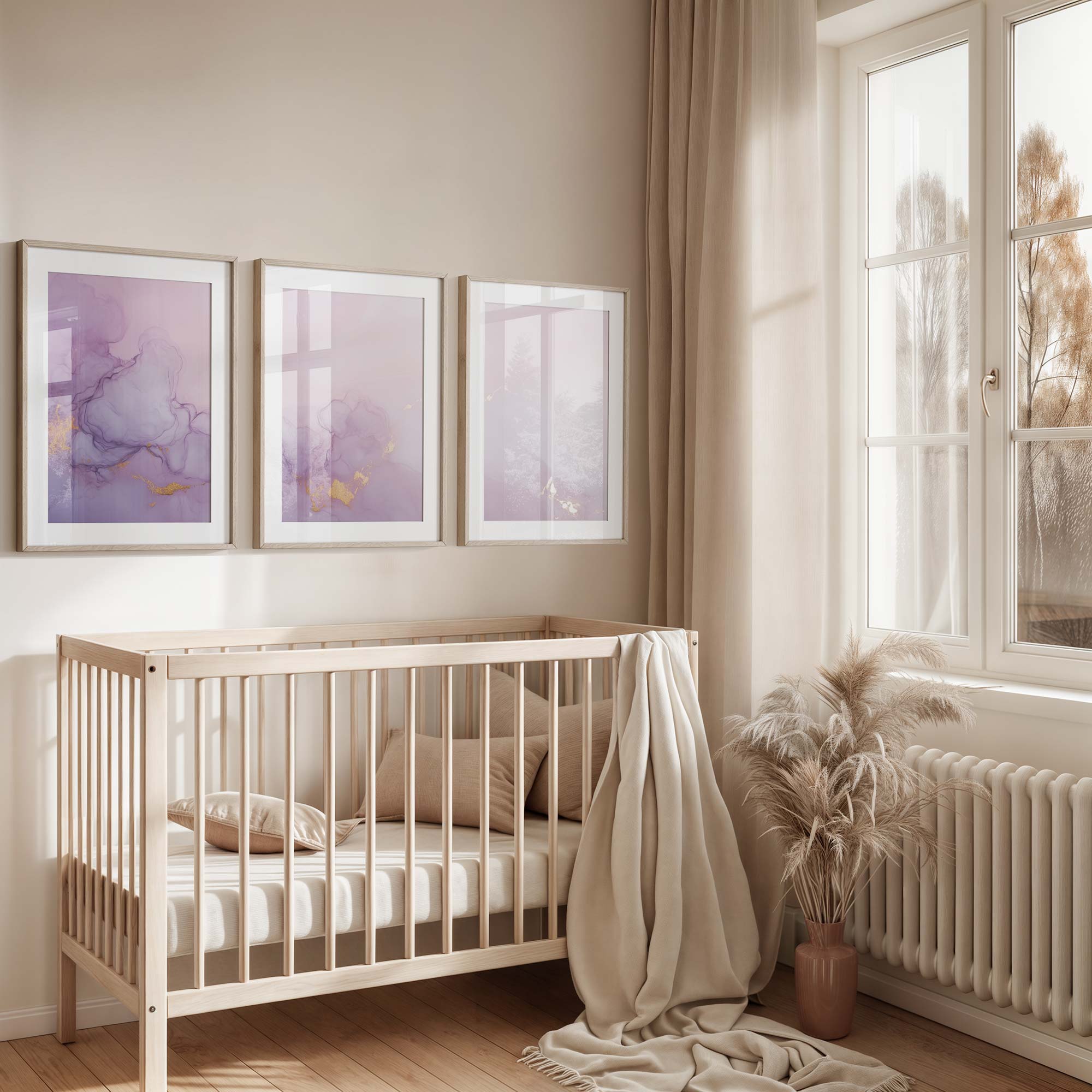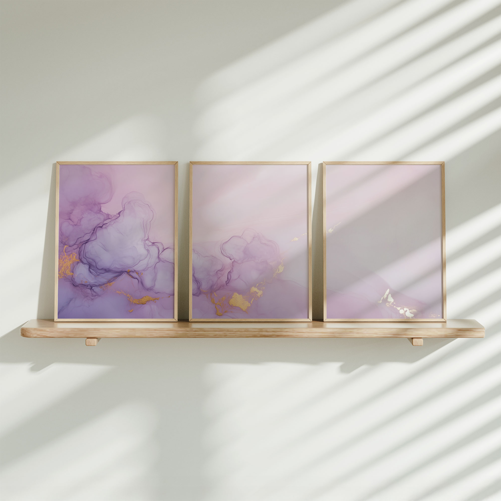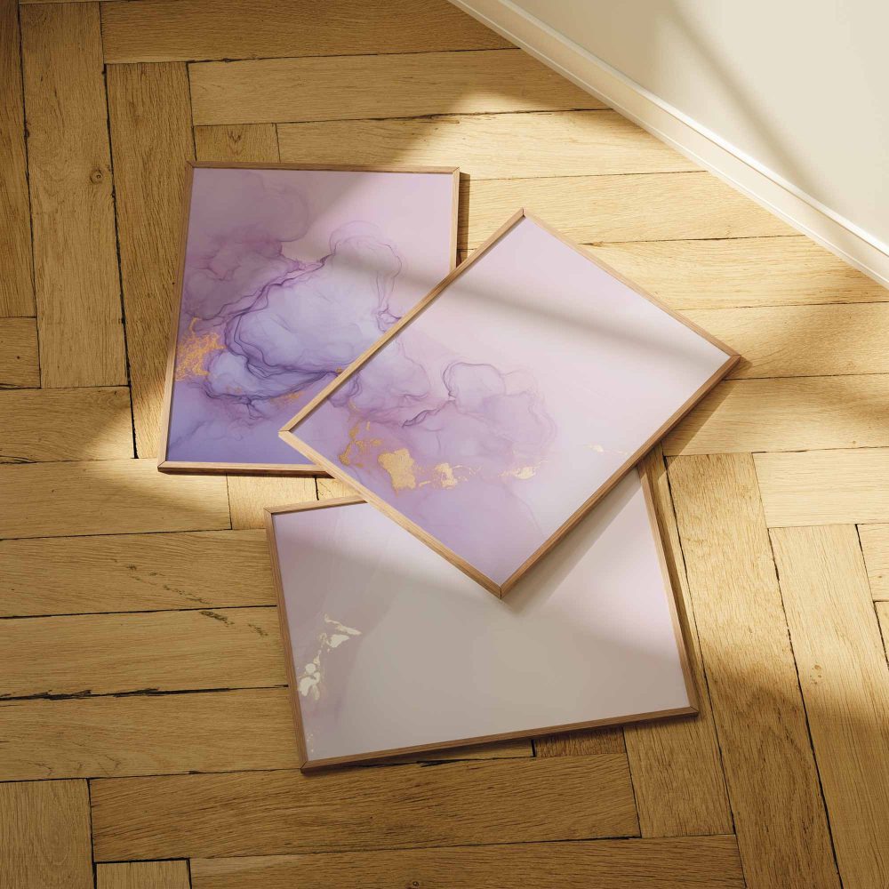 Terug naar collectie / Kinderkamer posters / Pastel Roze & Paarse Abstracte Wanddecoratie – Dromerig & Stijlvol