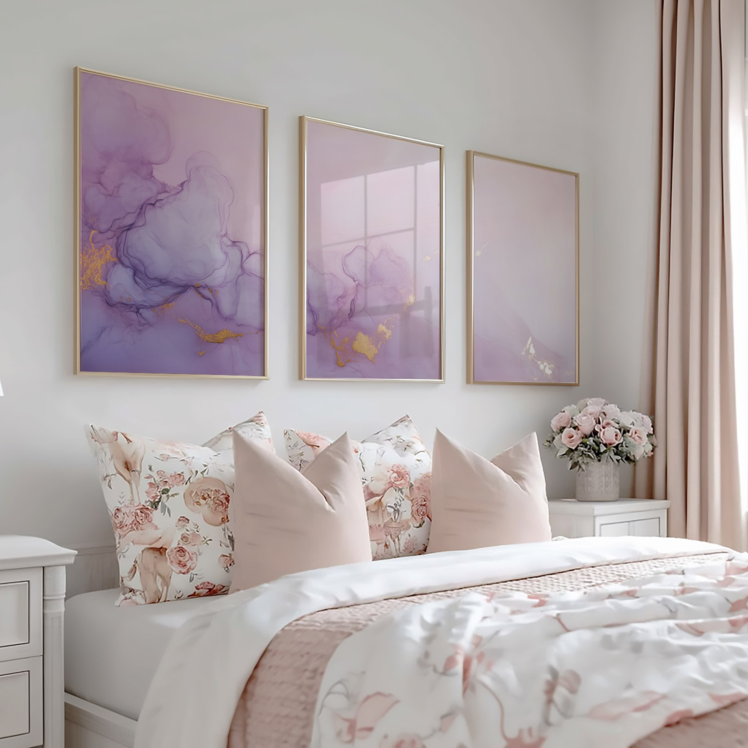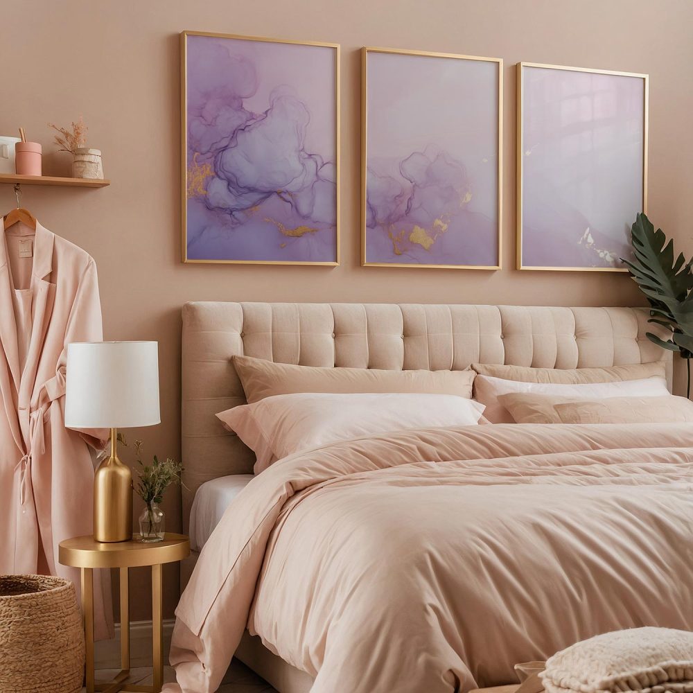 Pastel Roze & Paarse Abstracte Wanddecoratie – Dromerig & Stijlvol