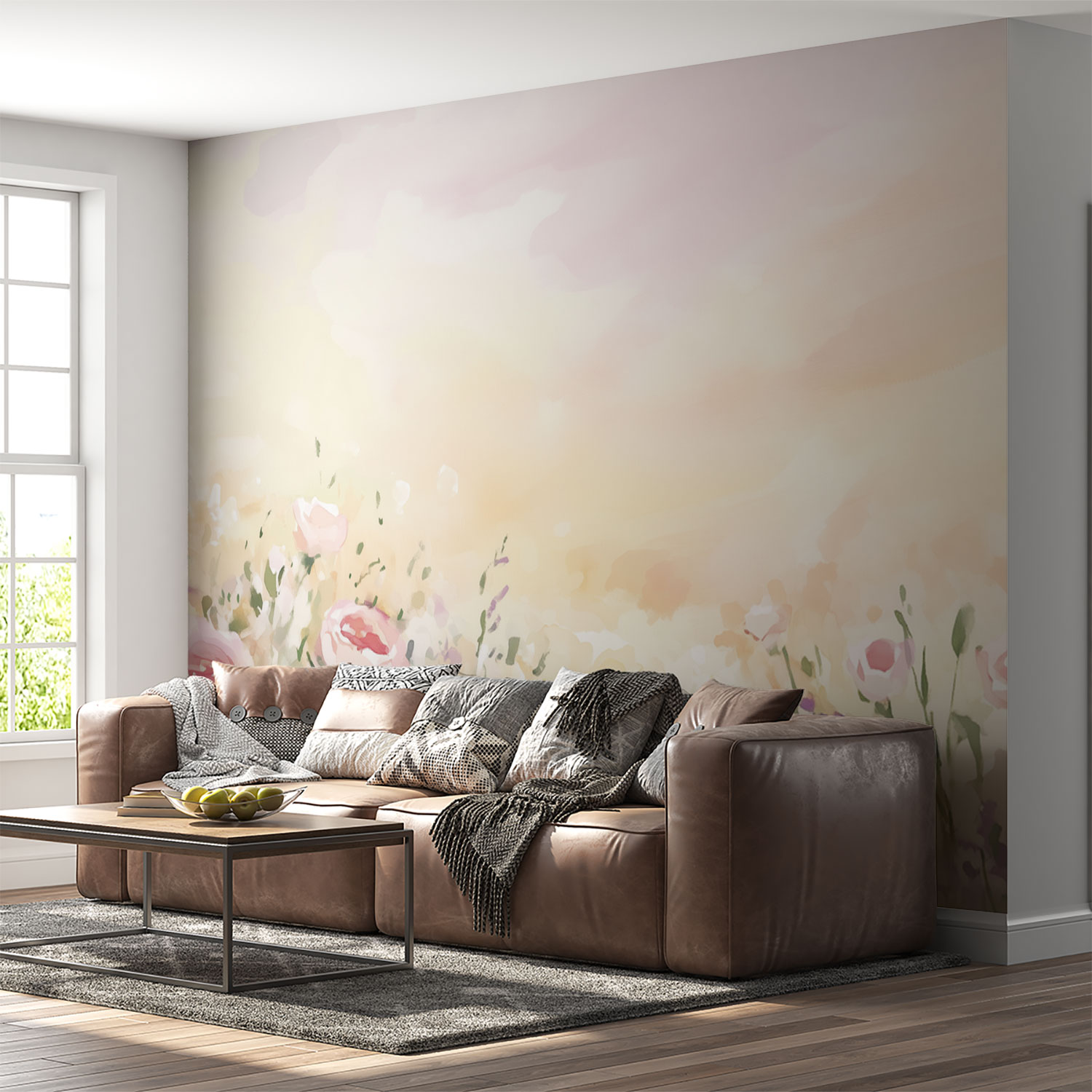 Pastel Rozen Watercolor Schilderij behang