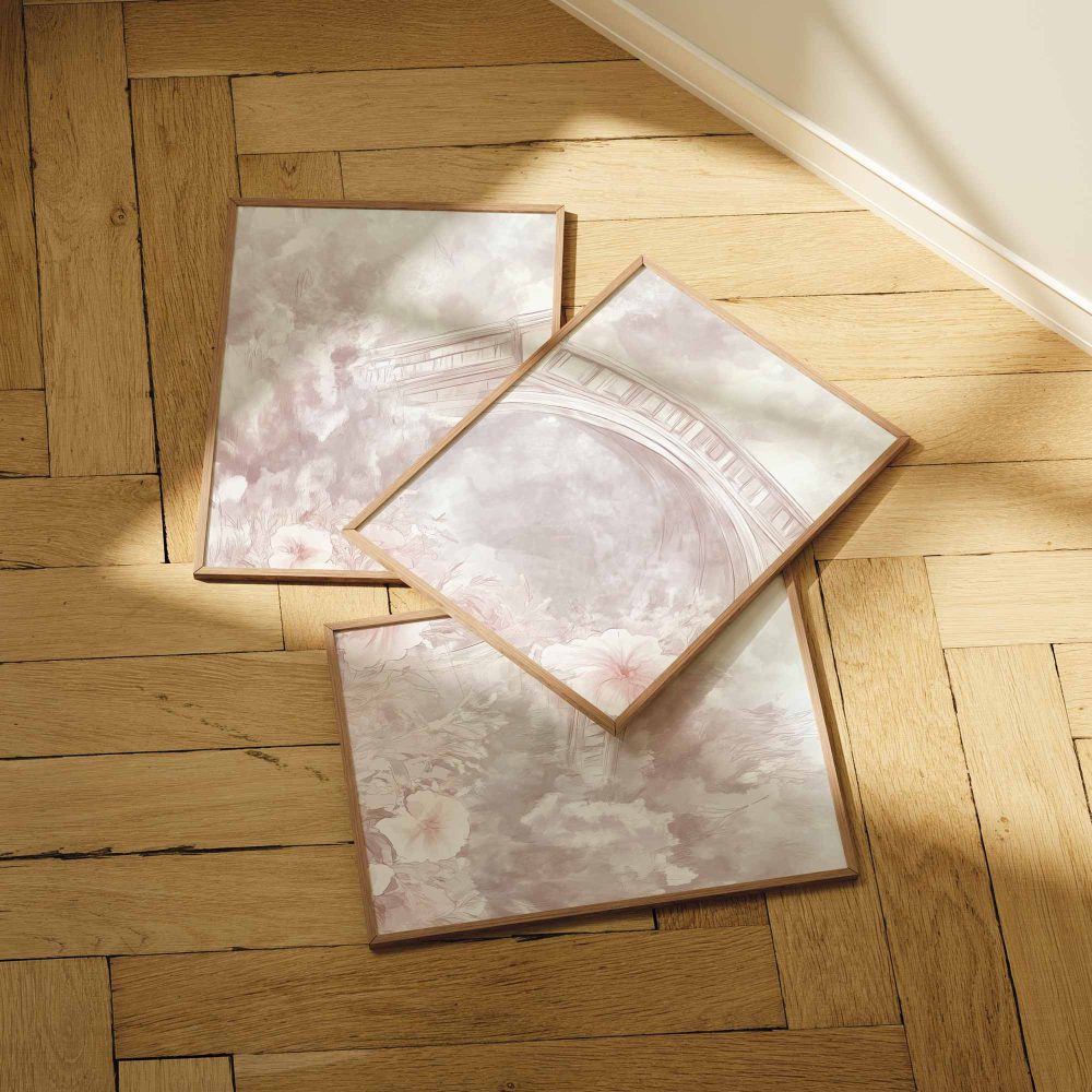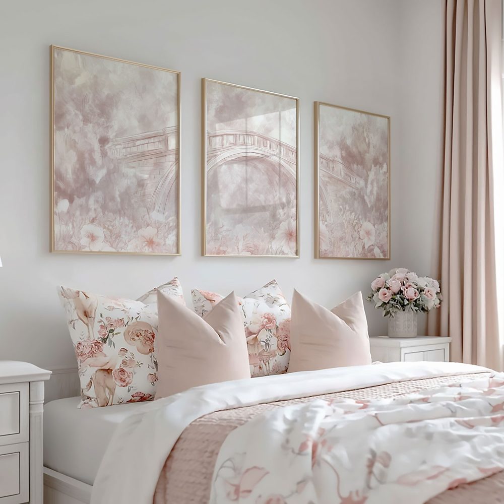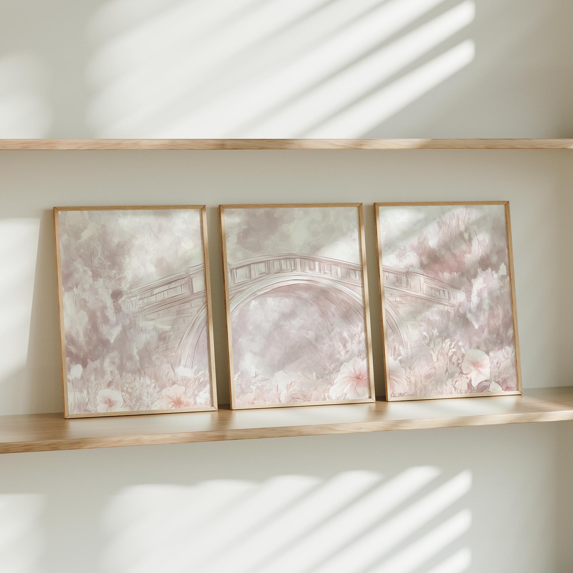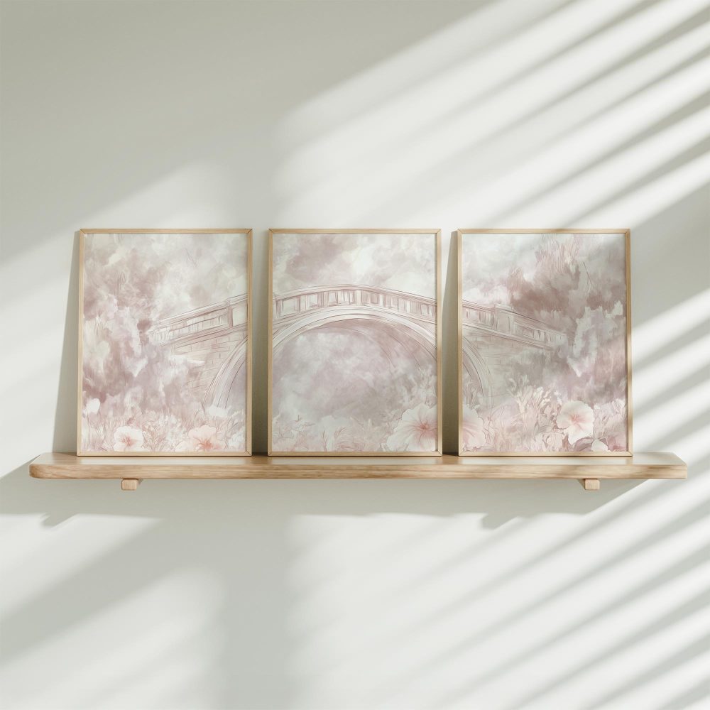 Terug naar collectie / Kinderkamer posters / Bloemen posters / Pastelbruggen omringd door bloemen – Dromerige wanddecoratie