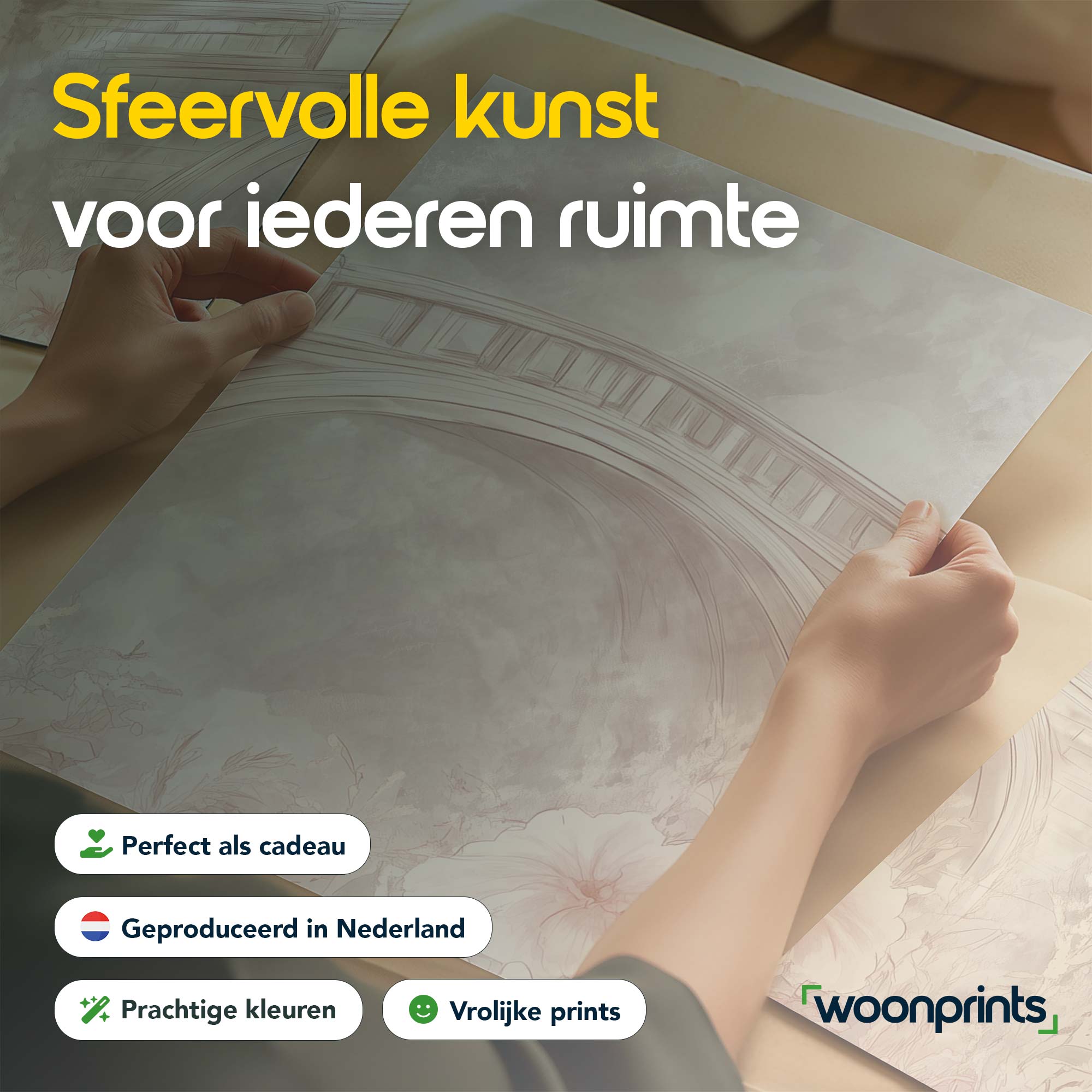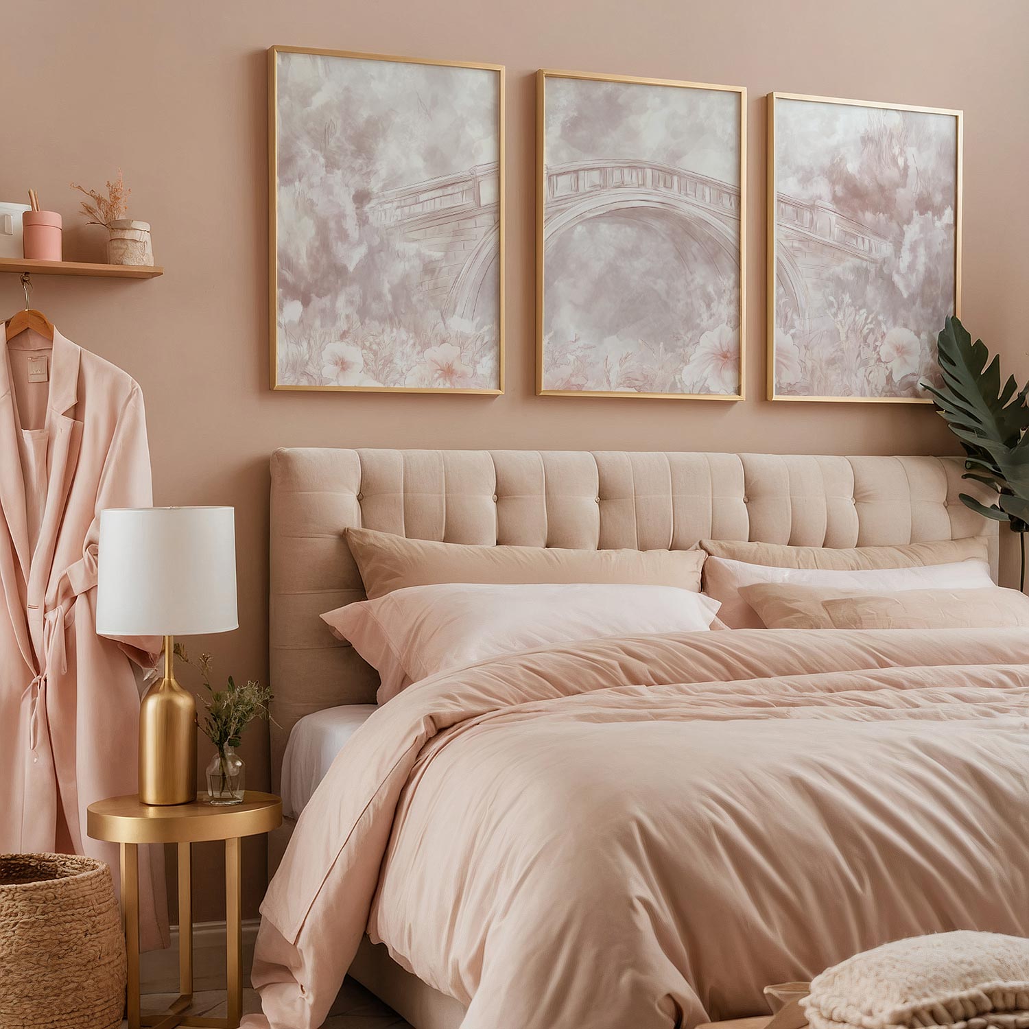 Pastelbruggen omringd door bloemen – Dromerige wanddecoratie