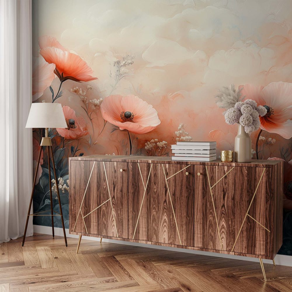 Prachtig roze bloemenveld behang