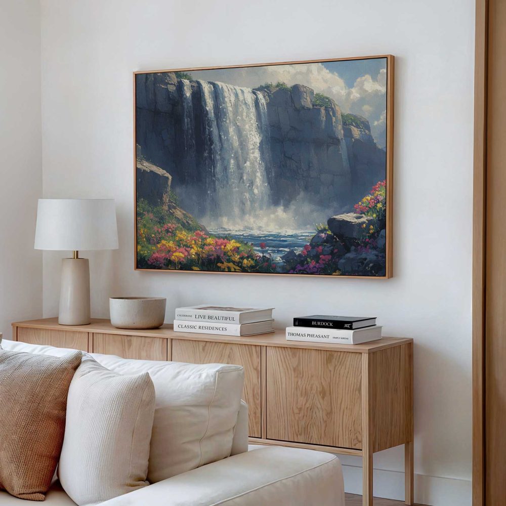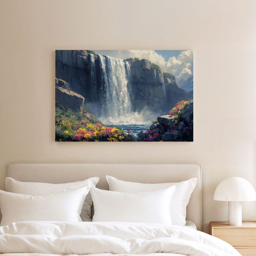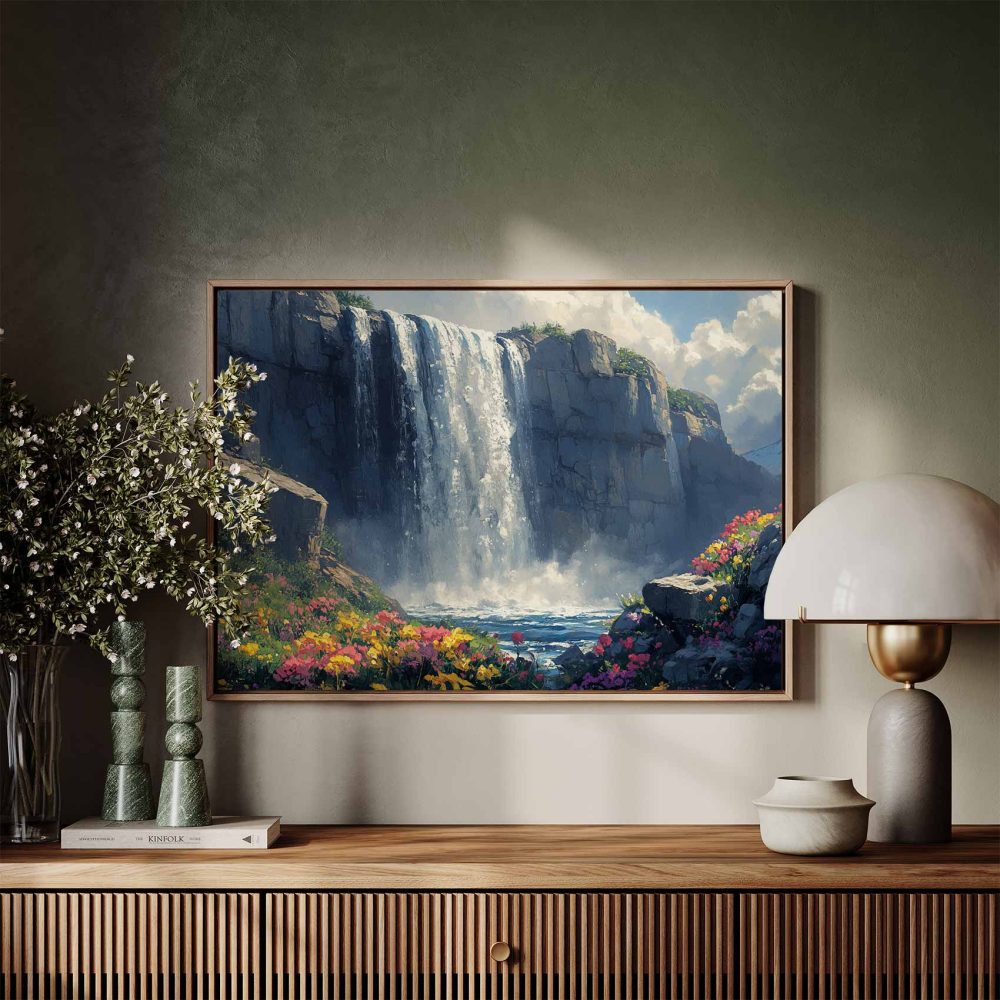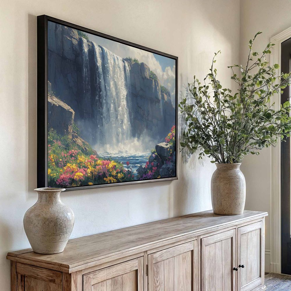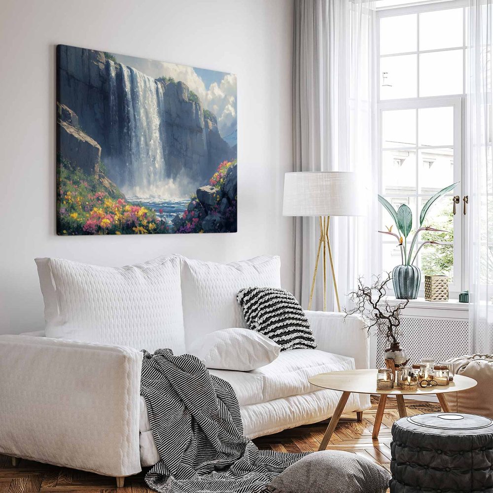 Terug naar collectie / Schilderijen / Bergen Schilderij / Prachtig waterval landschapsschilderij