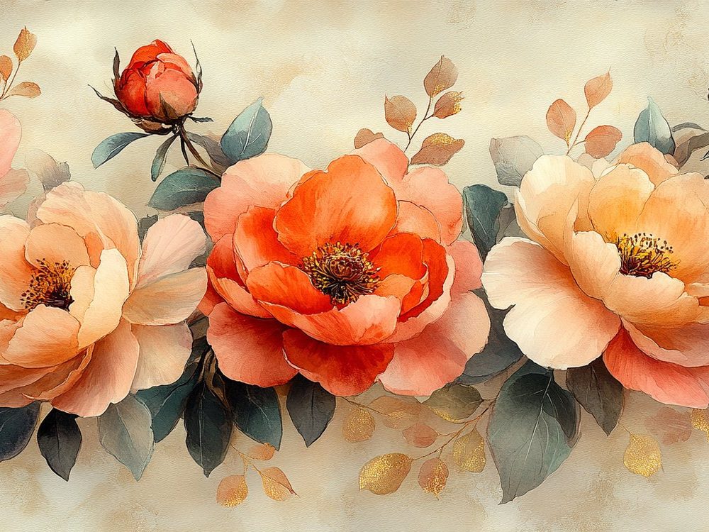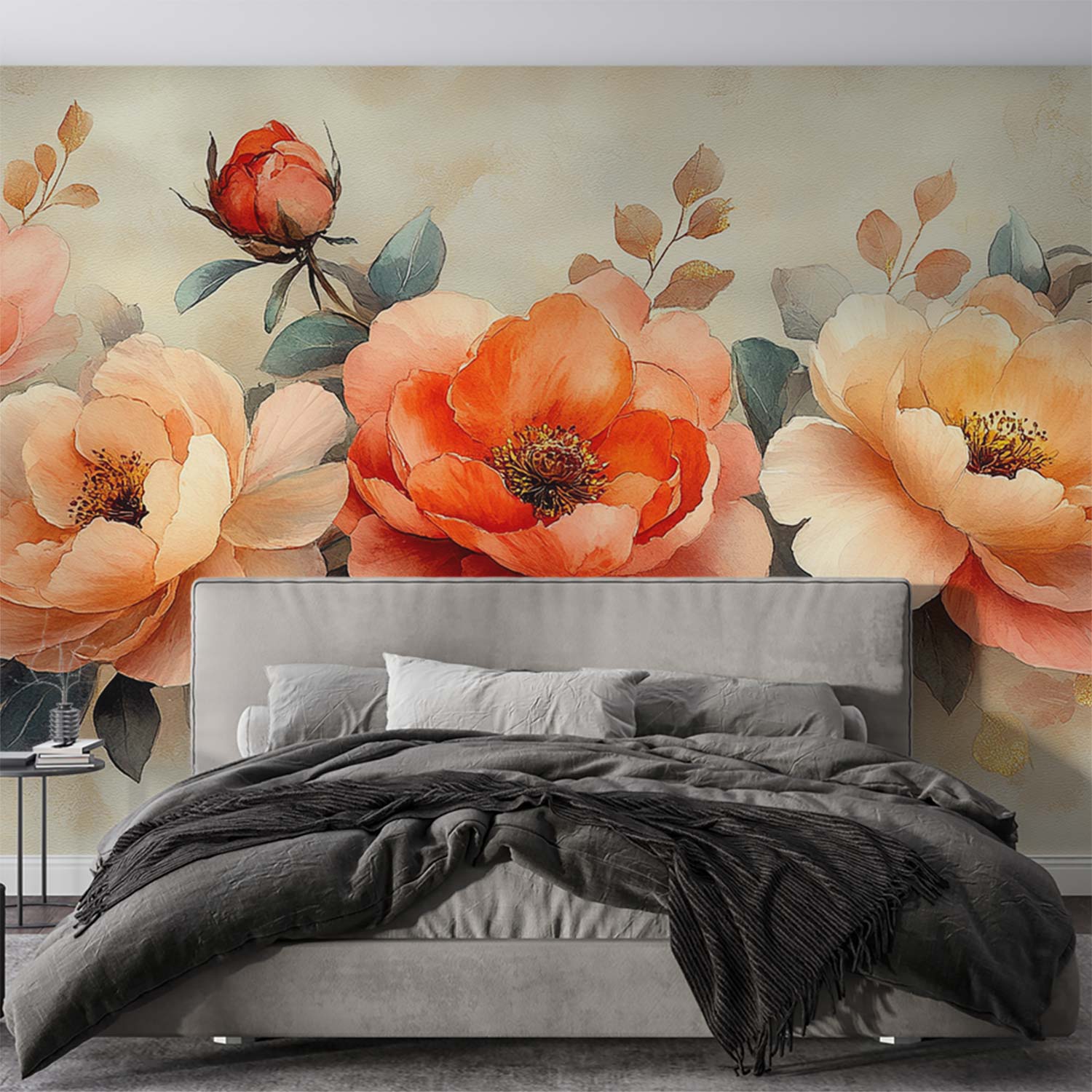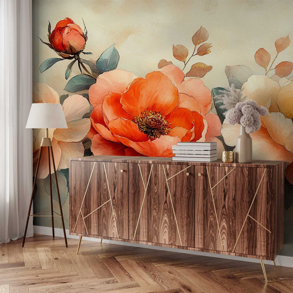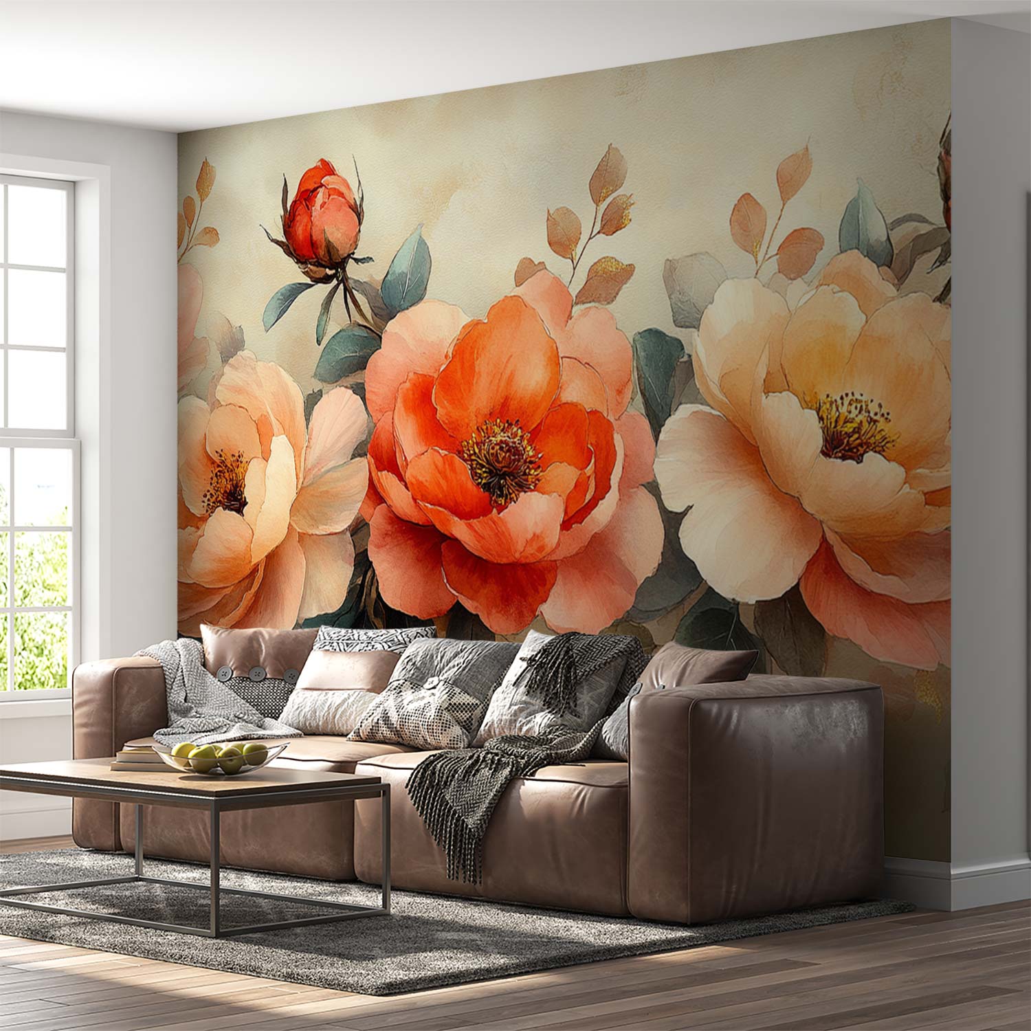 Terug naar collectie / Behang / Prachtige oranje roze bloemen behang