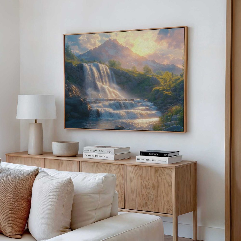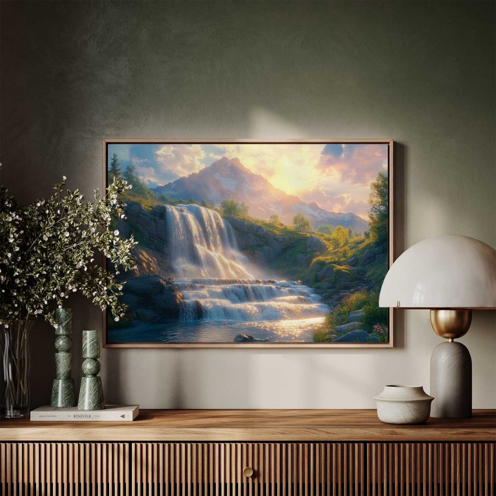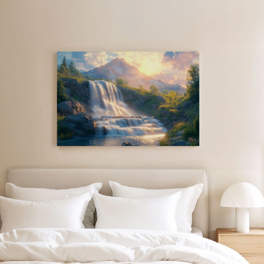 Terug naar collectie / Schilderijen / Bergen Schilderij / Prachtige waterval in natuur