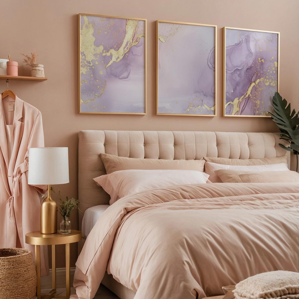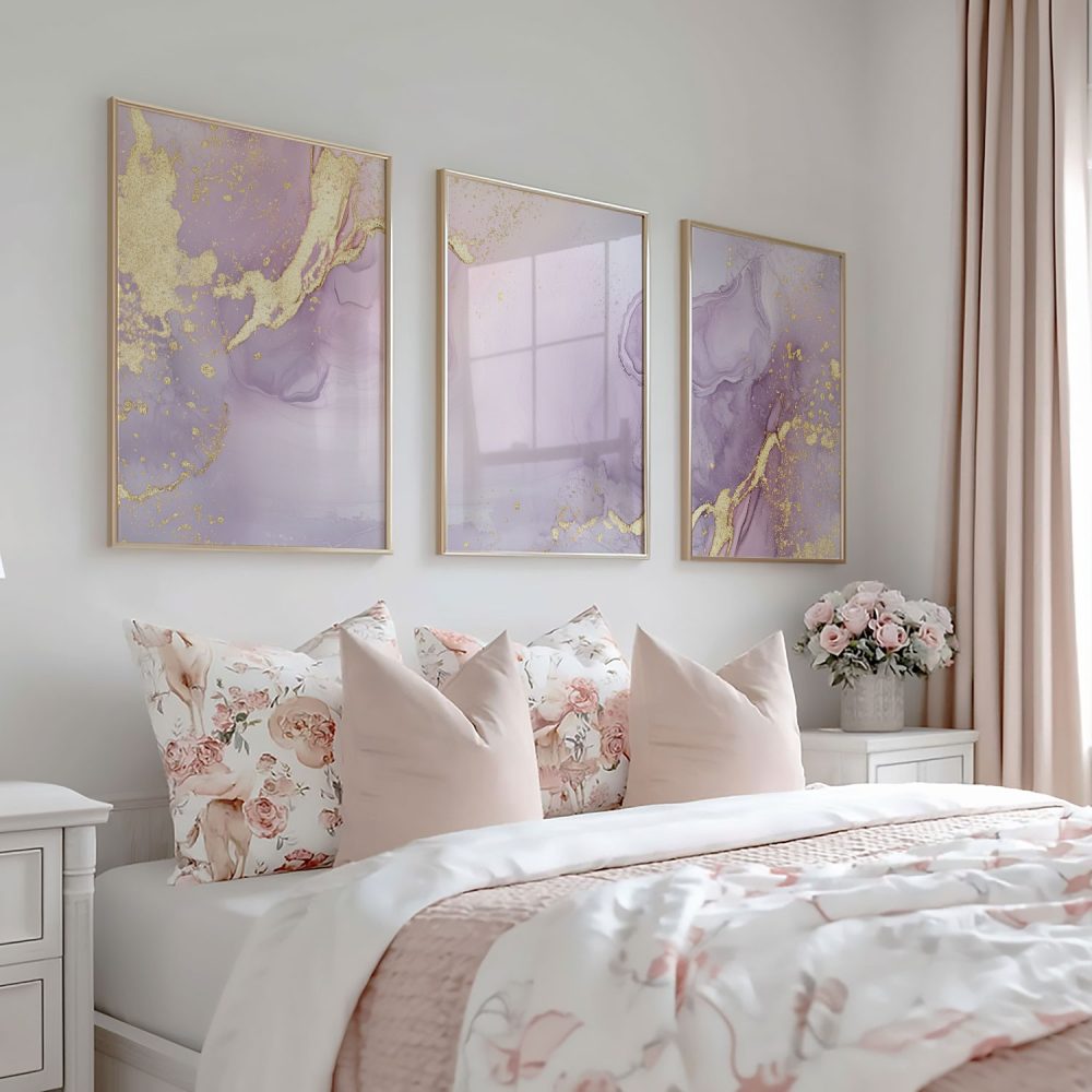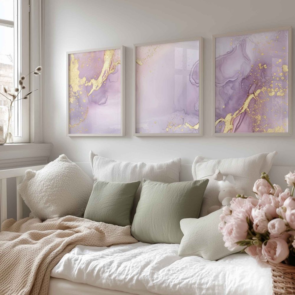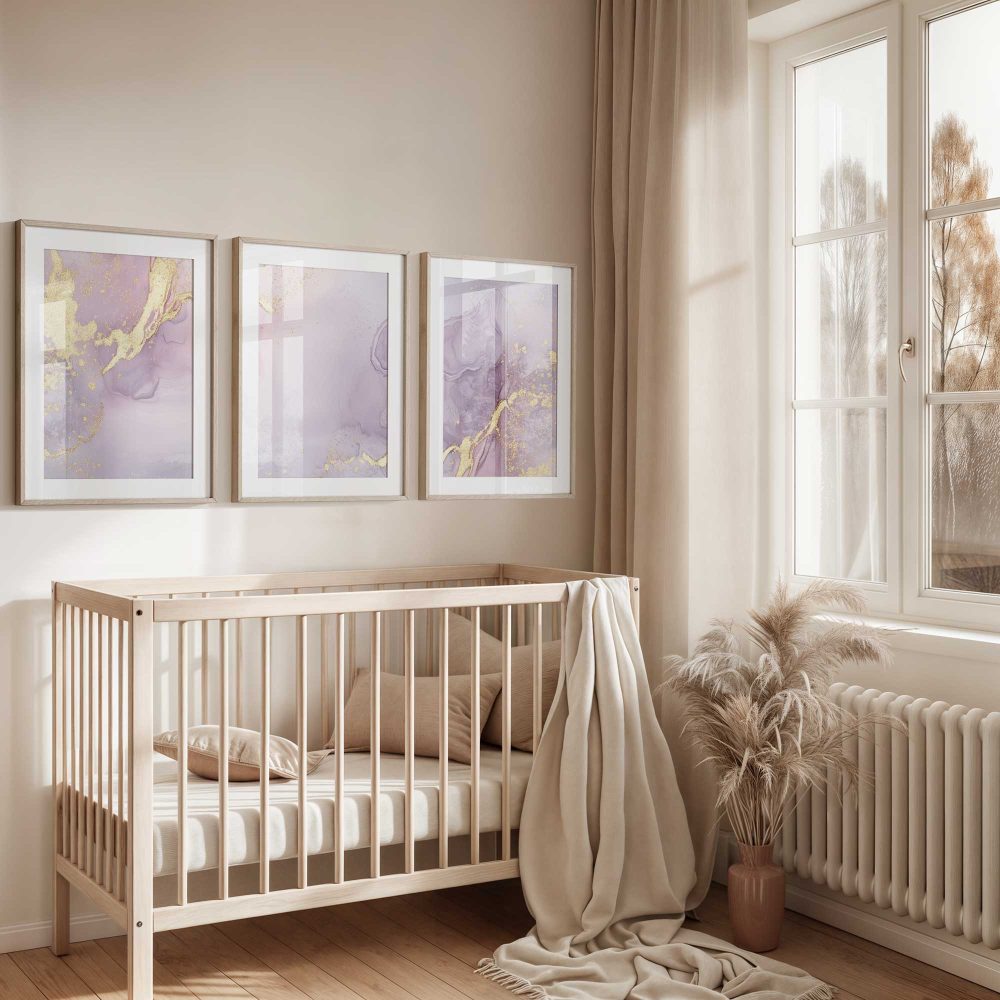 Terug naar collectie / Kinderkamer posters / Purperen Pracht met Gouden Glans – Stijlvolle Abstracte Wanddecoratie