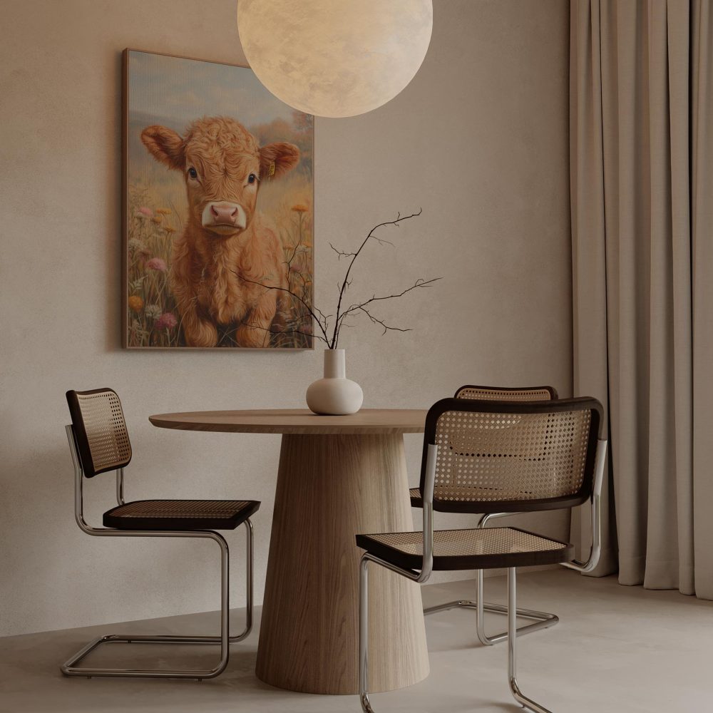 Realistisch bruin koe schilderij