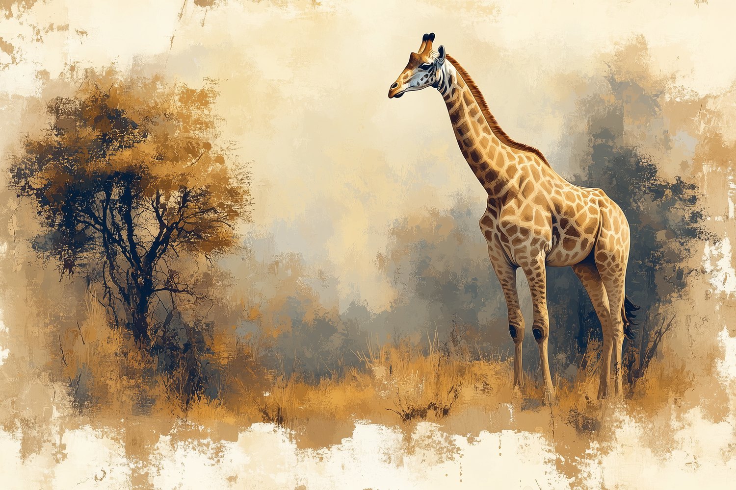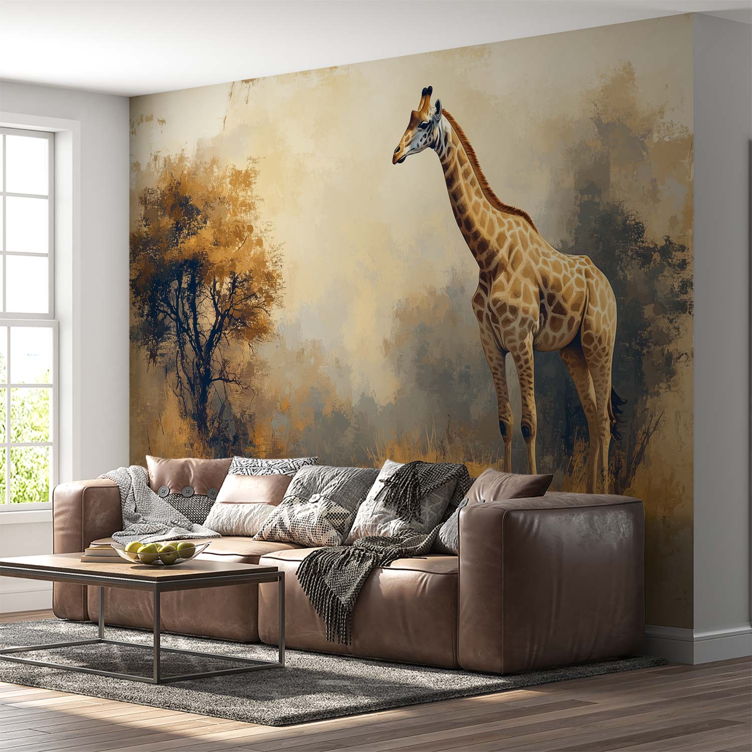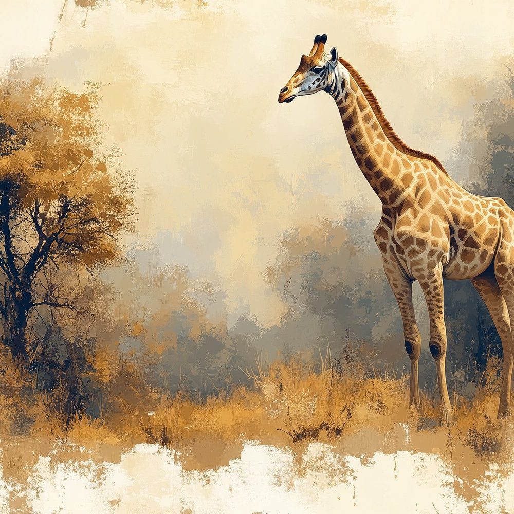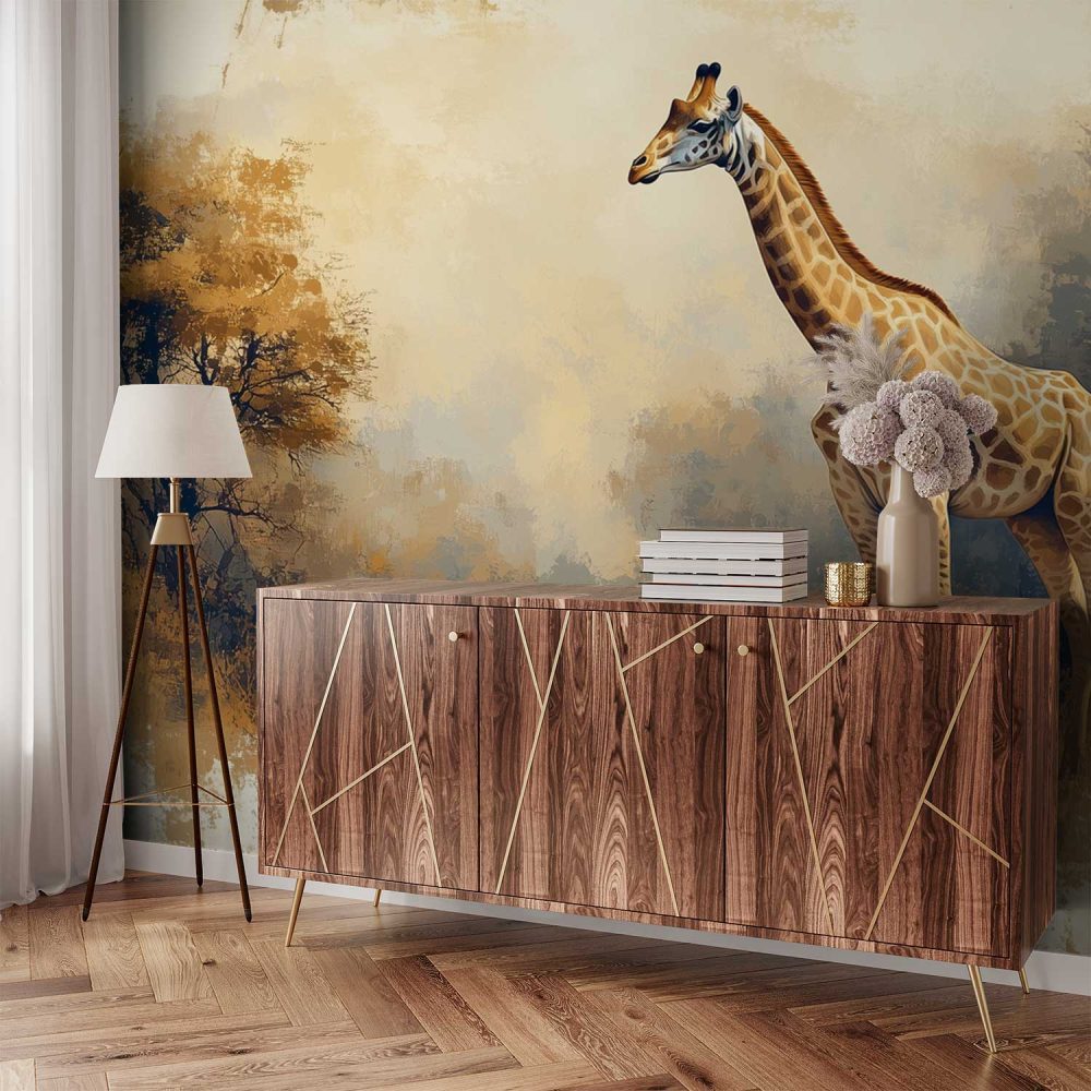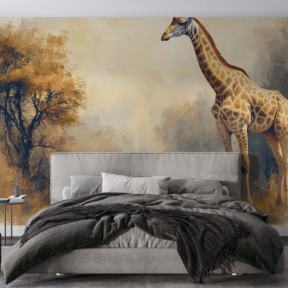 Terug naar collectie / Behang / Realistisch giraf landschapsschilderij behang