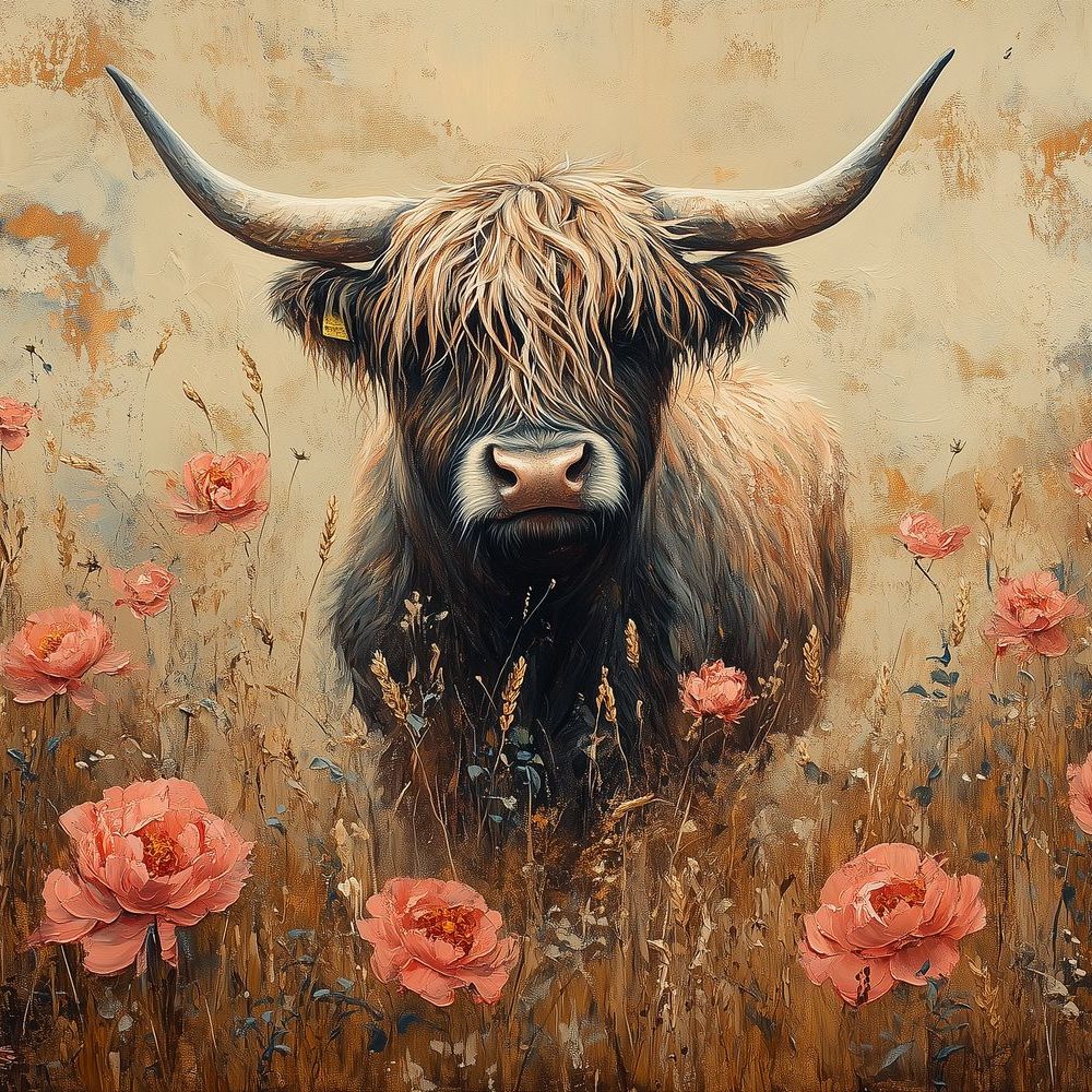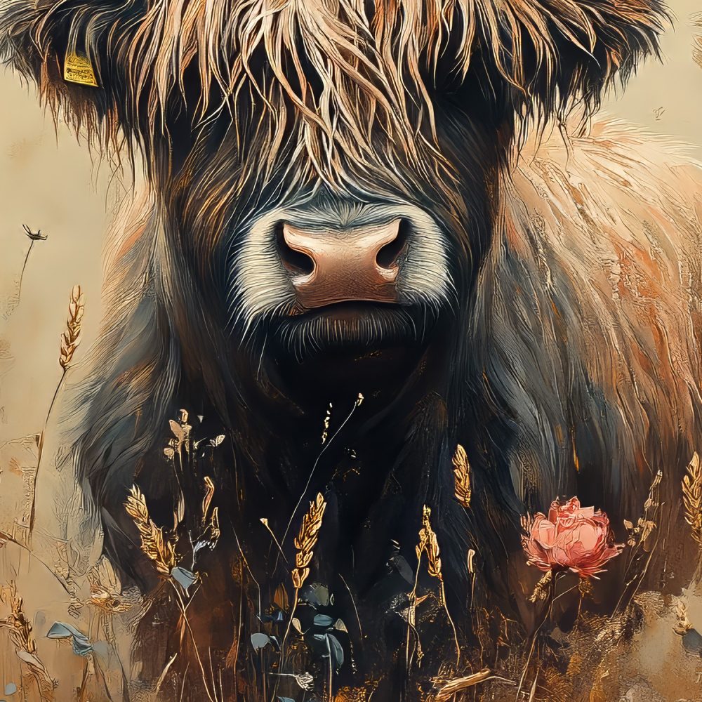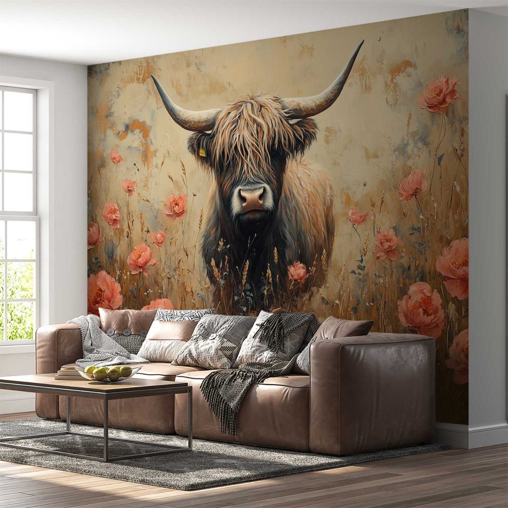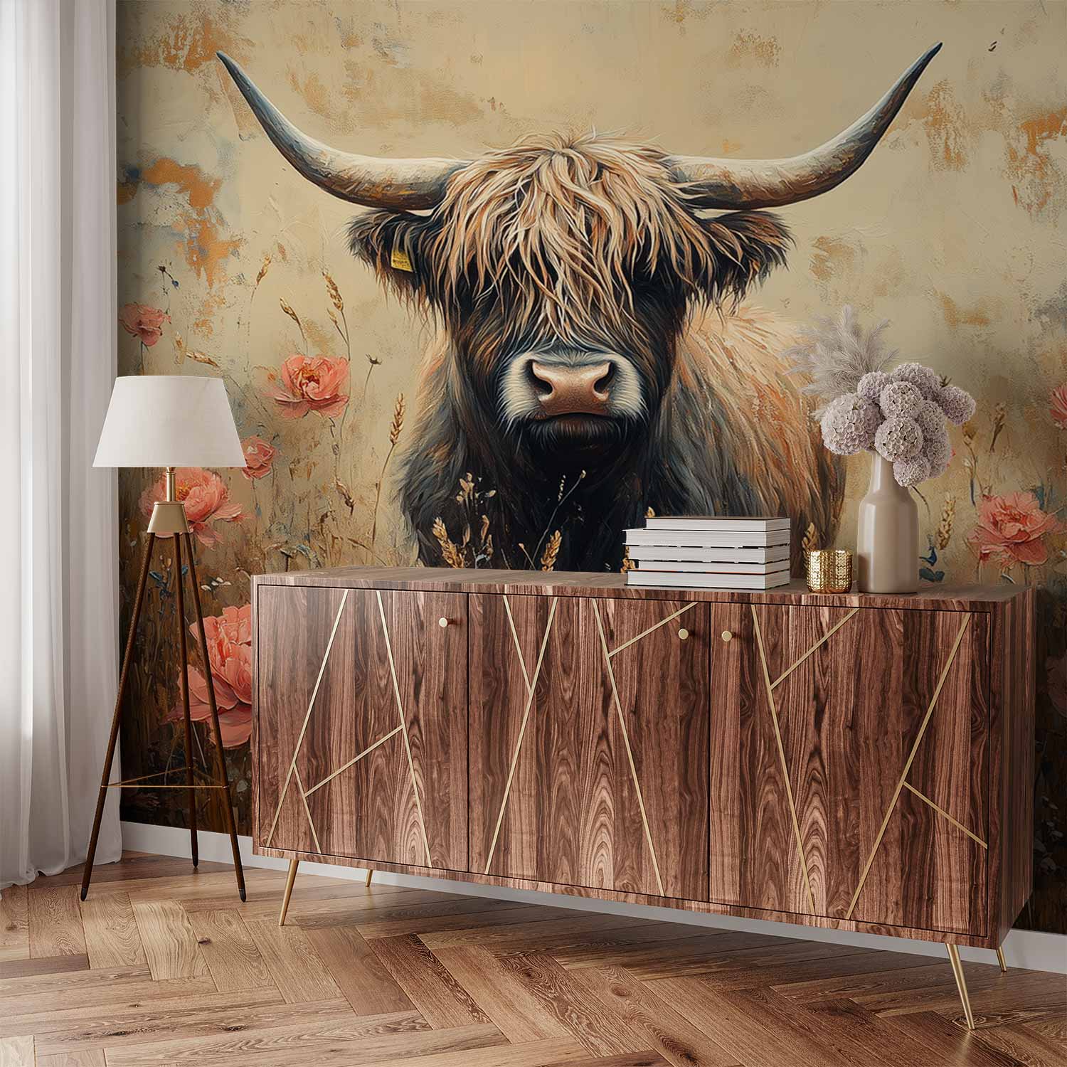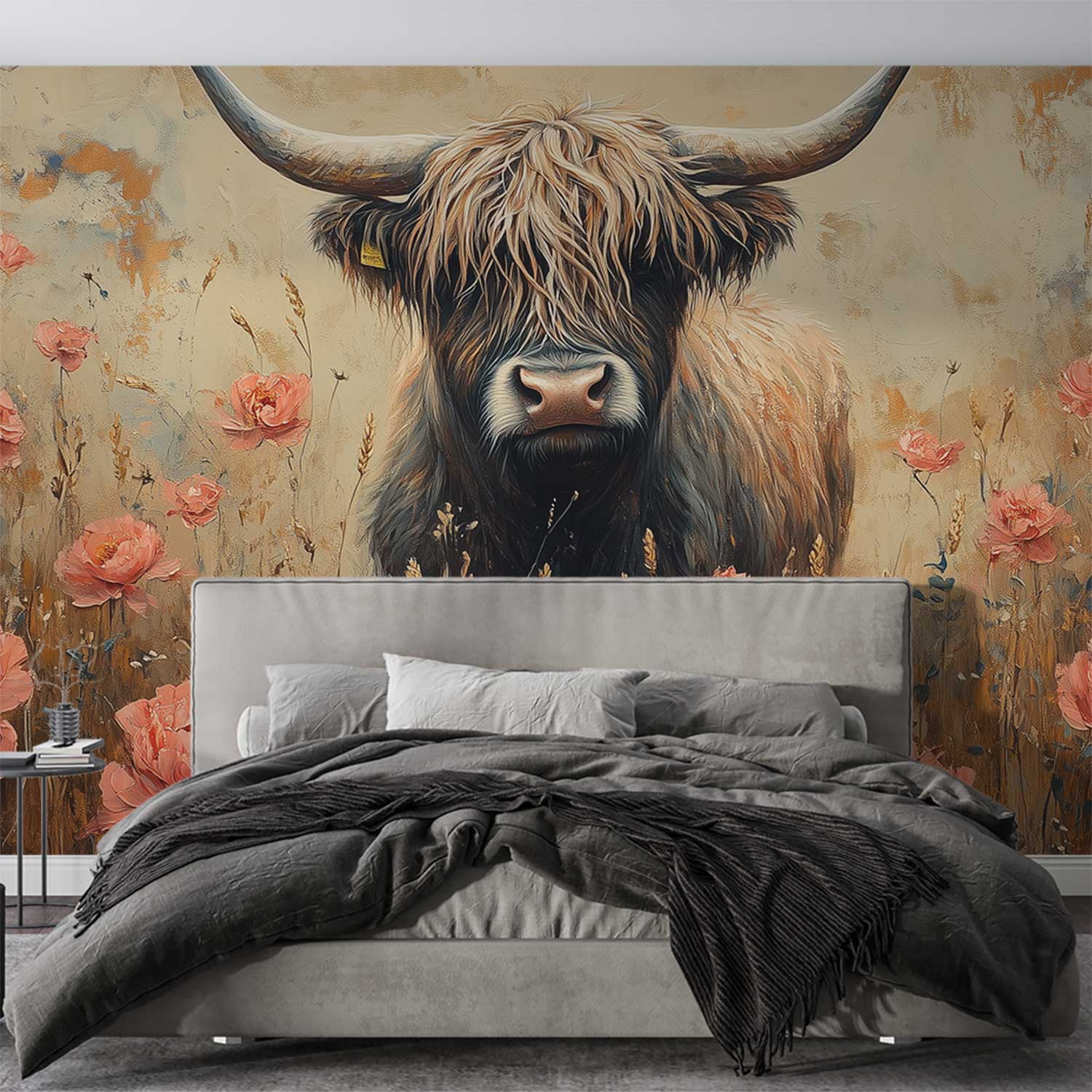 Terug naar collectie / Behang / Realistisch koeienbloemenveld schilderij behang