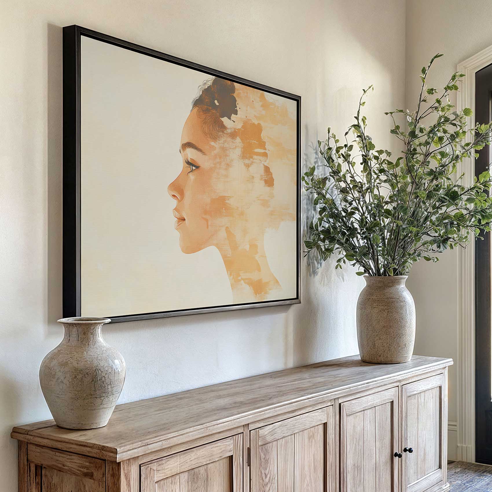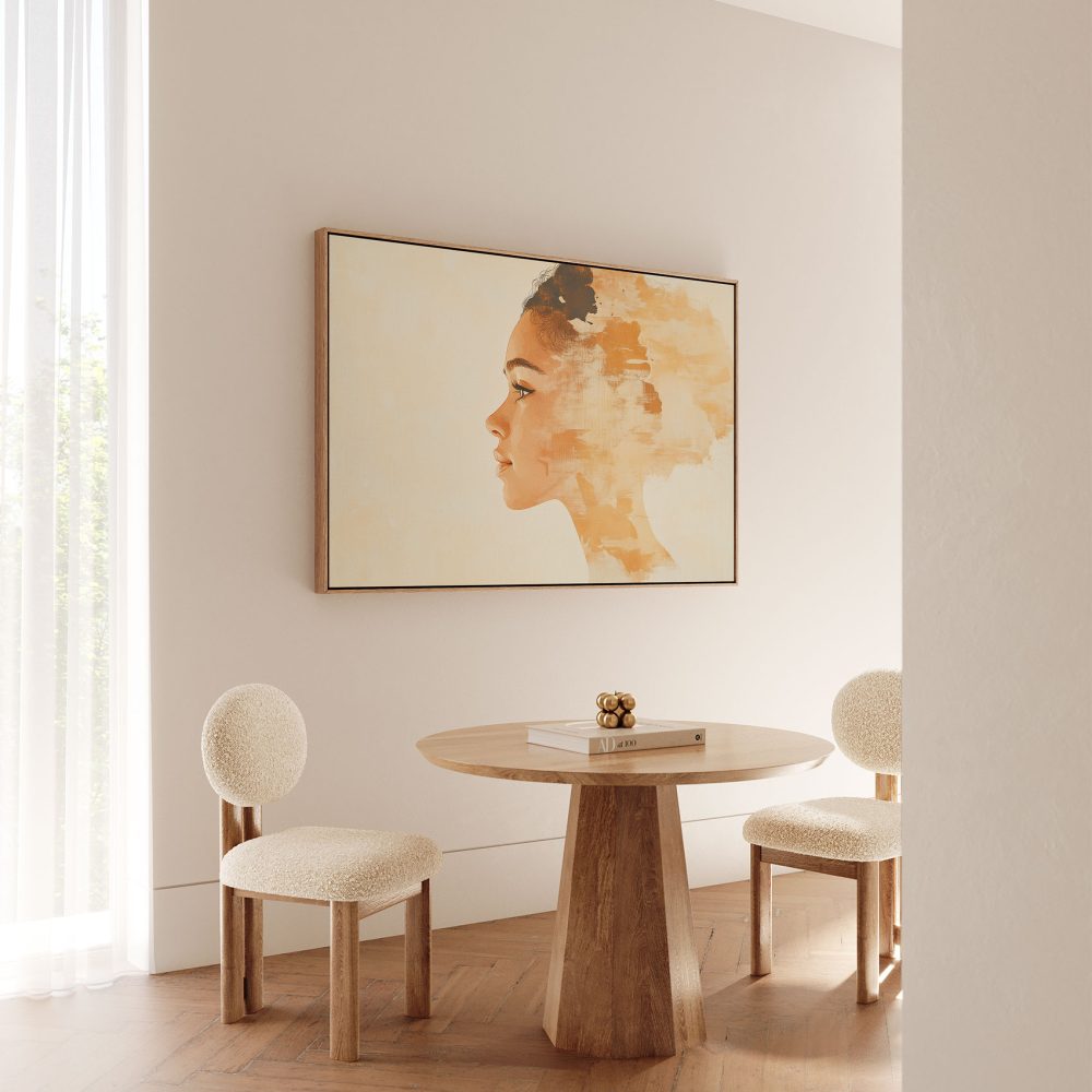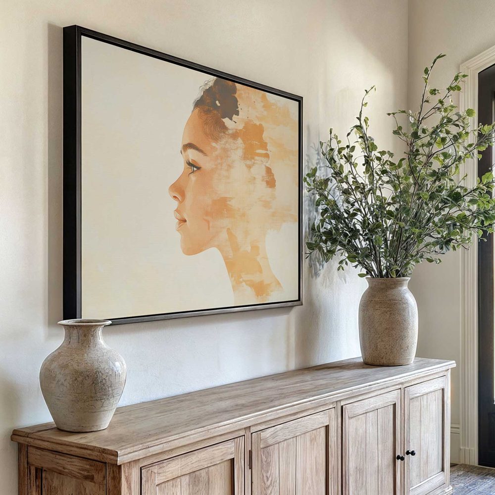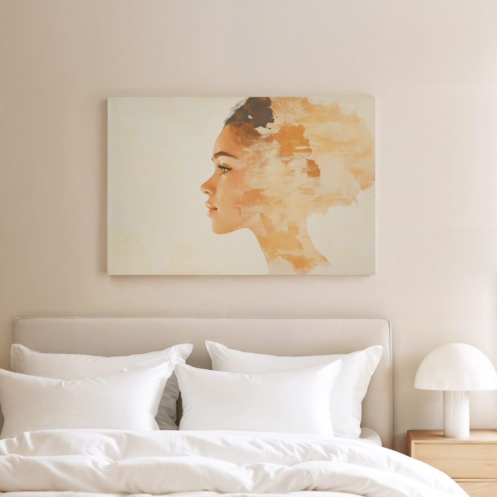 Terug naar collectie / Schilderijen / Figuren en Vormen Schilderij / Realistisch oranje vrouwenportret