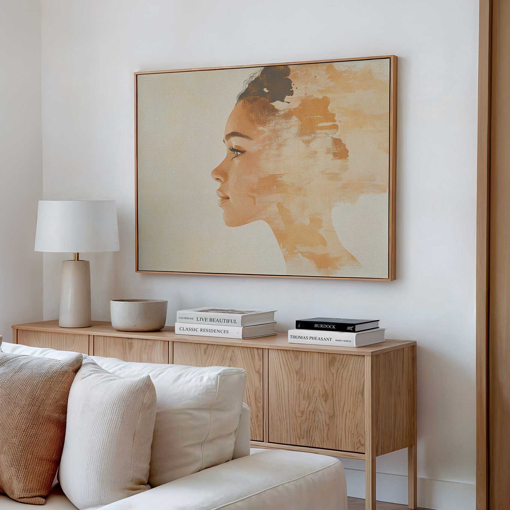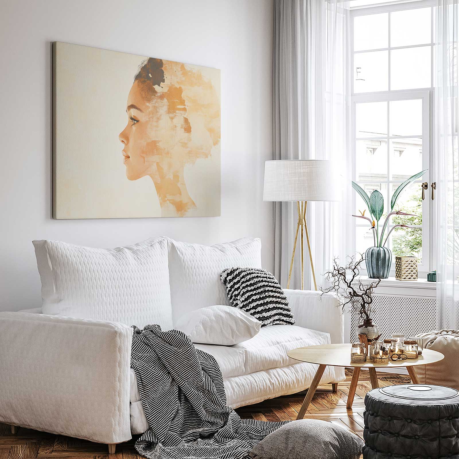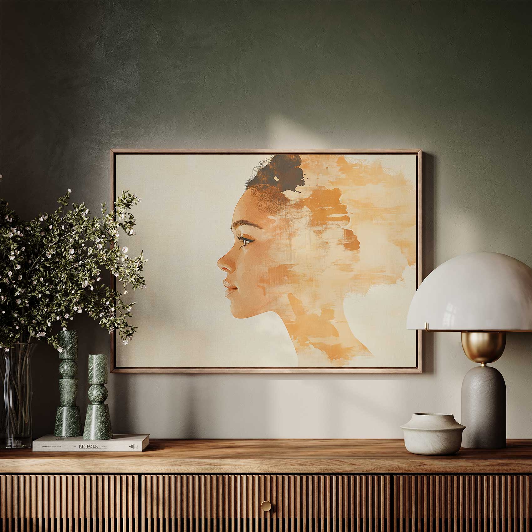 Terug naar collectie / Schilderijen / Figuren en Vormen Schilderij / Realistisch oranje vrouwenportret