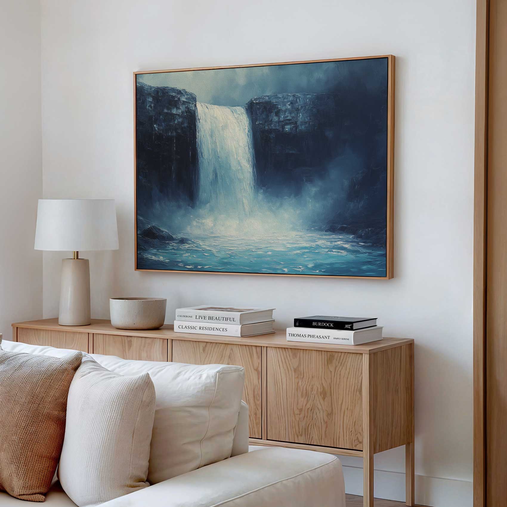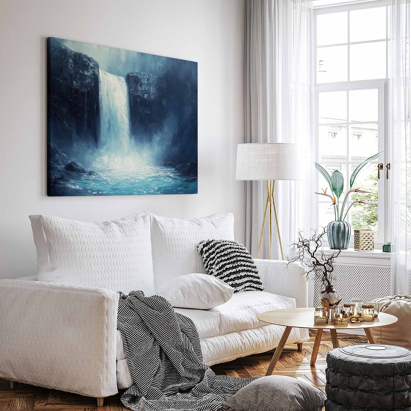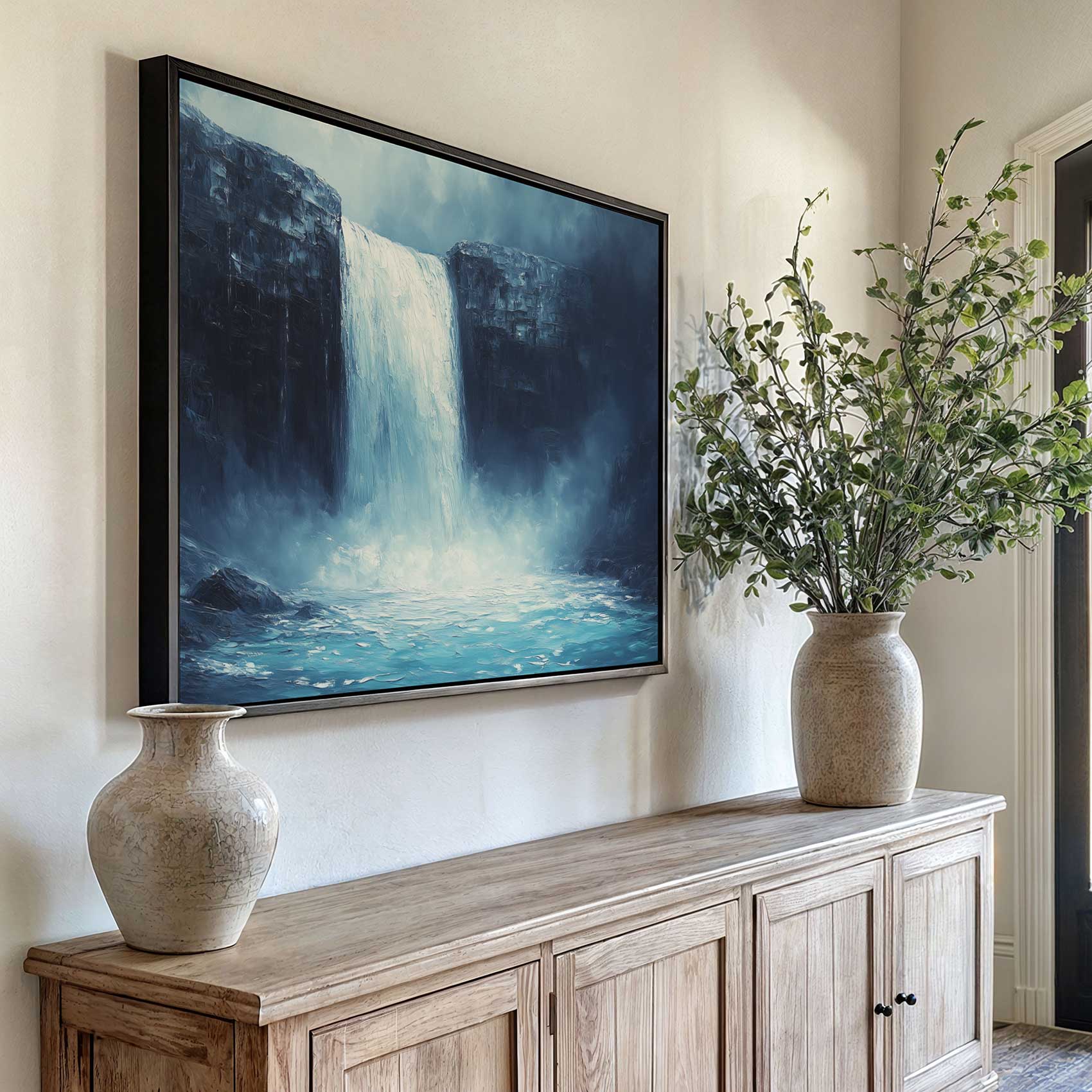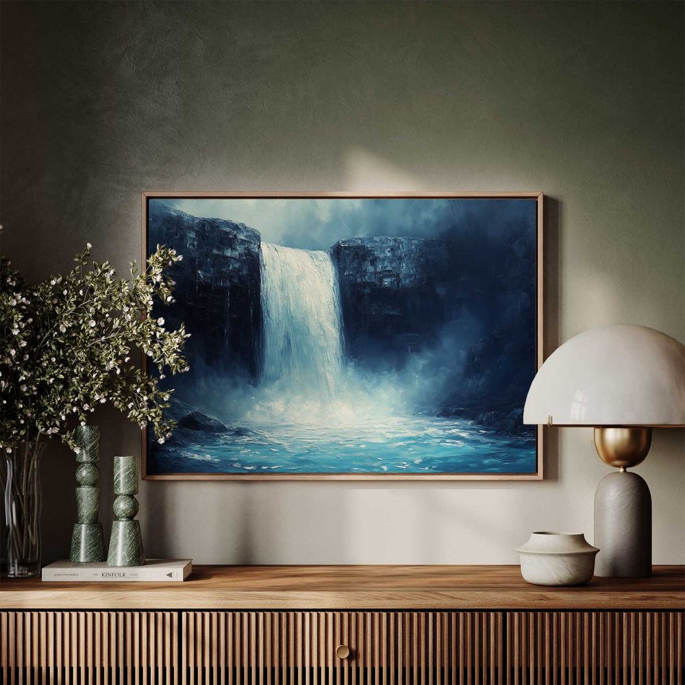Terug naar collectie / Schilderijen / Bergen Schilderij / Realistisch waterval landschapsschilderij