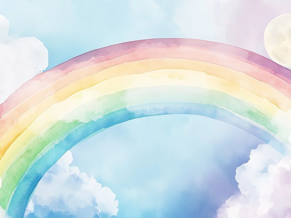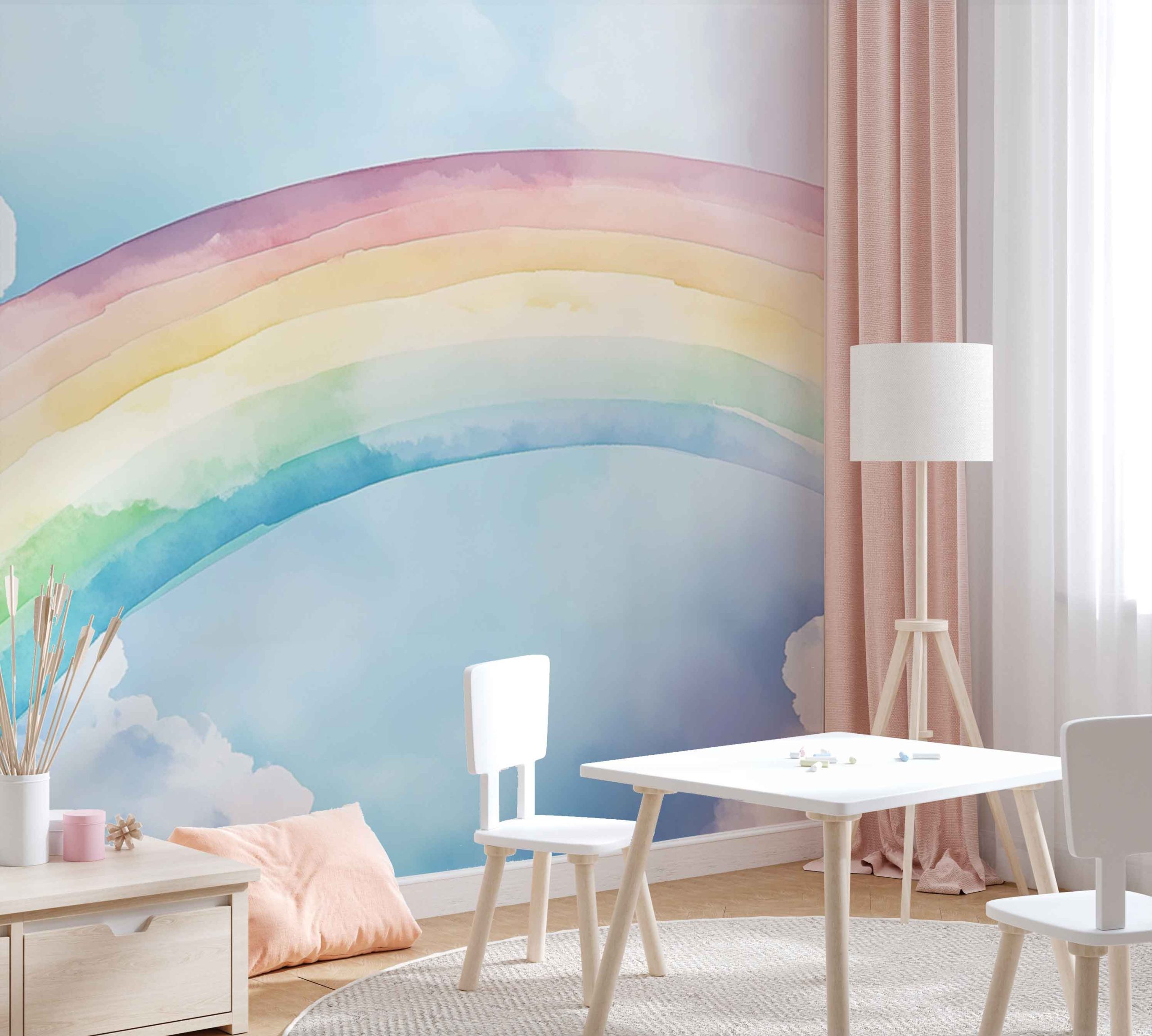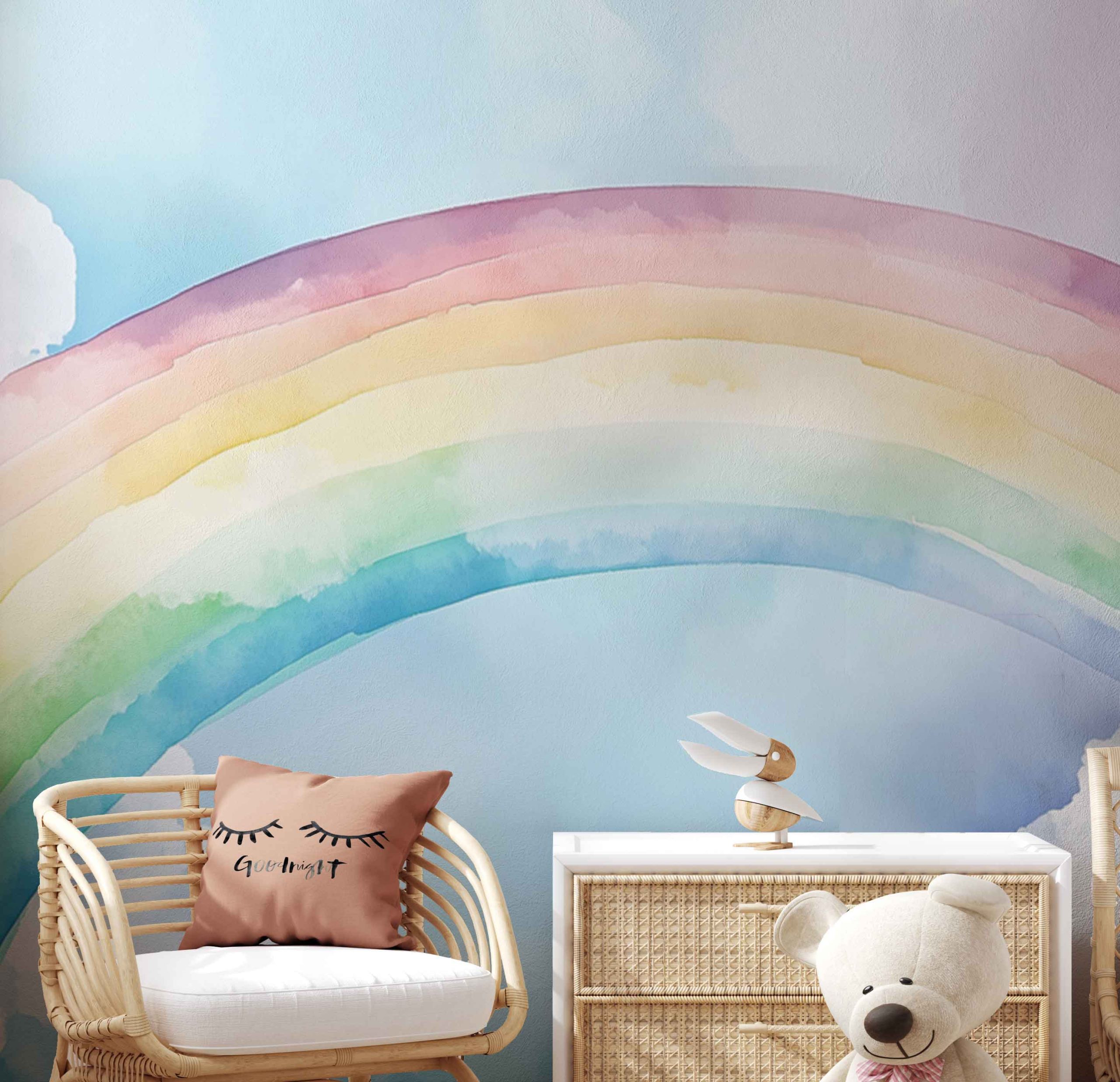Terug naar collectie / Behang / Kinderkamer behang / Babykamer behang / Regenboog in dromerige lucht behang