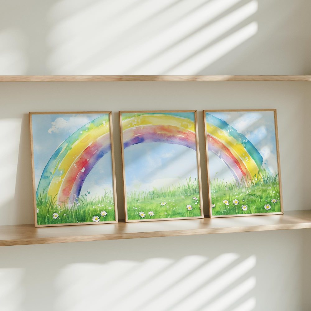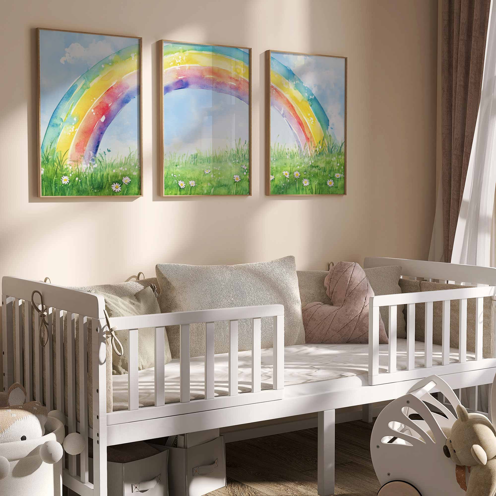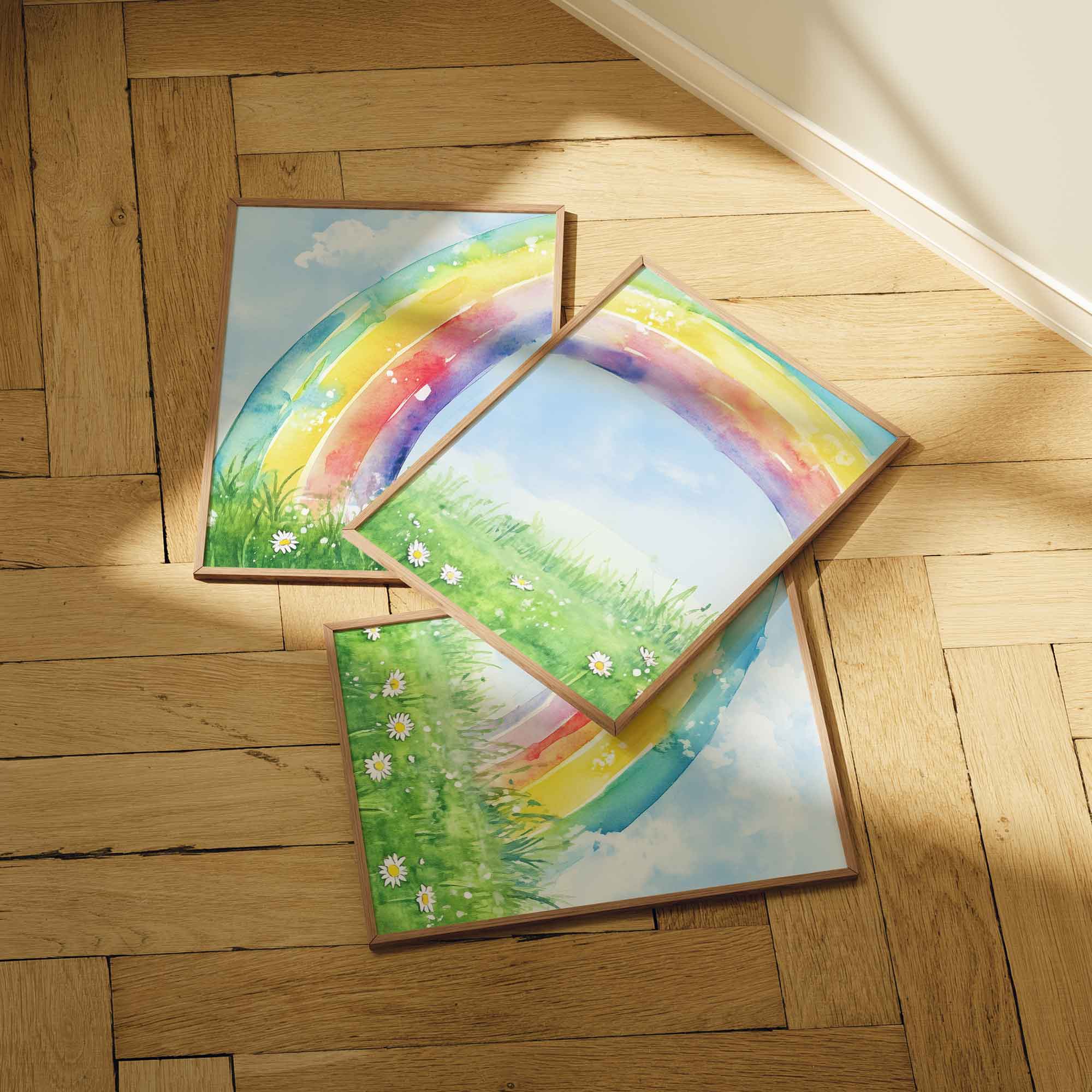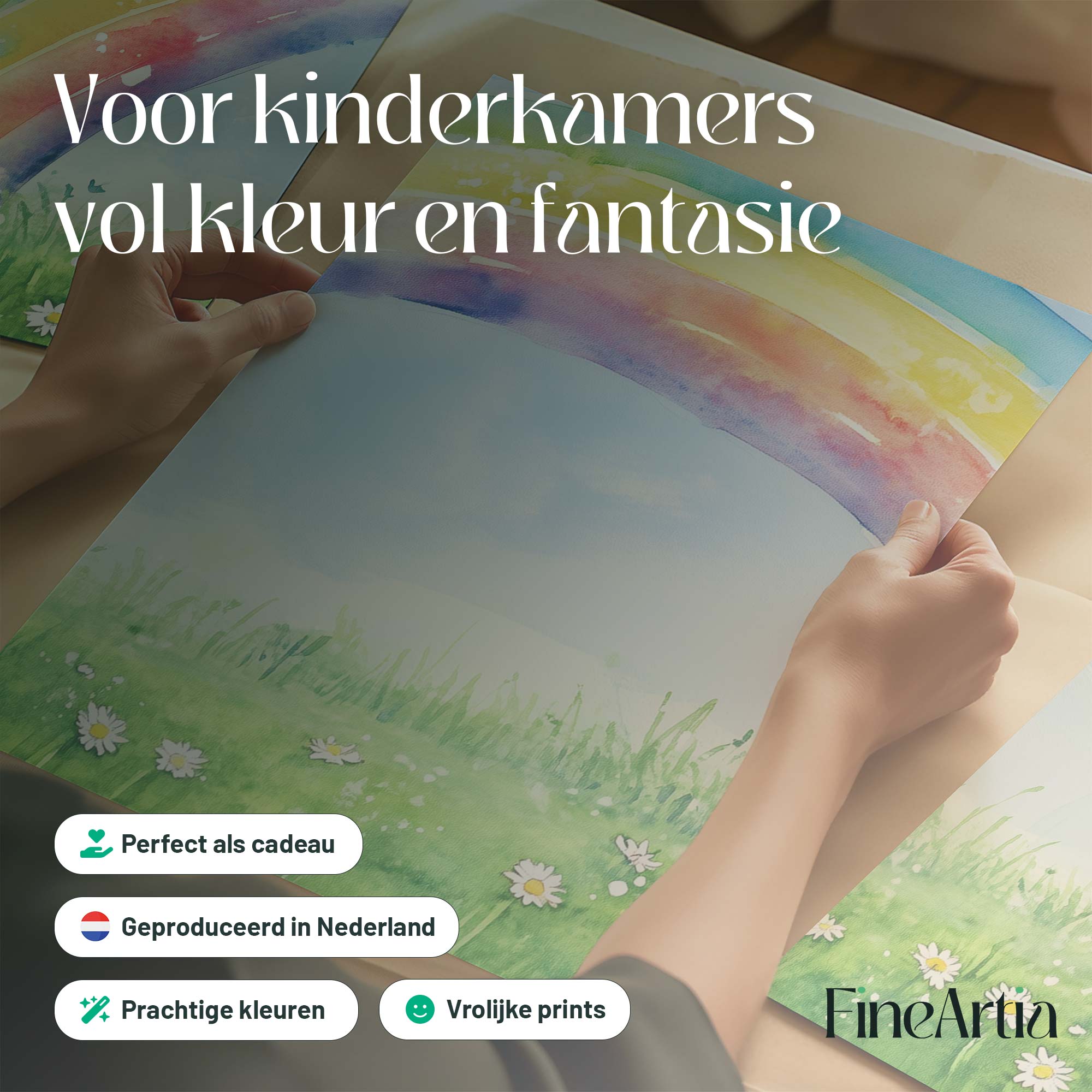 Terug naar collectie / Kinderkamer posters / Bloemen posters / Regenboogdroom boven bloemrijk veld