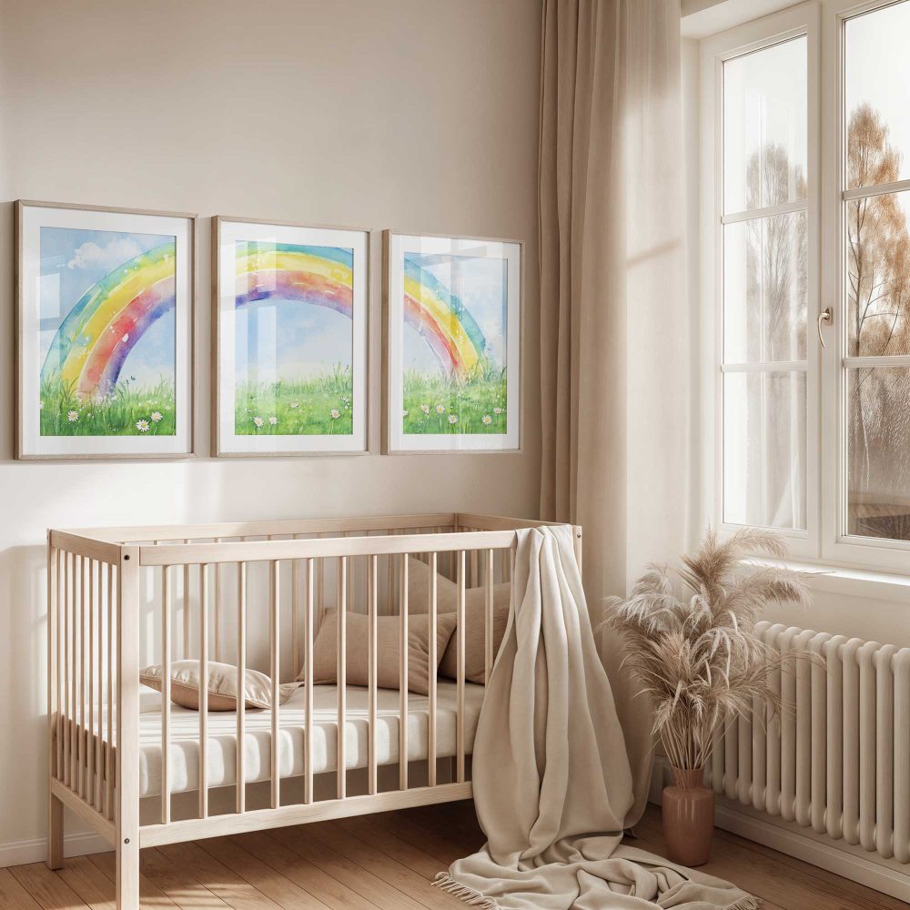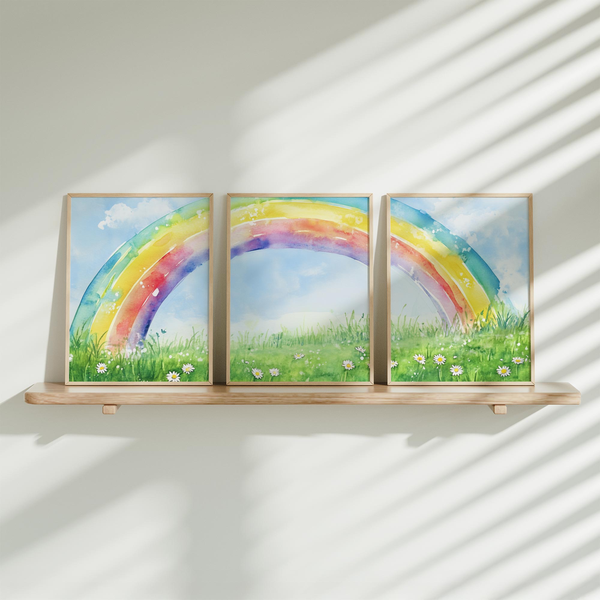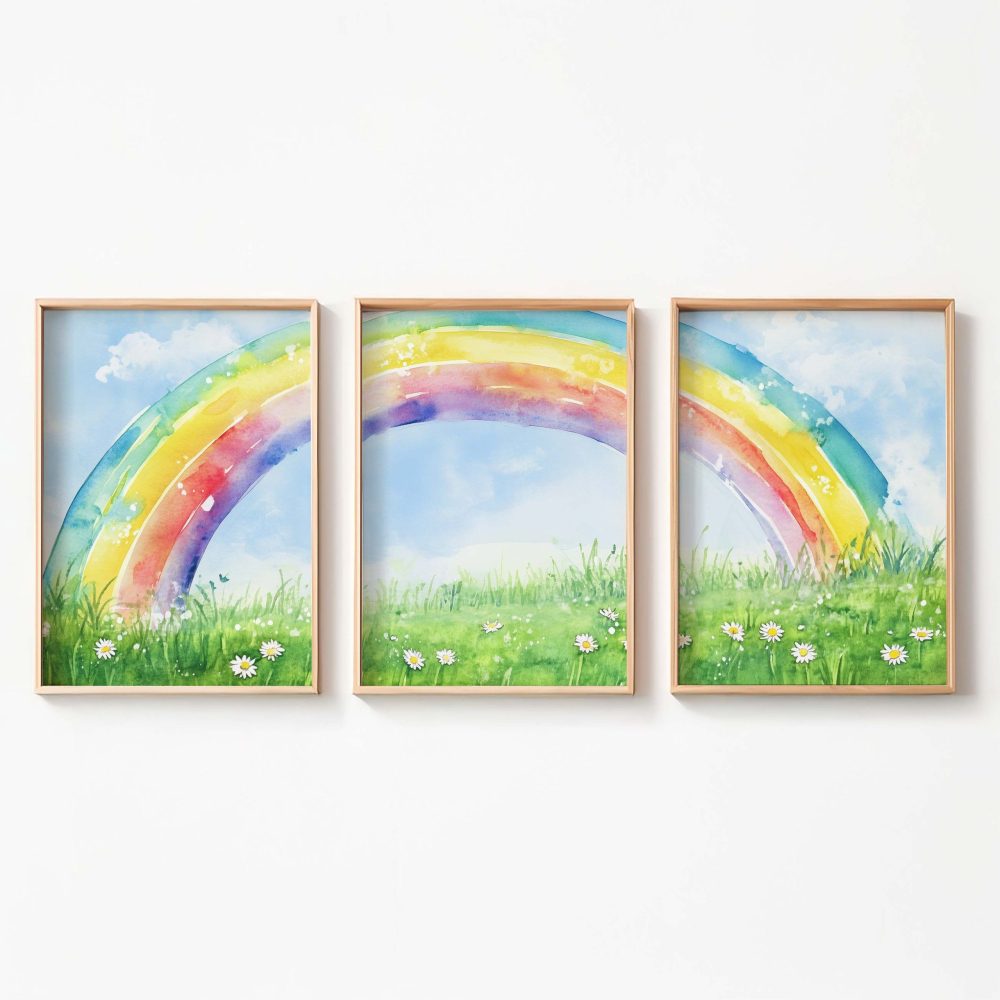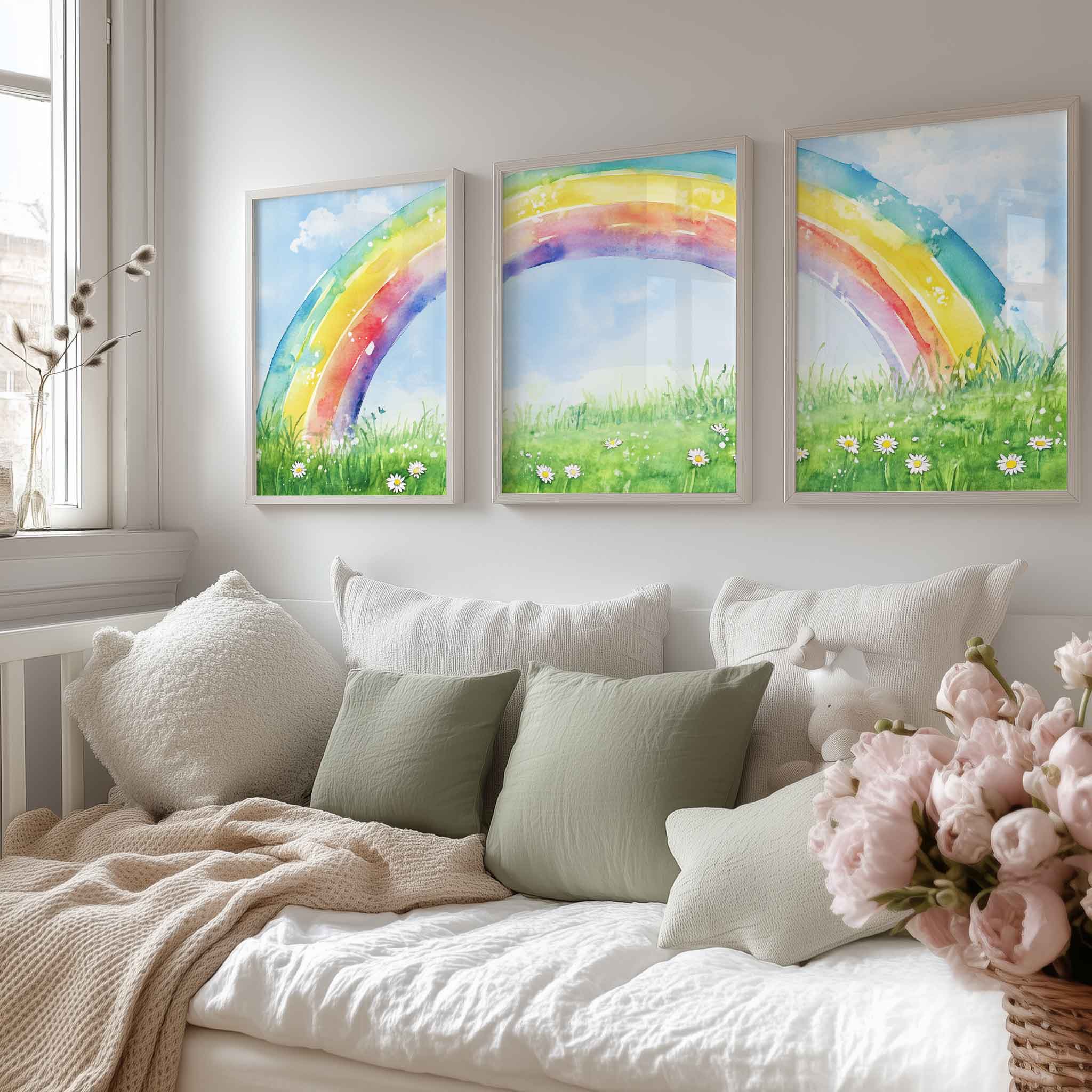 Terug naar collectie / Kinderkamer posters / Bloemen posters / Regenboogdroom boven bloemrijk veld