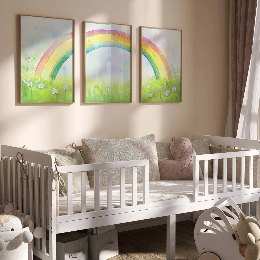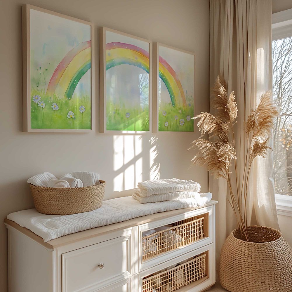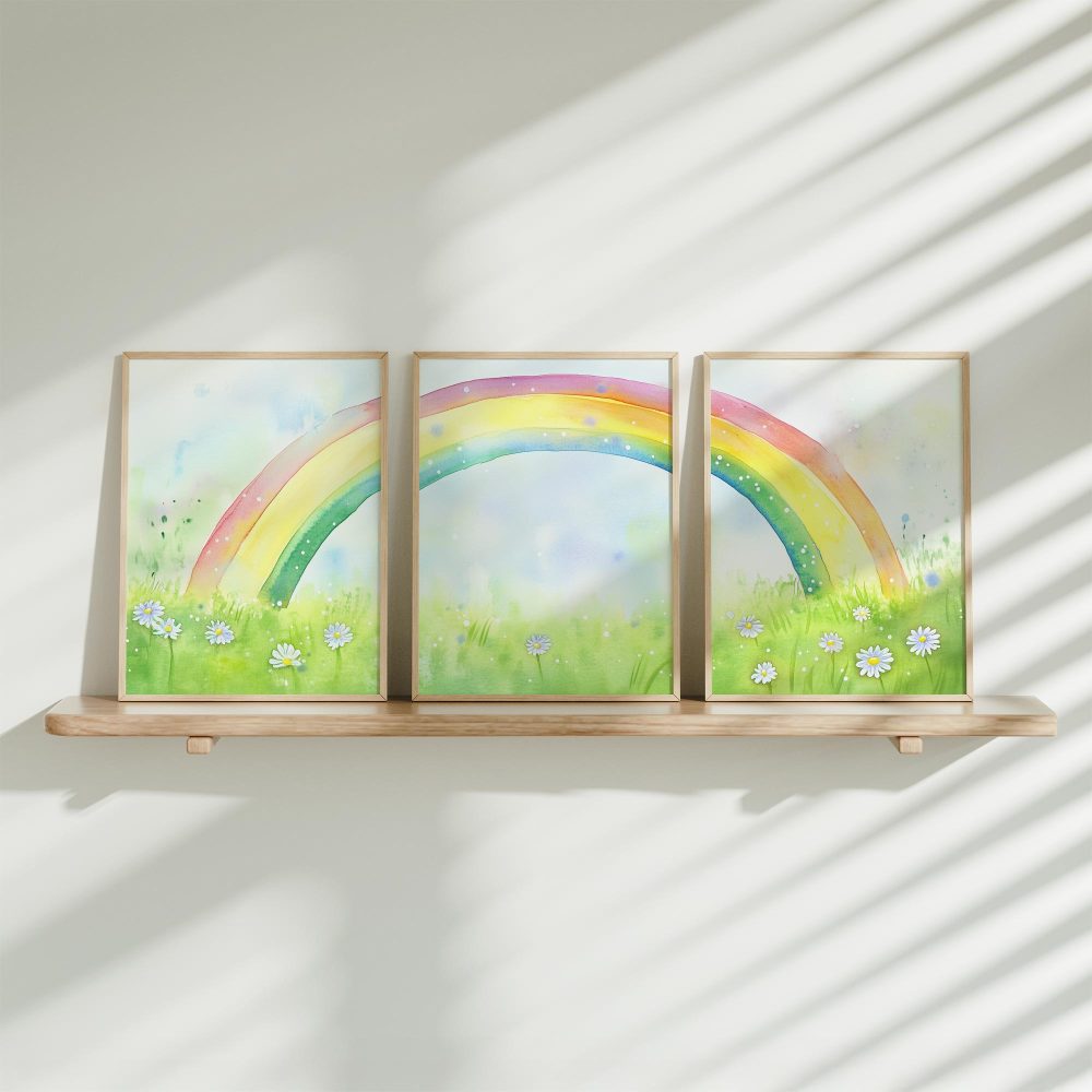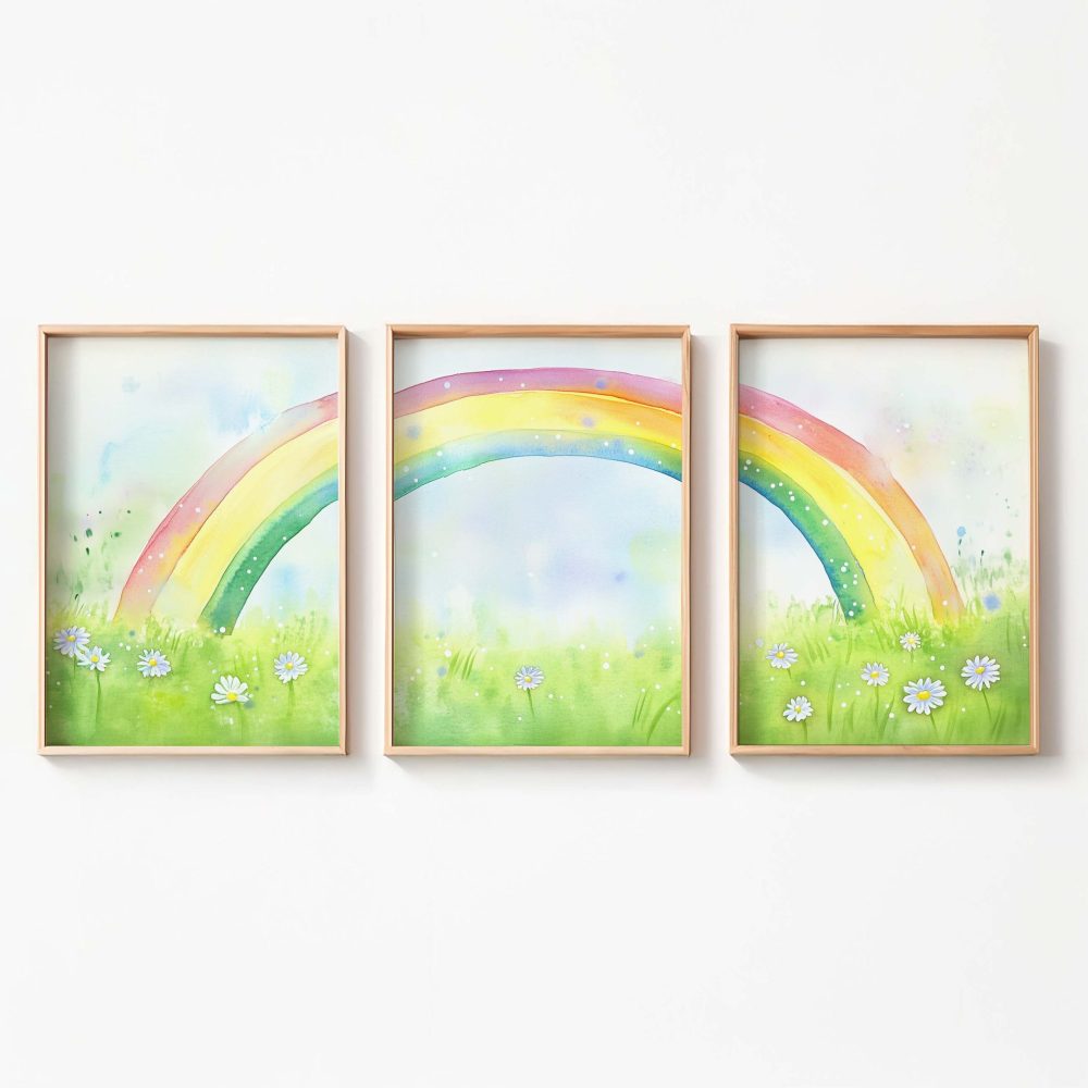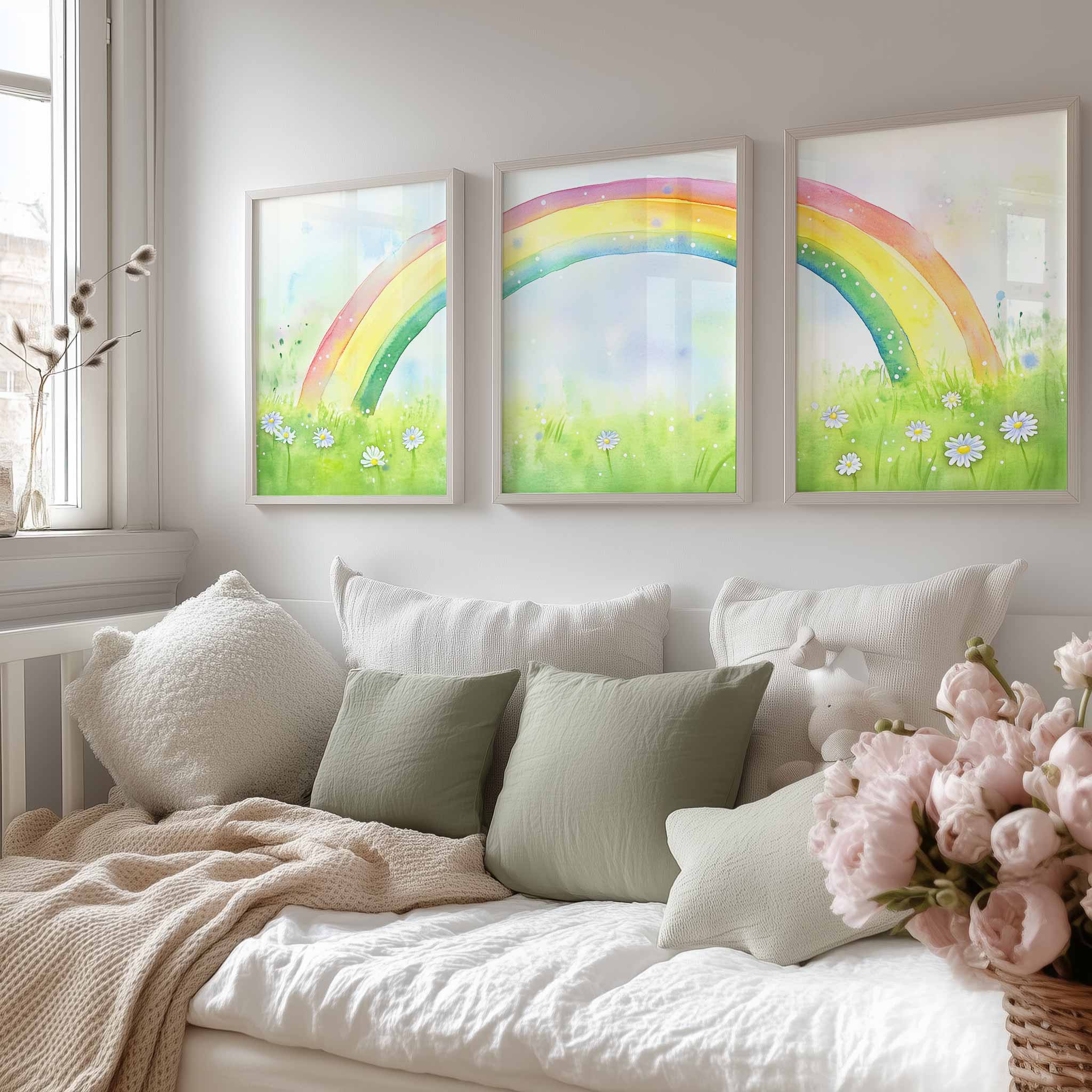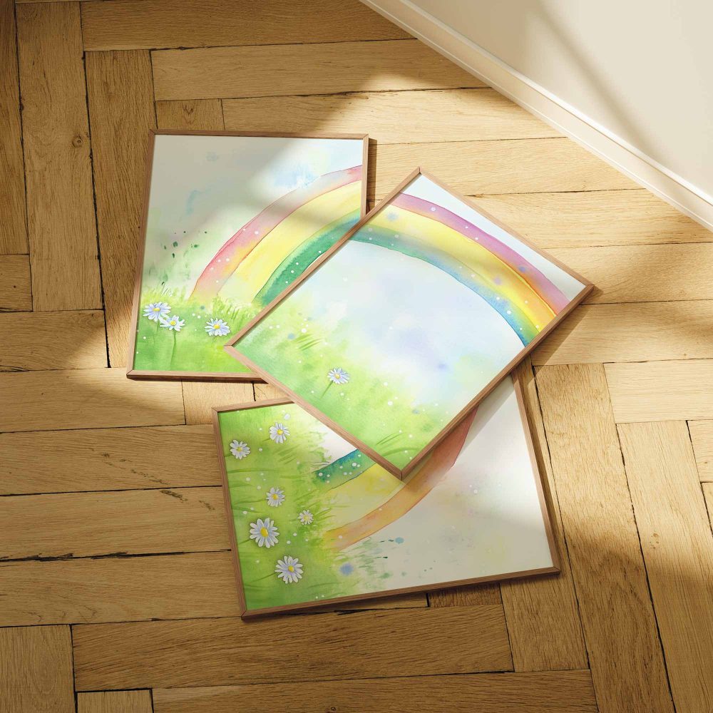 Terug naar collectie / Kinderkamer posters / Bloemen posters / Regenboogvreugde: Vrolijk waterverfveld met madeliefjes