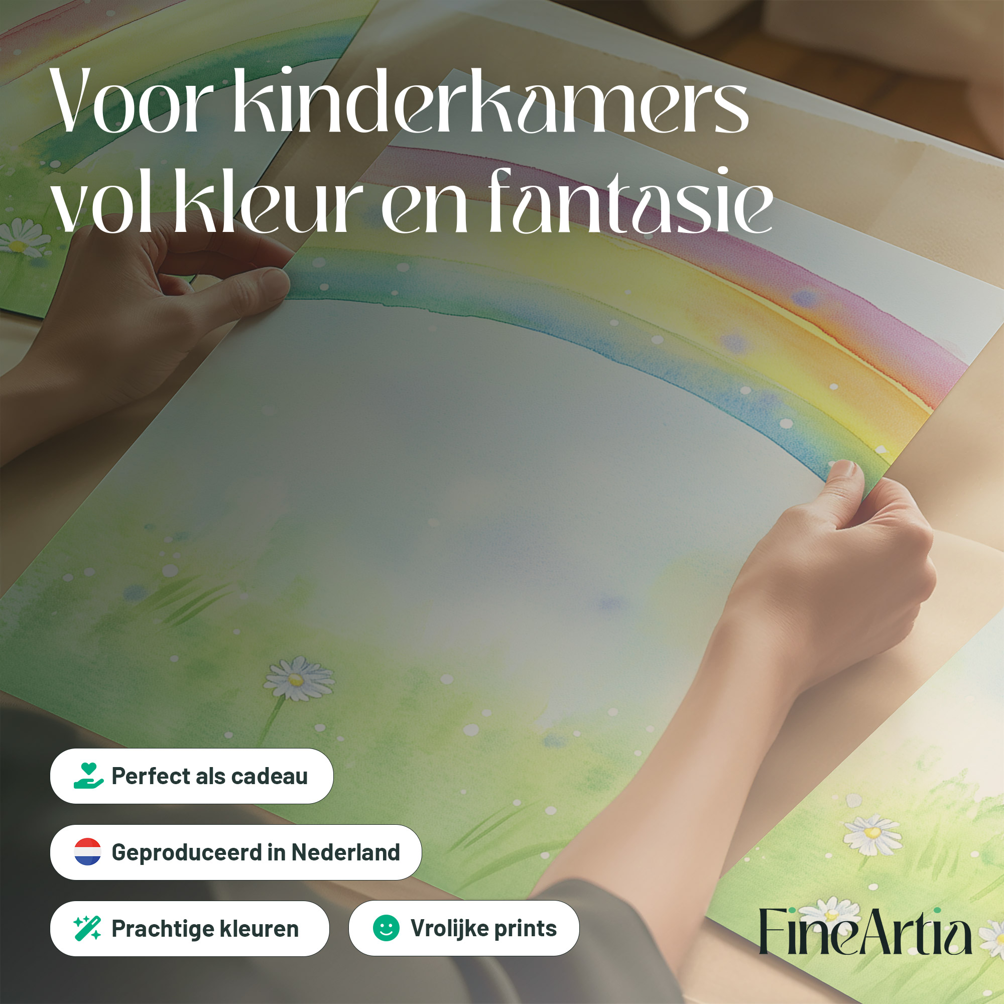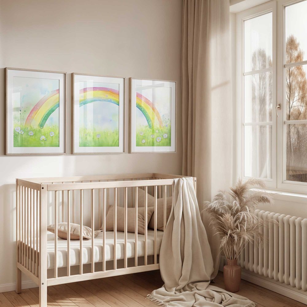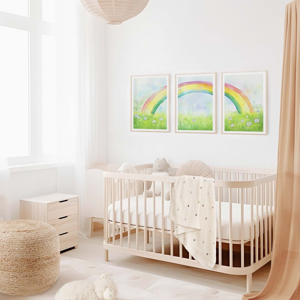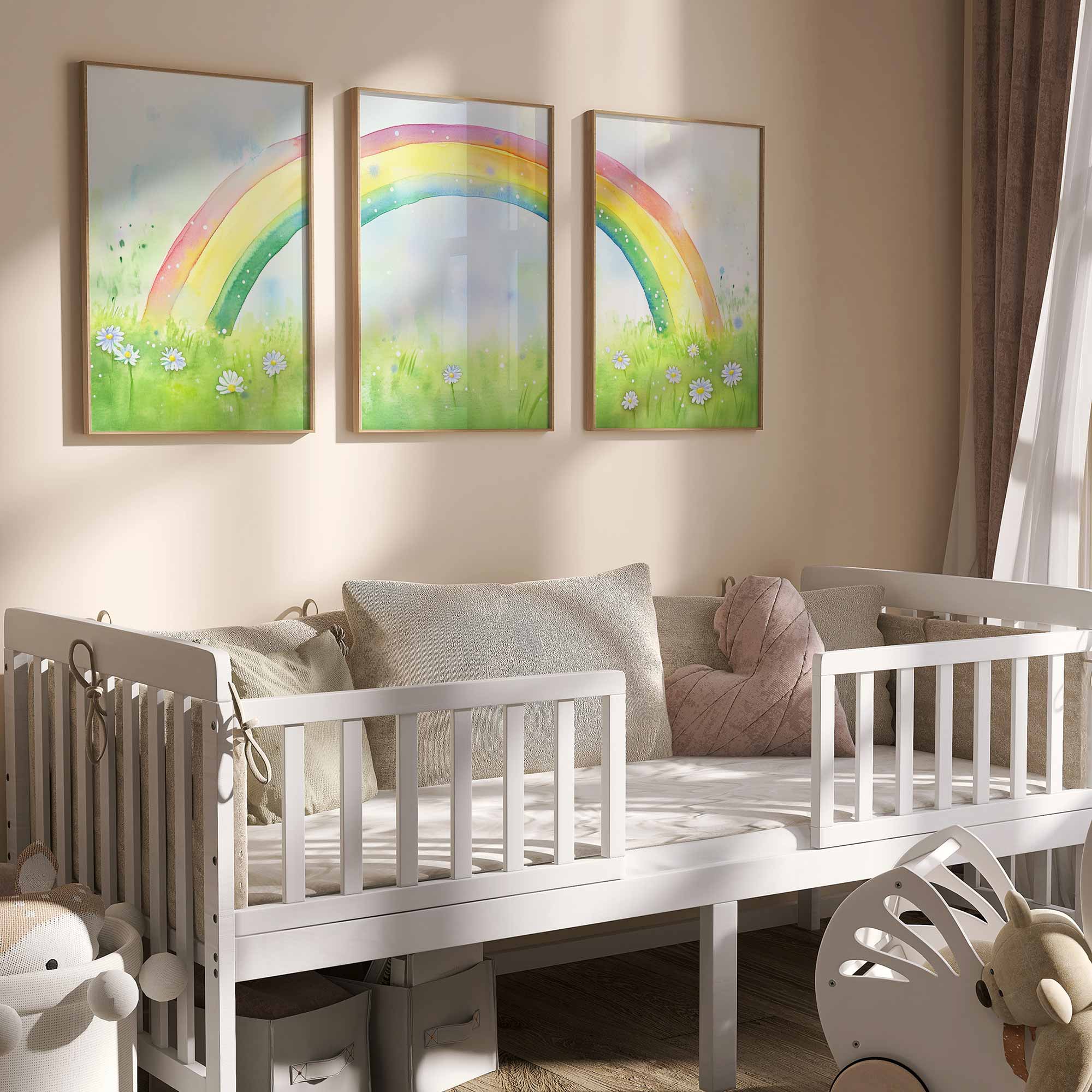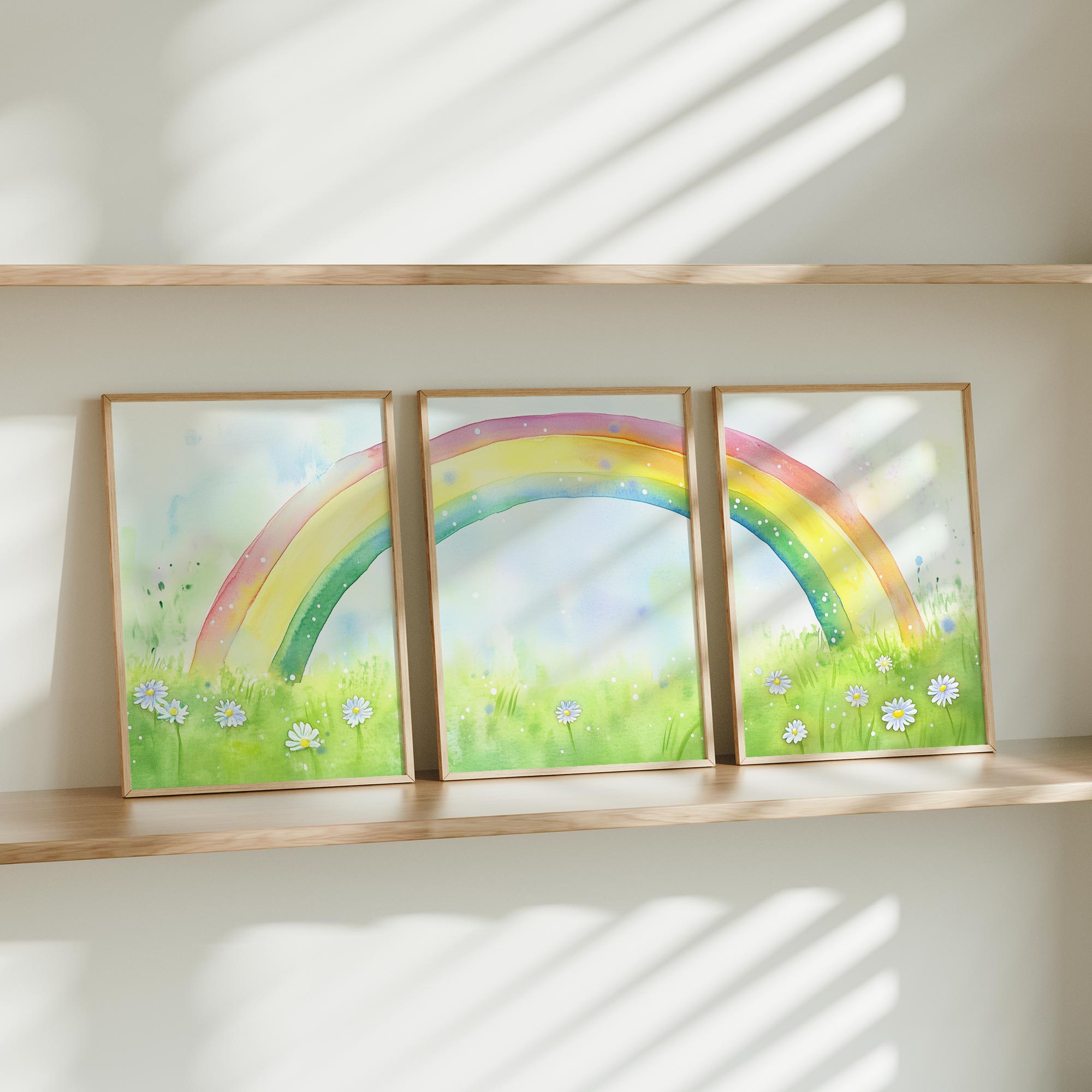 Terug naar collectie / Kinderkamer posters / Bloemen posters / Regenboogvreugde: Vrolijk waterverfveld met madeliefjes