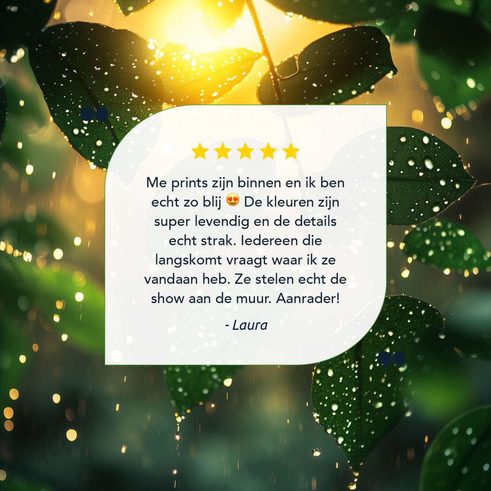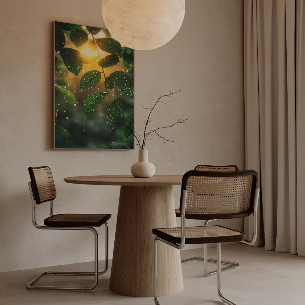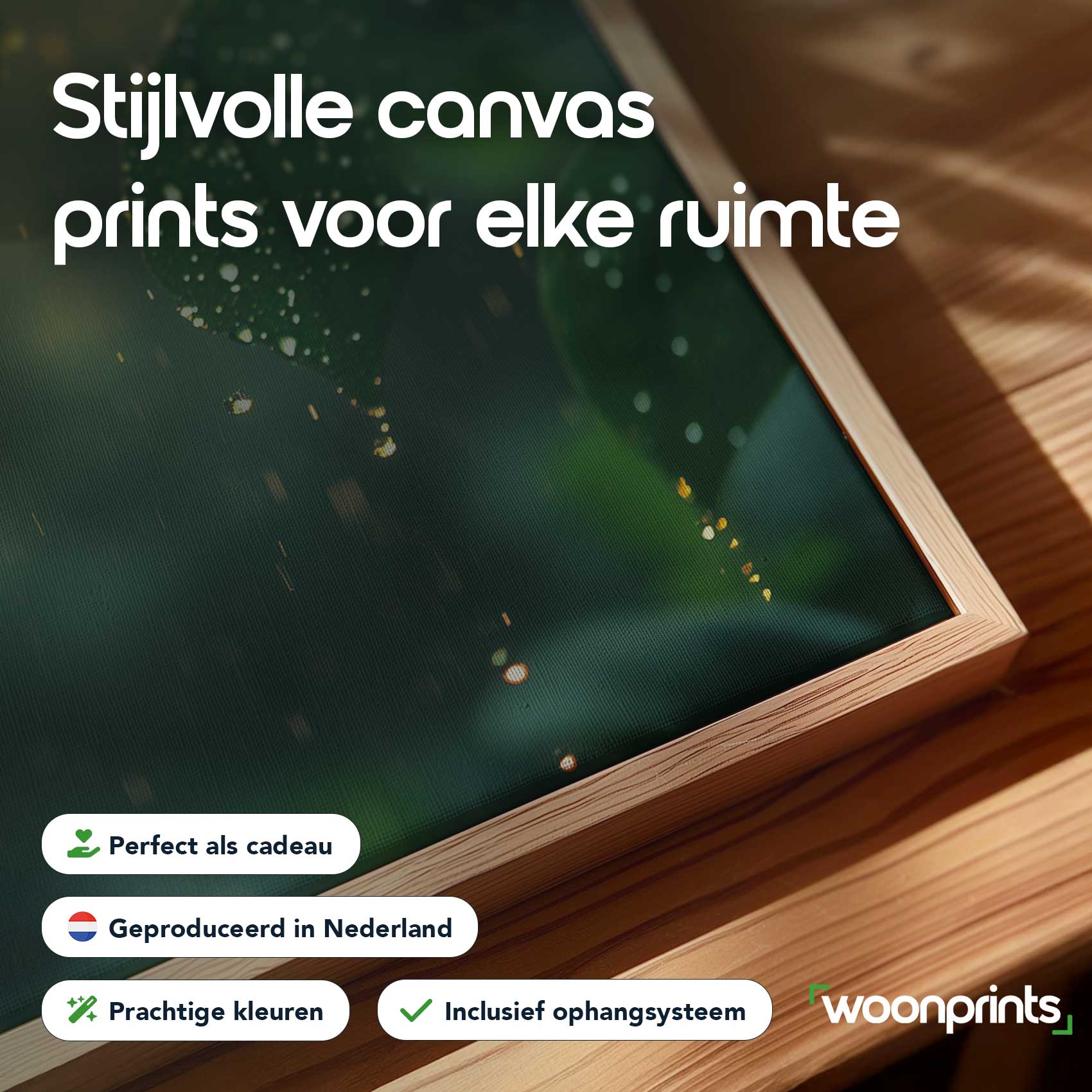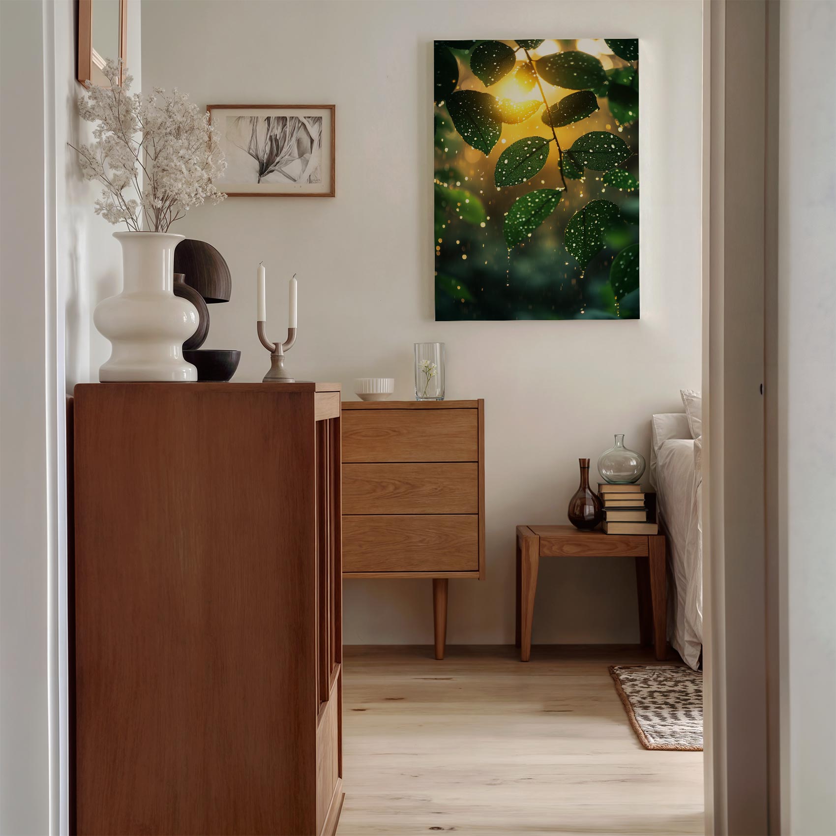 Terug naar collectie / Schilderijen / Bloemen Schilderij / Regendruppels op Zonverlichte Bladeren