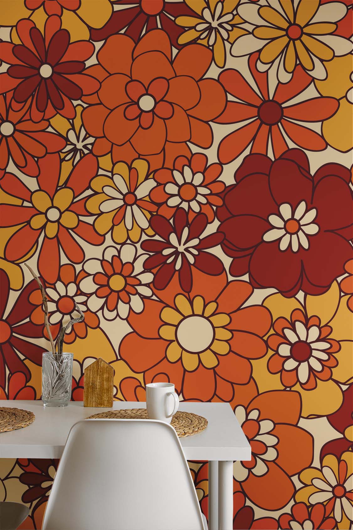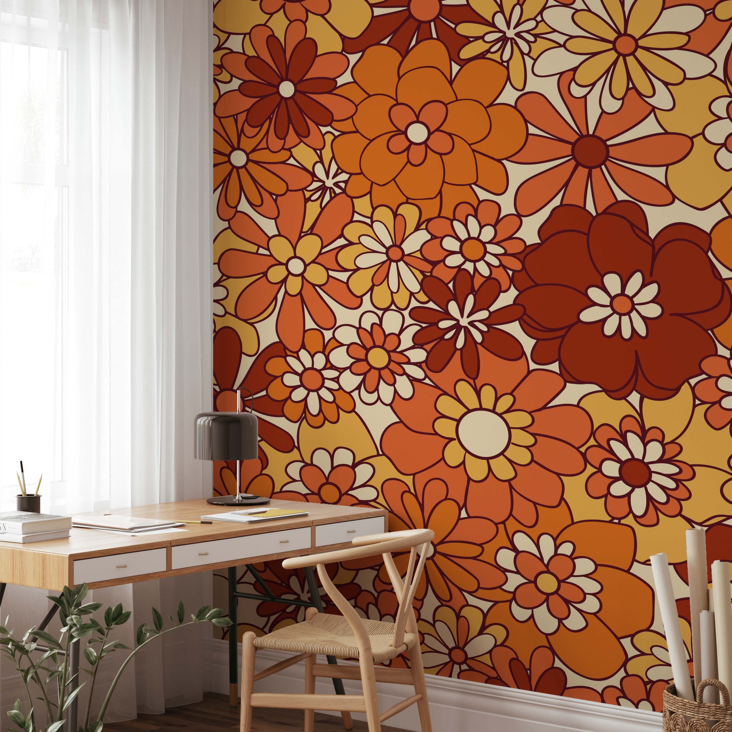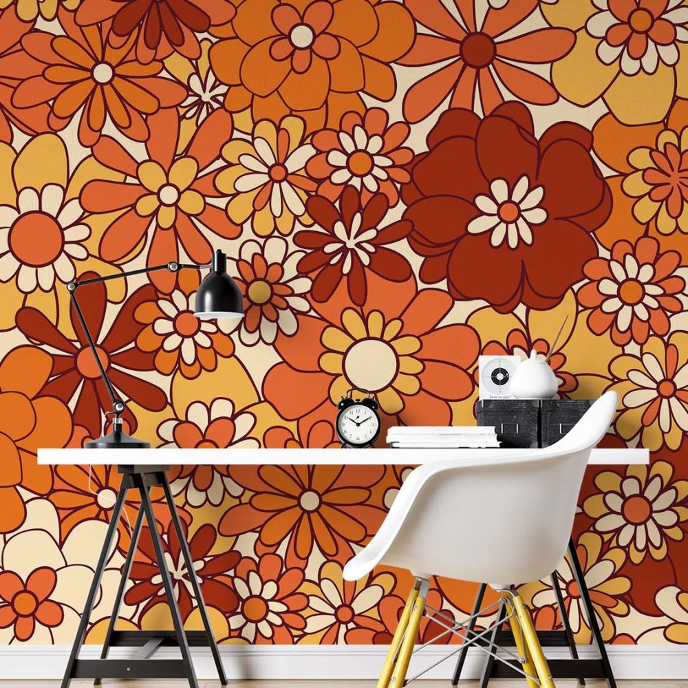 Terug naar collectie / Behang / Retro Bloemenpracht Oranje-Bruin Behang
