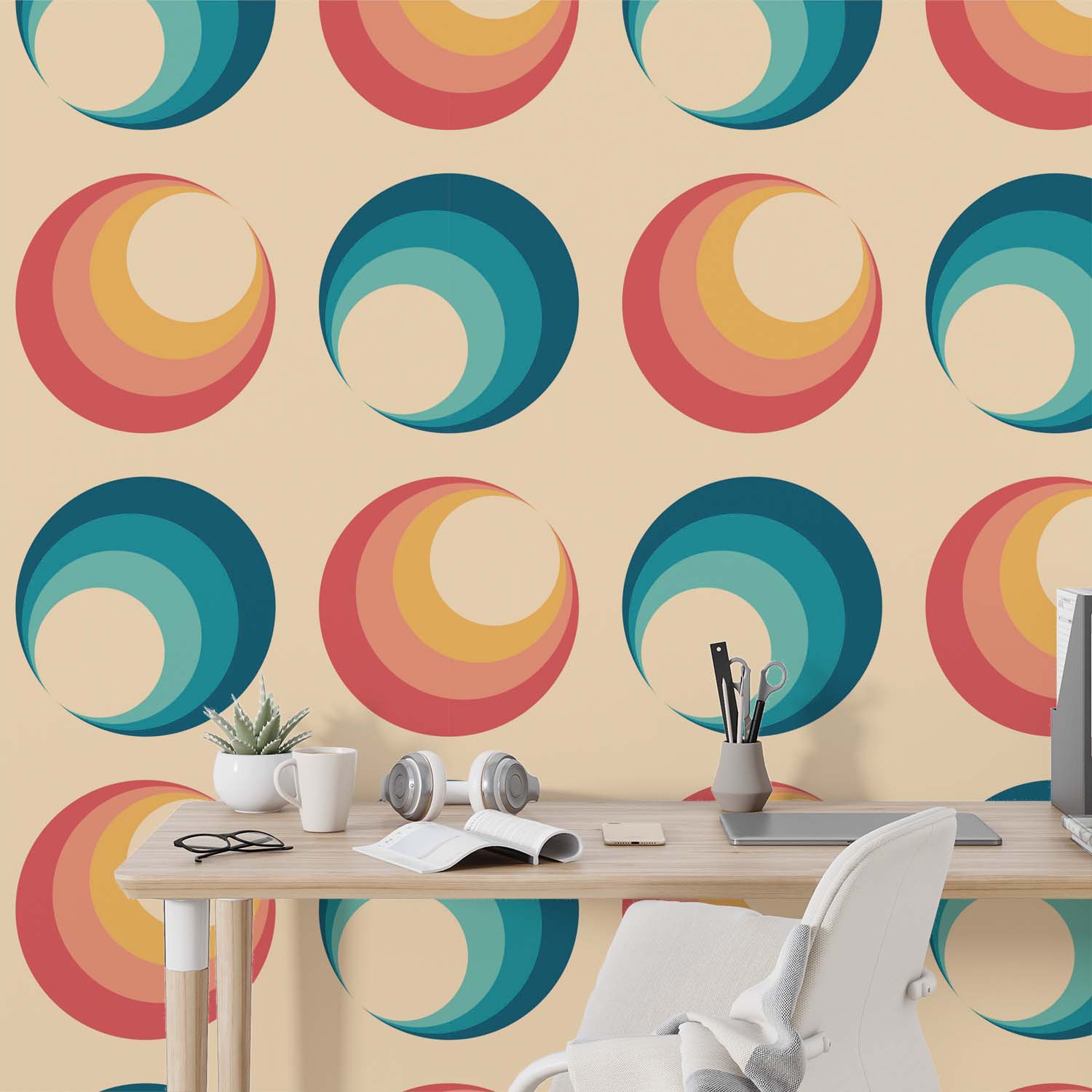 Retro Cirkels Levendig Behang