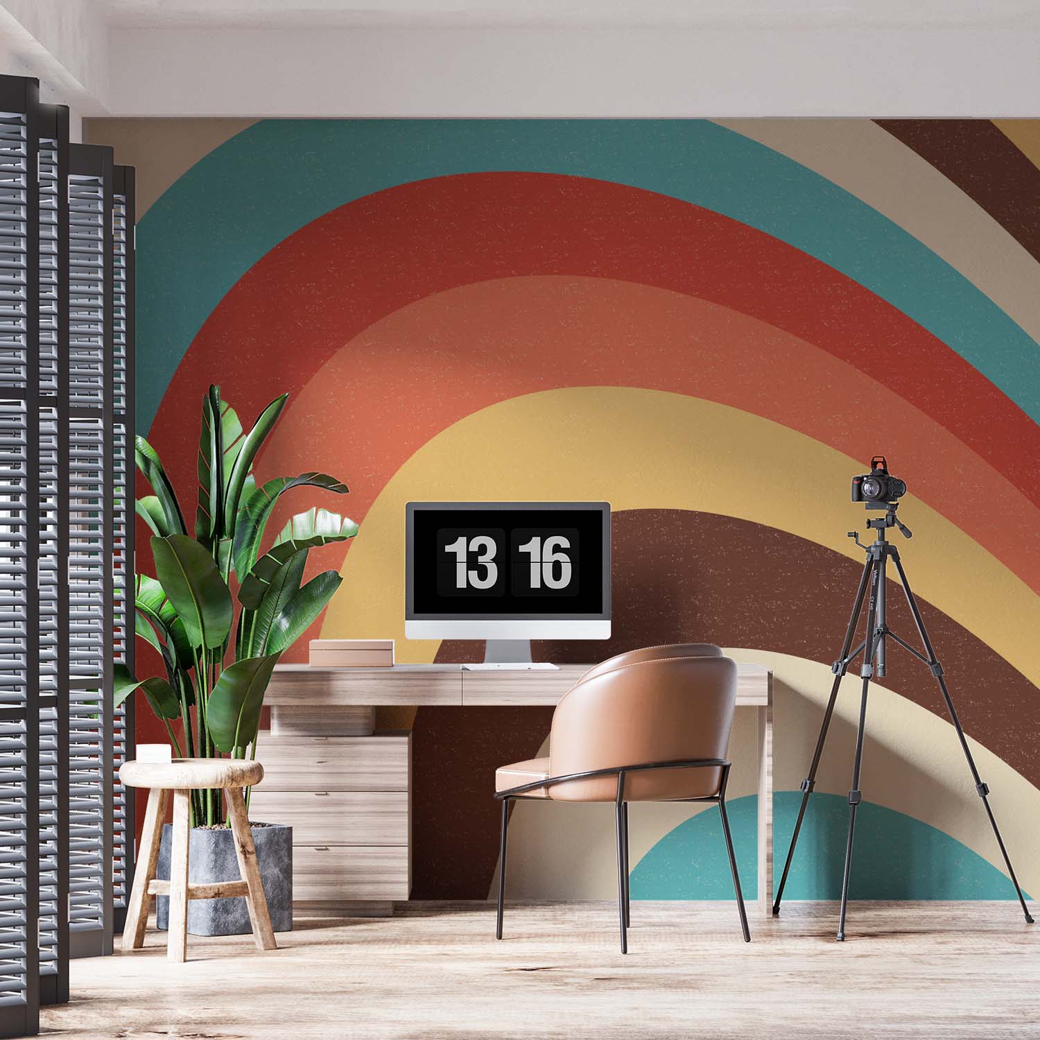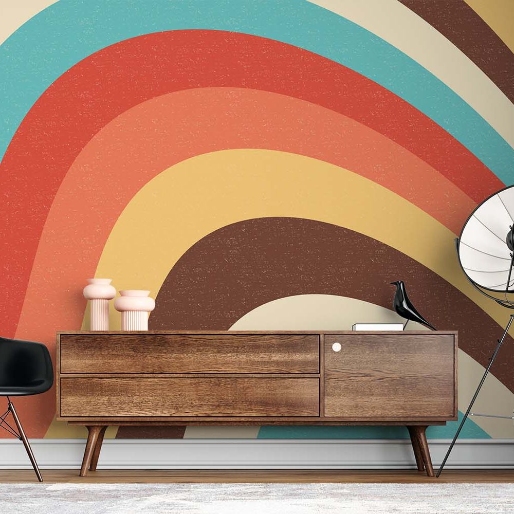 Retro Regenboogkleurig Golfpatroon Behang