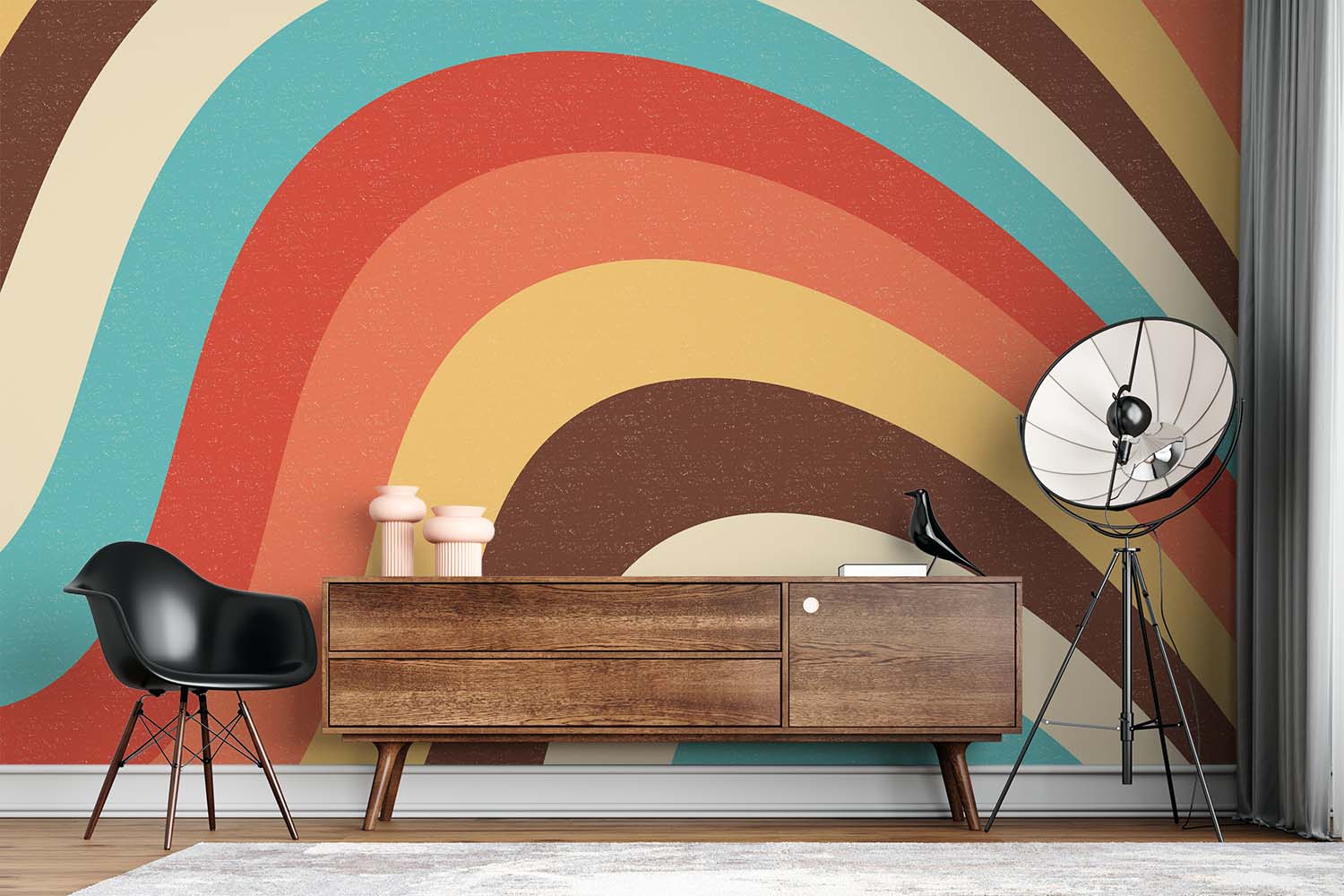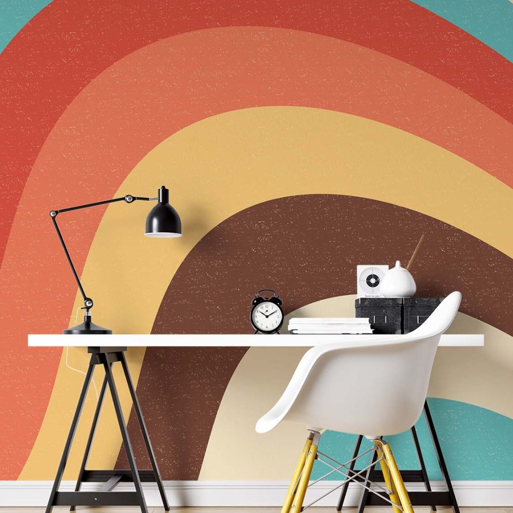 Terug naar collectie / Behang / Abstract behang / Retro Regenboogkleurig Golfpatroon Behang