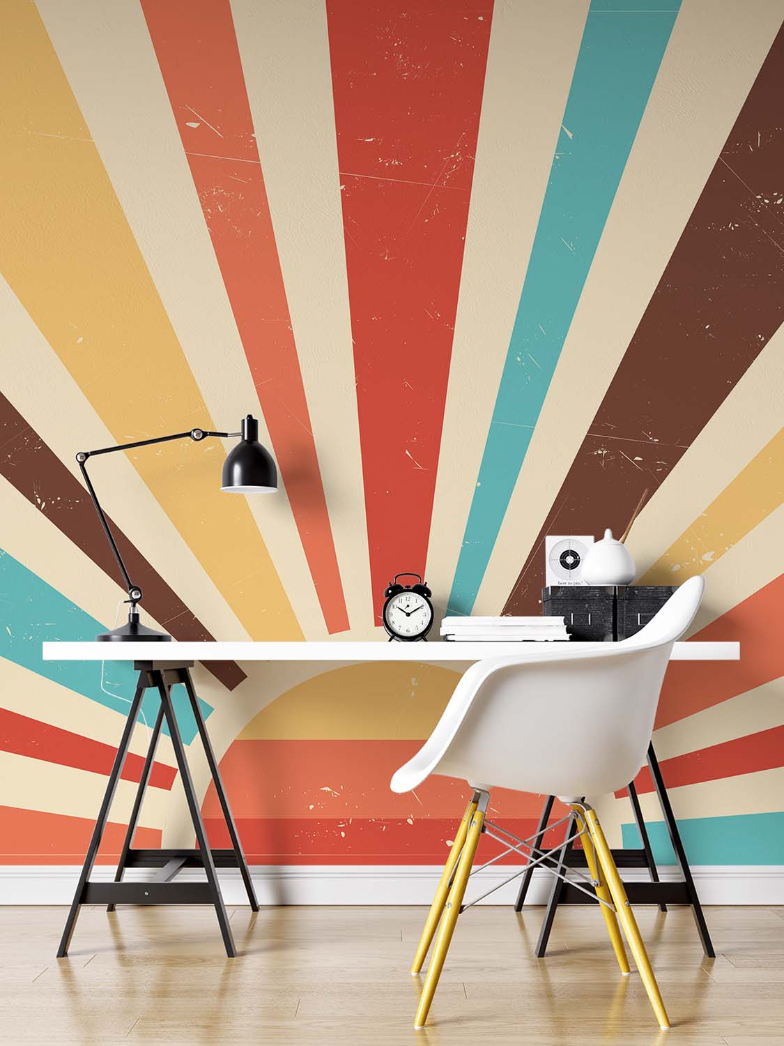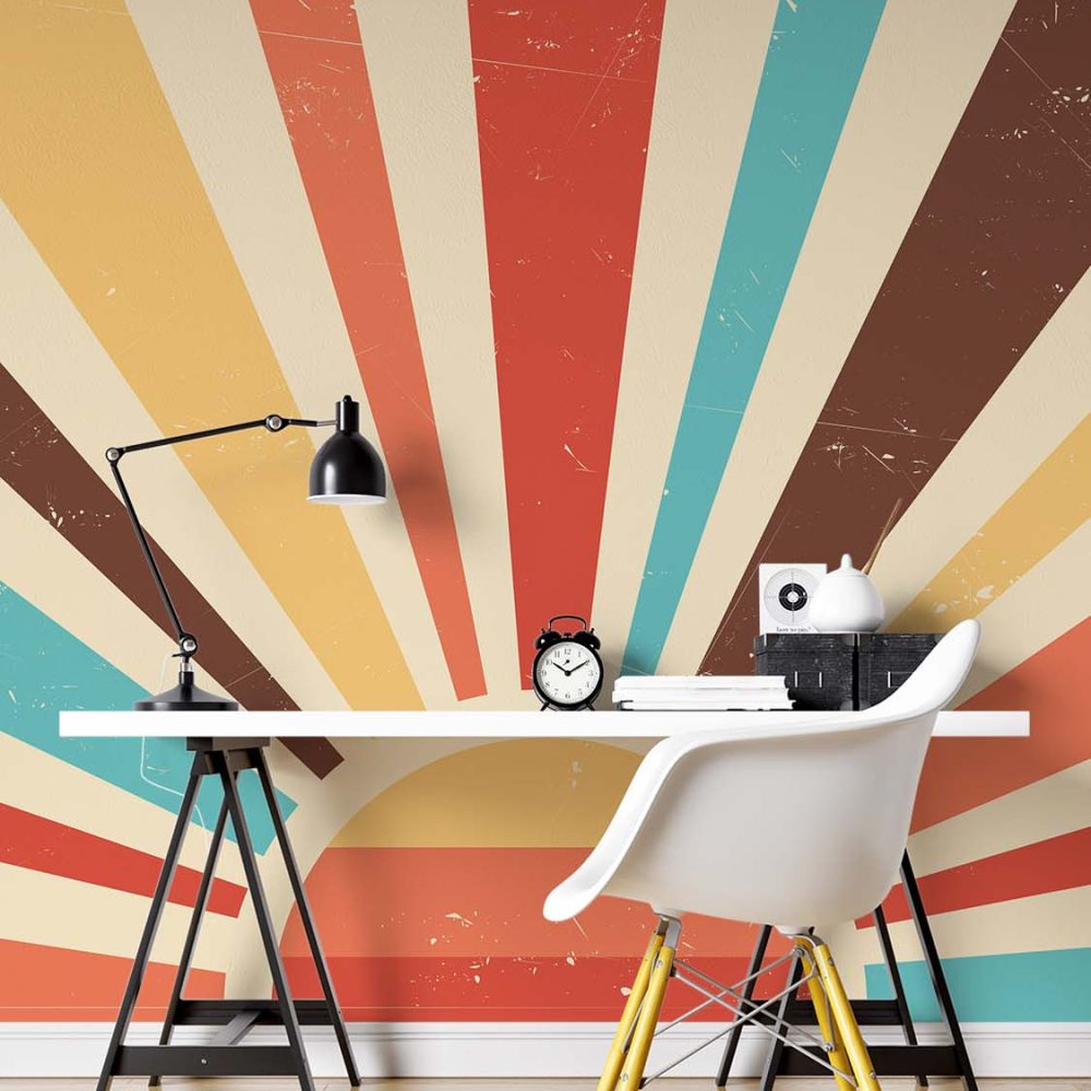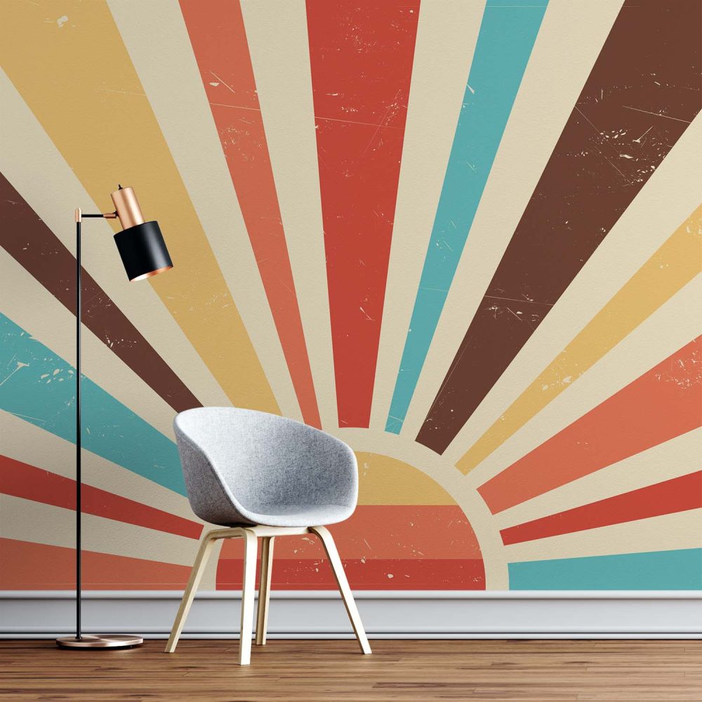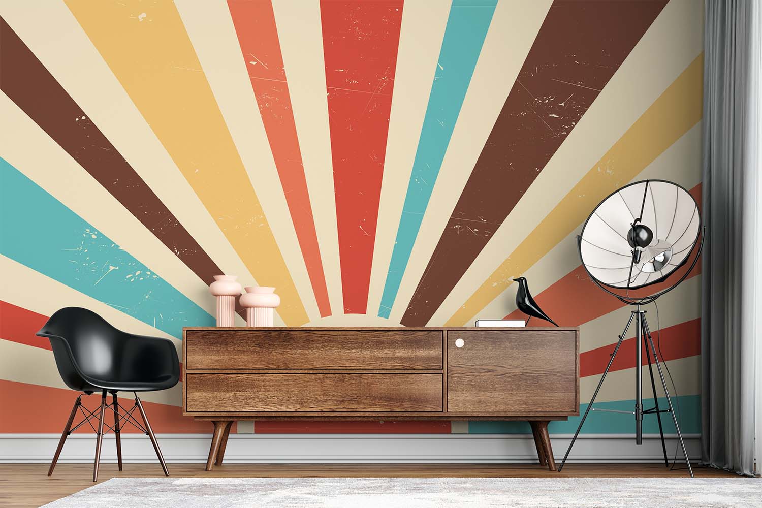 Terug naar collectie / Behang / Abstract behang / Retro Zonnestraal Surfplank Behang
