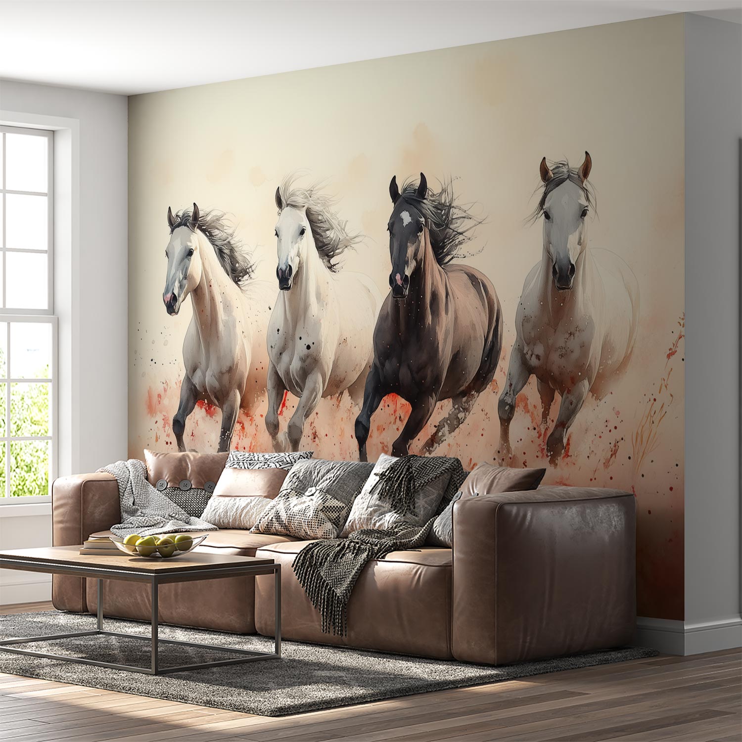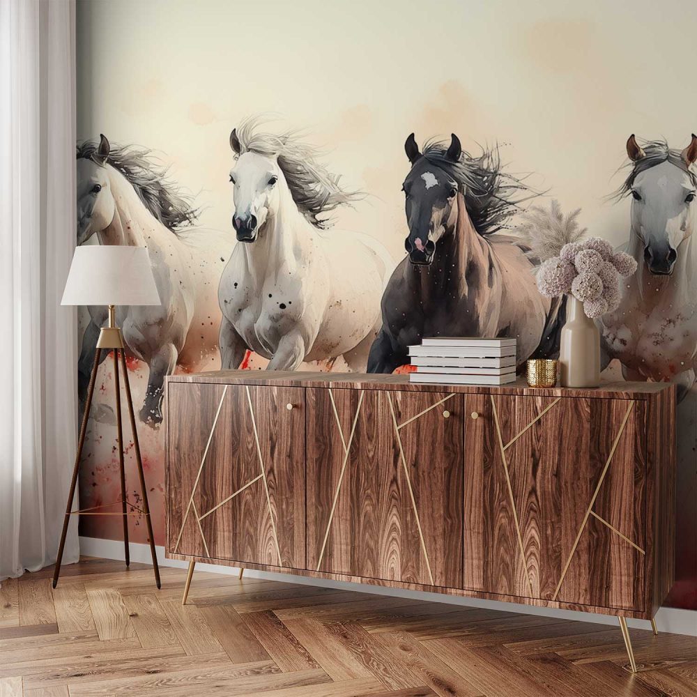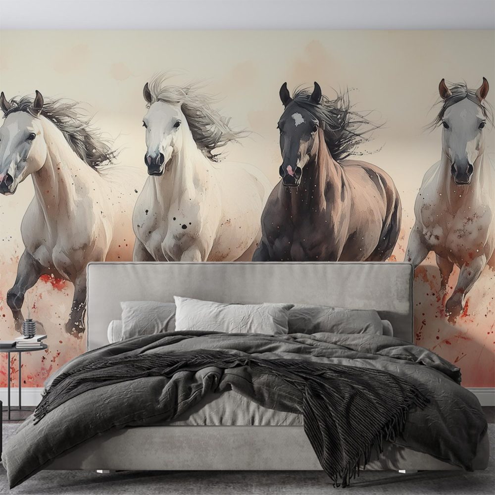 Terug naar collectie / Behang / Abstract behang / Rode galopperende paarden behang