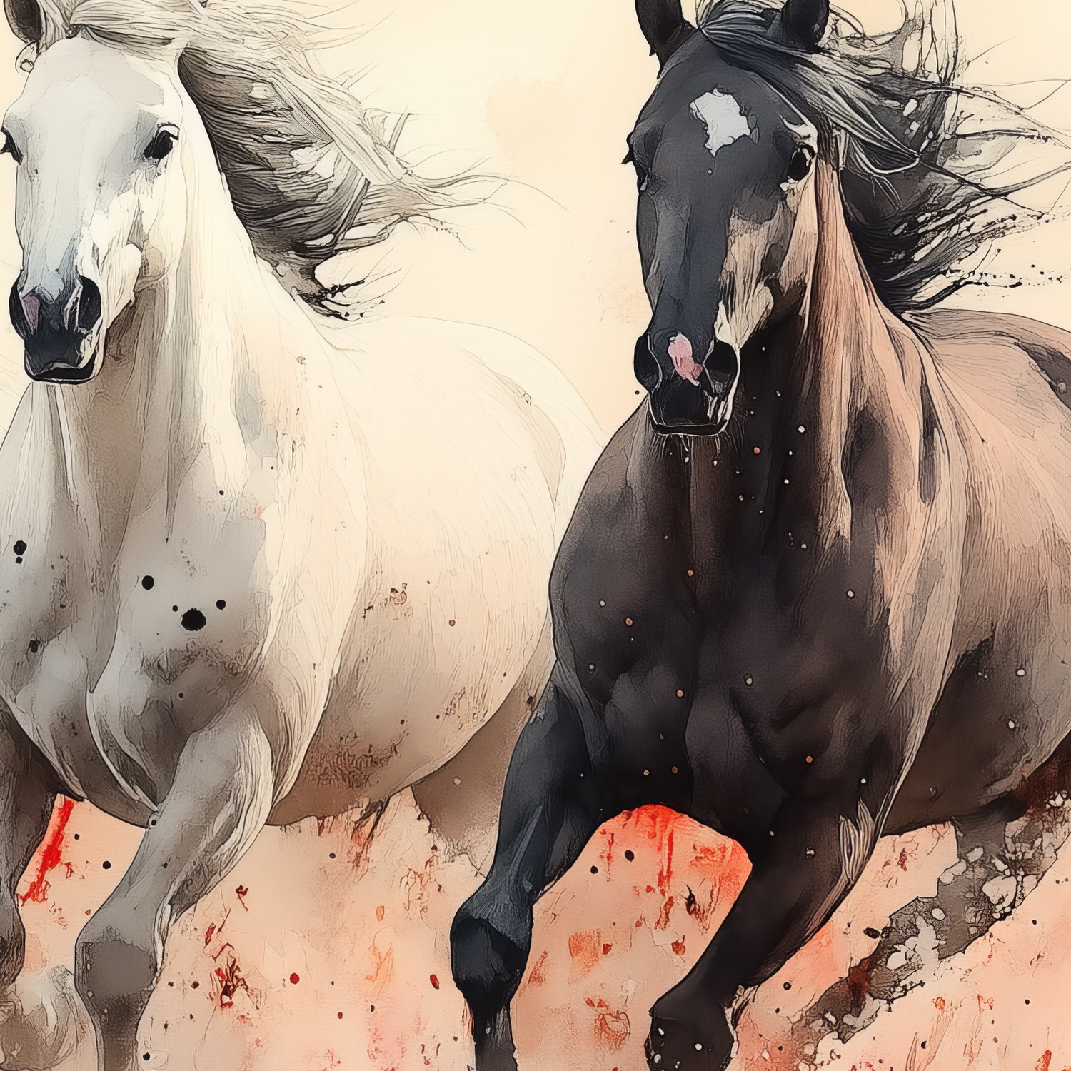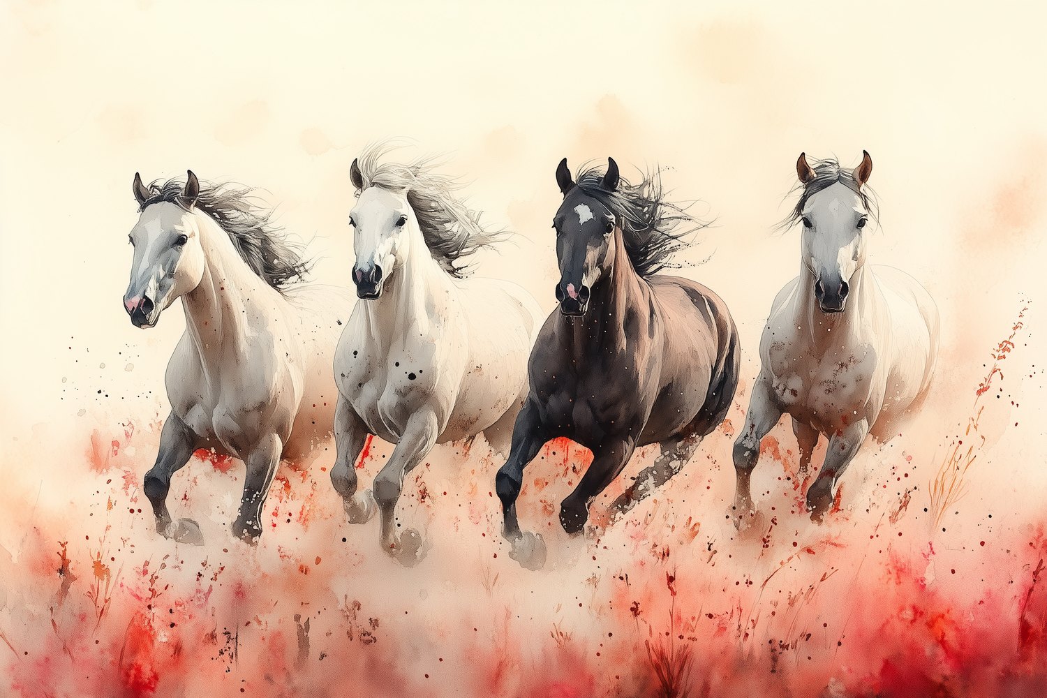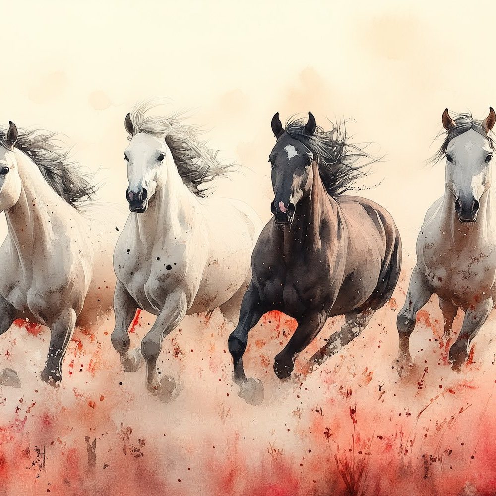 Terug naar collectie / Behang / Abstract behang / Rode galopperende paarden behang