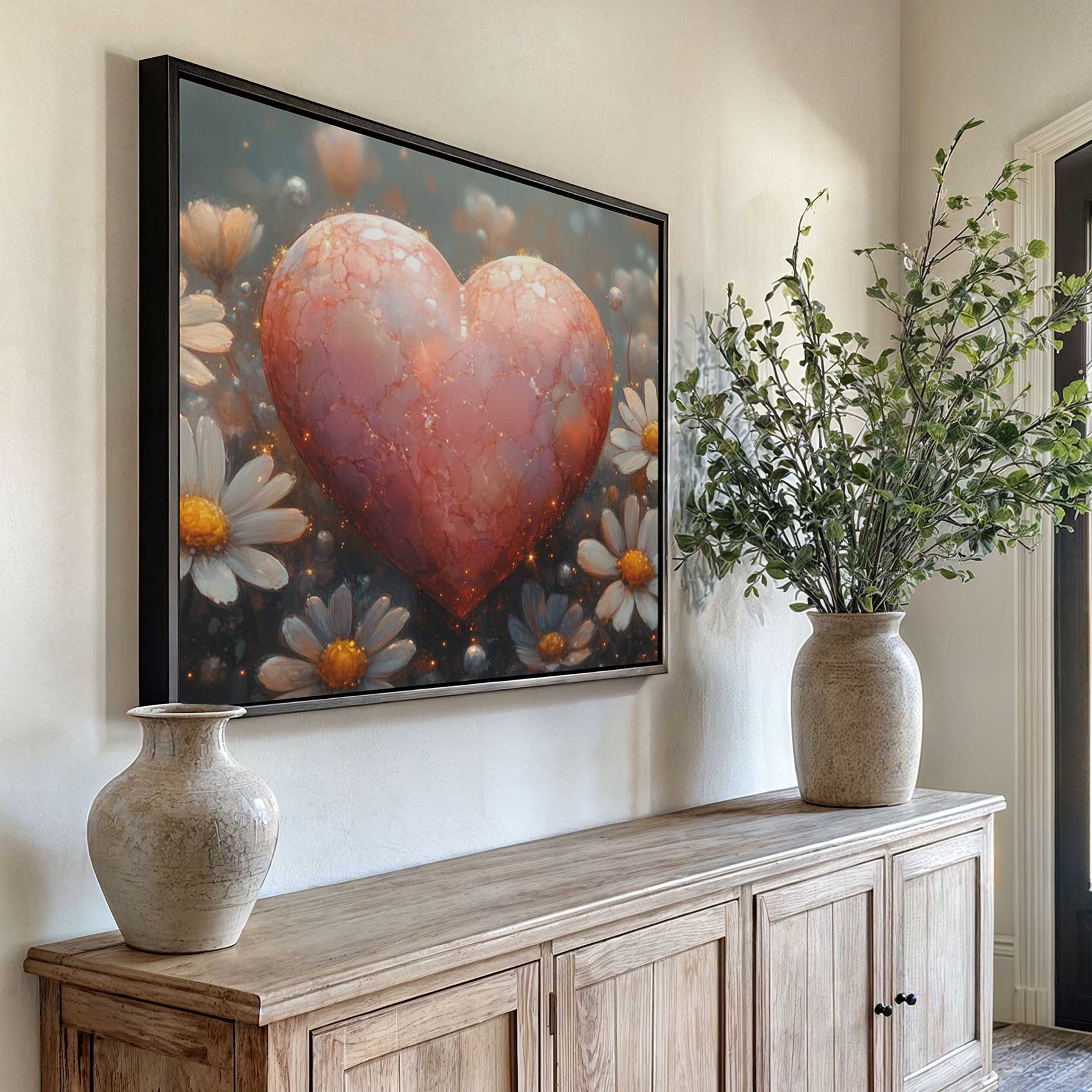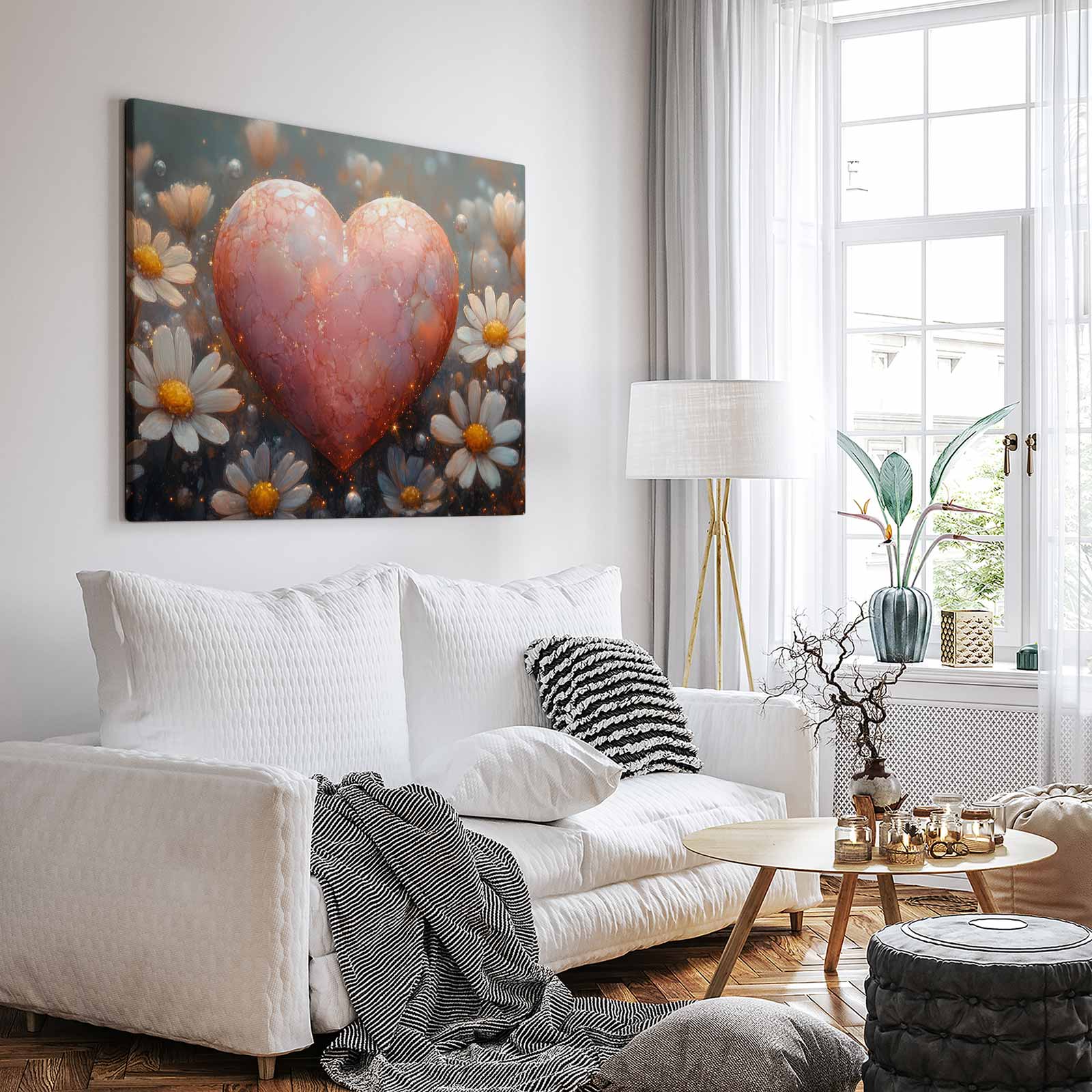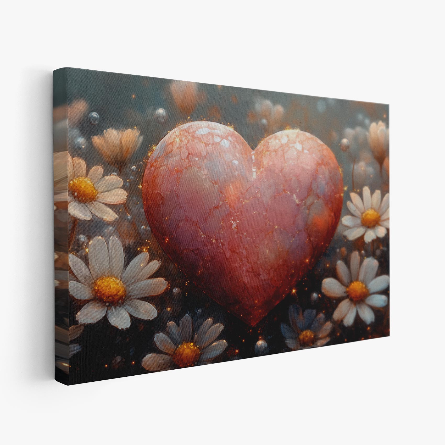 Terug naar collectie / Schilderijen / Bloemen Schilderij / Rode hart tussen witte bloemen