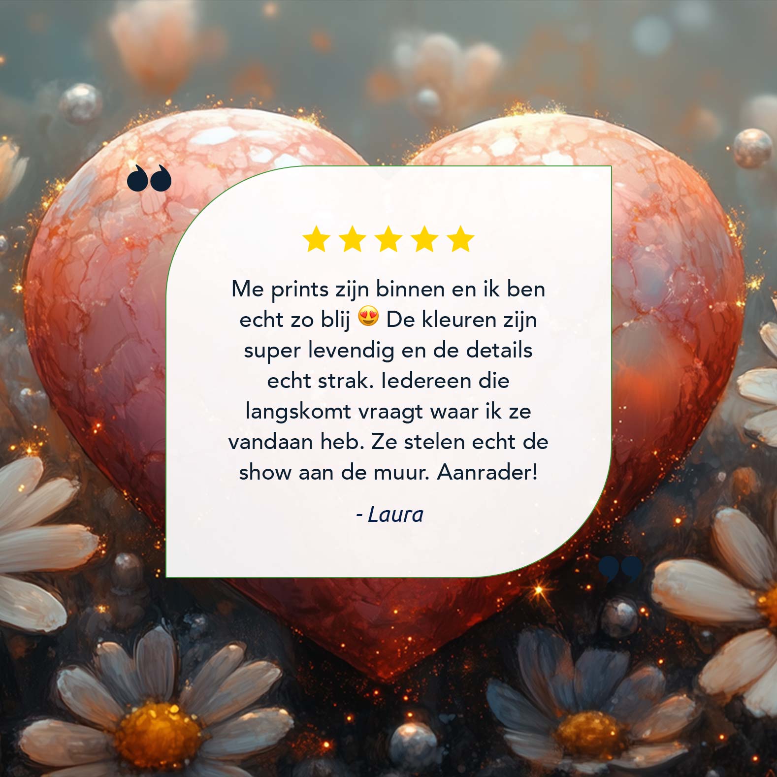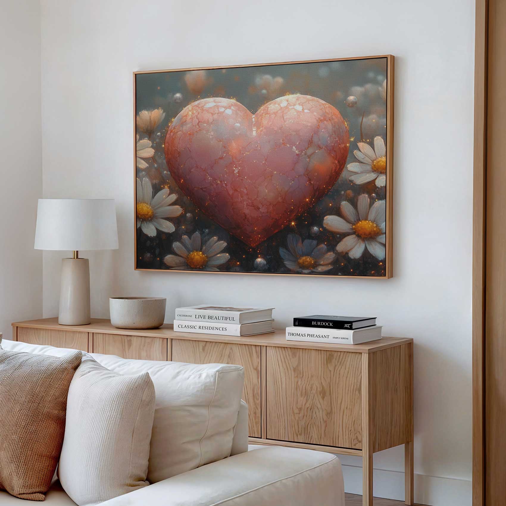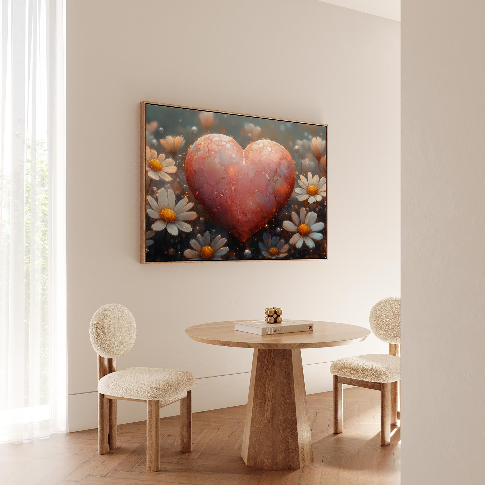 Terug naar collectie / Schilderijen / Bloemen Schilderij / Rode hart tussen witte bloemen