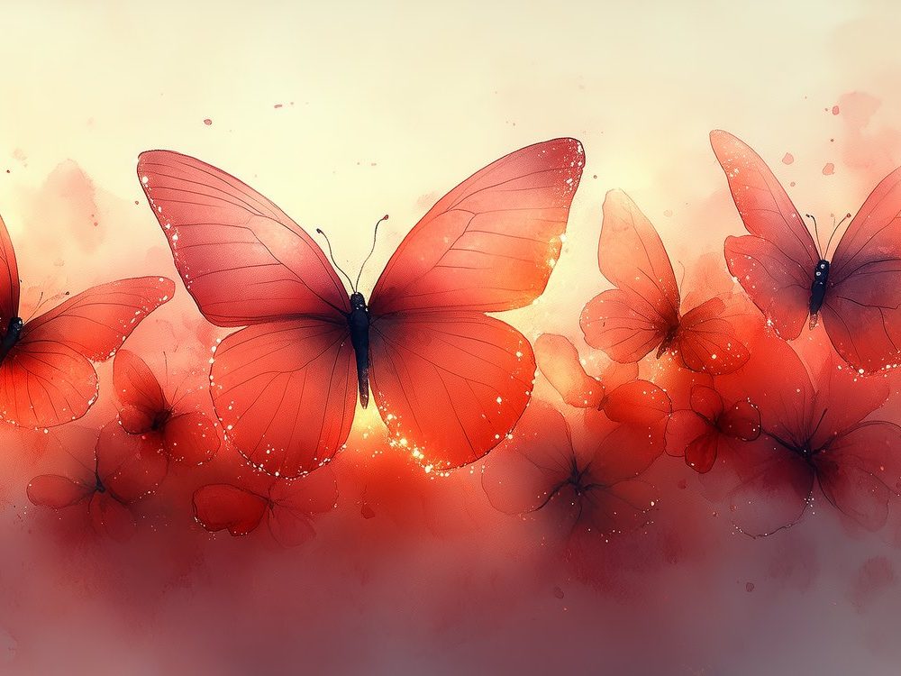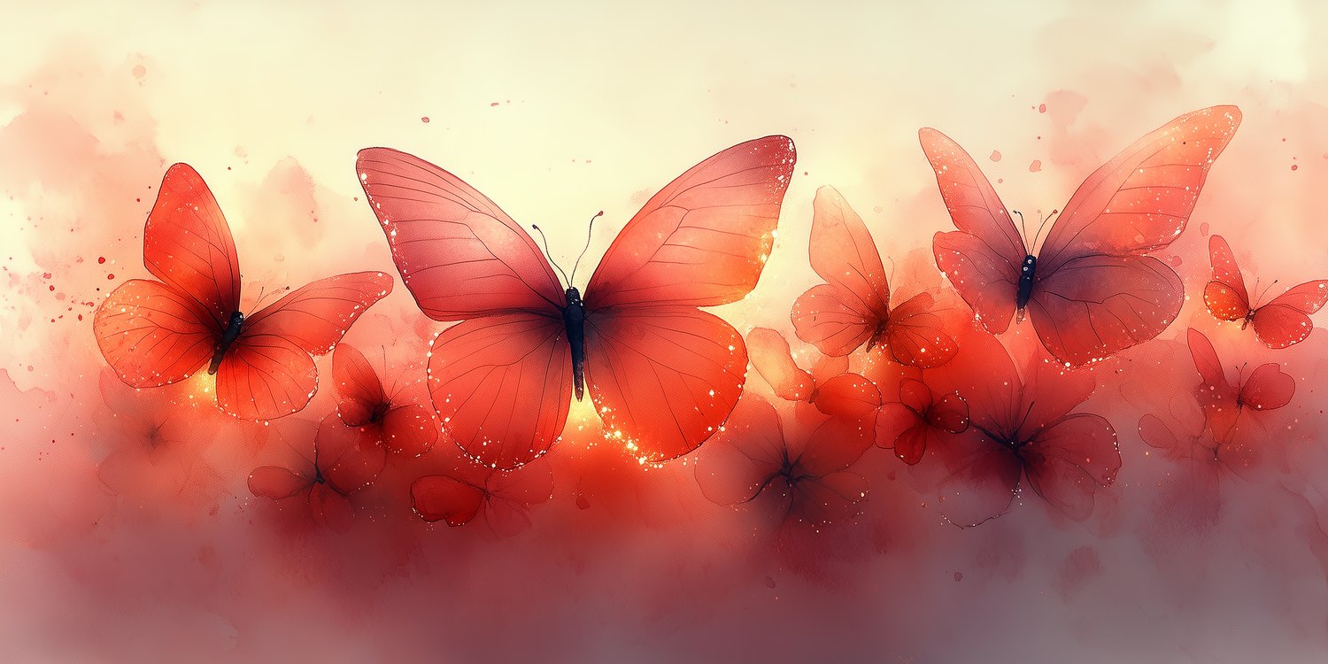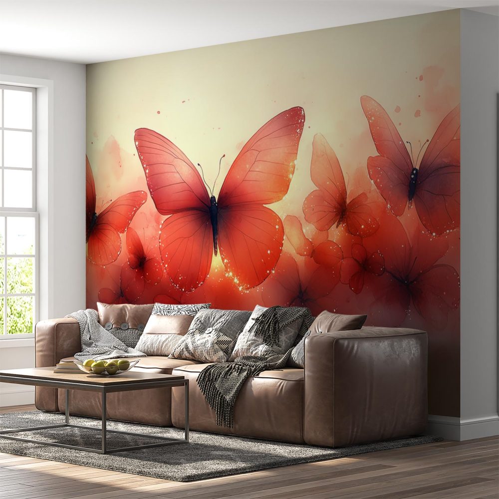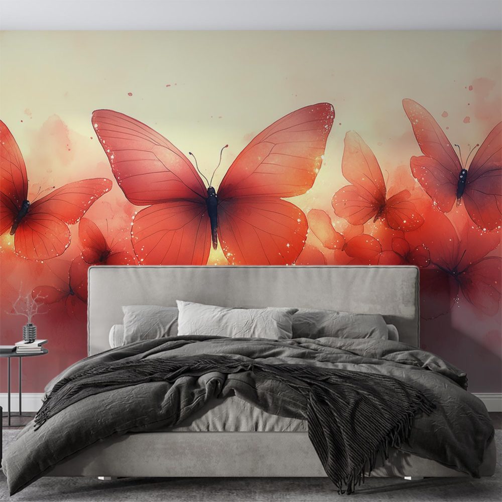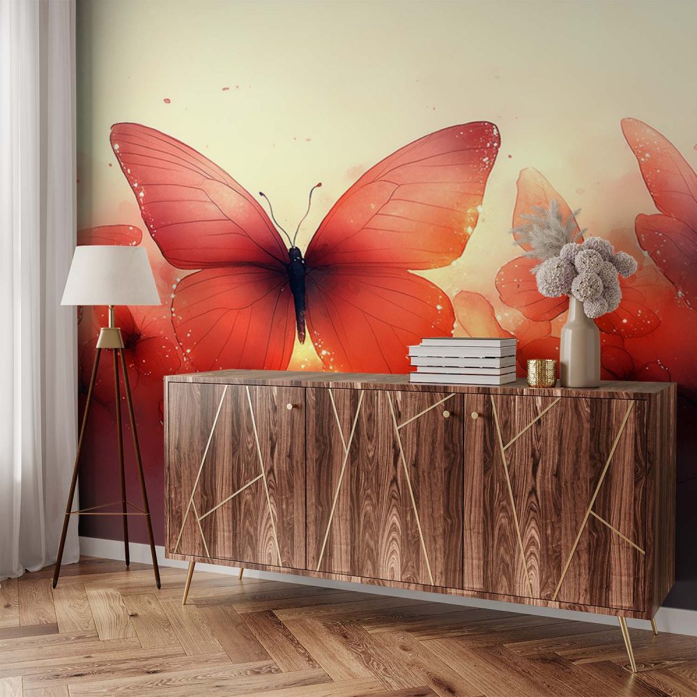 Terug naar collectie / Behang / Rode Vlinders in Roze Gloed behang
